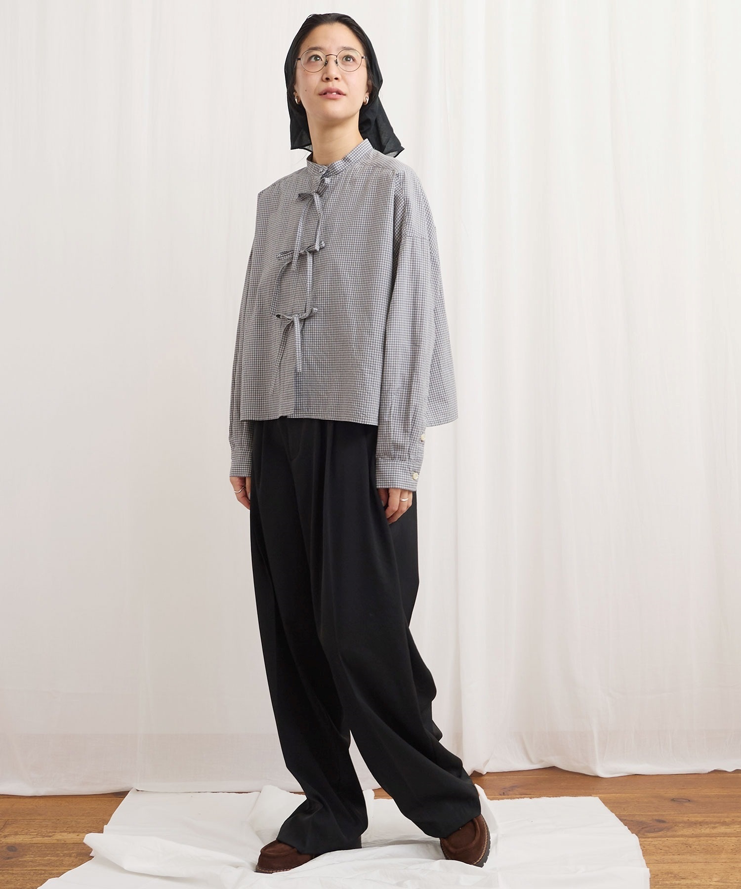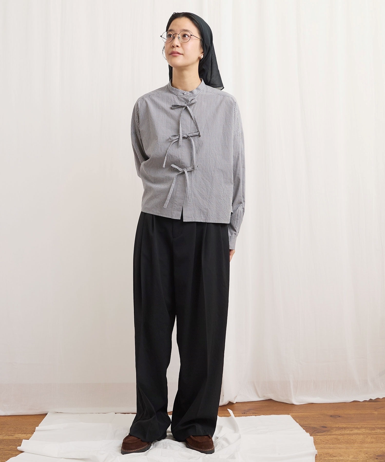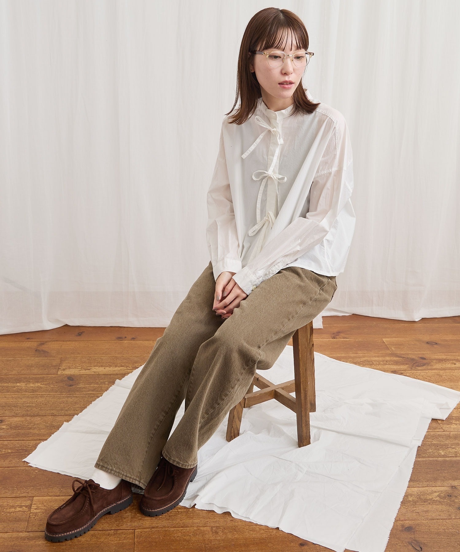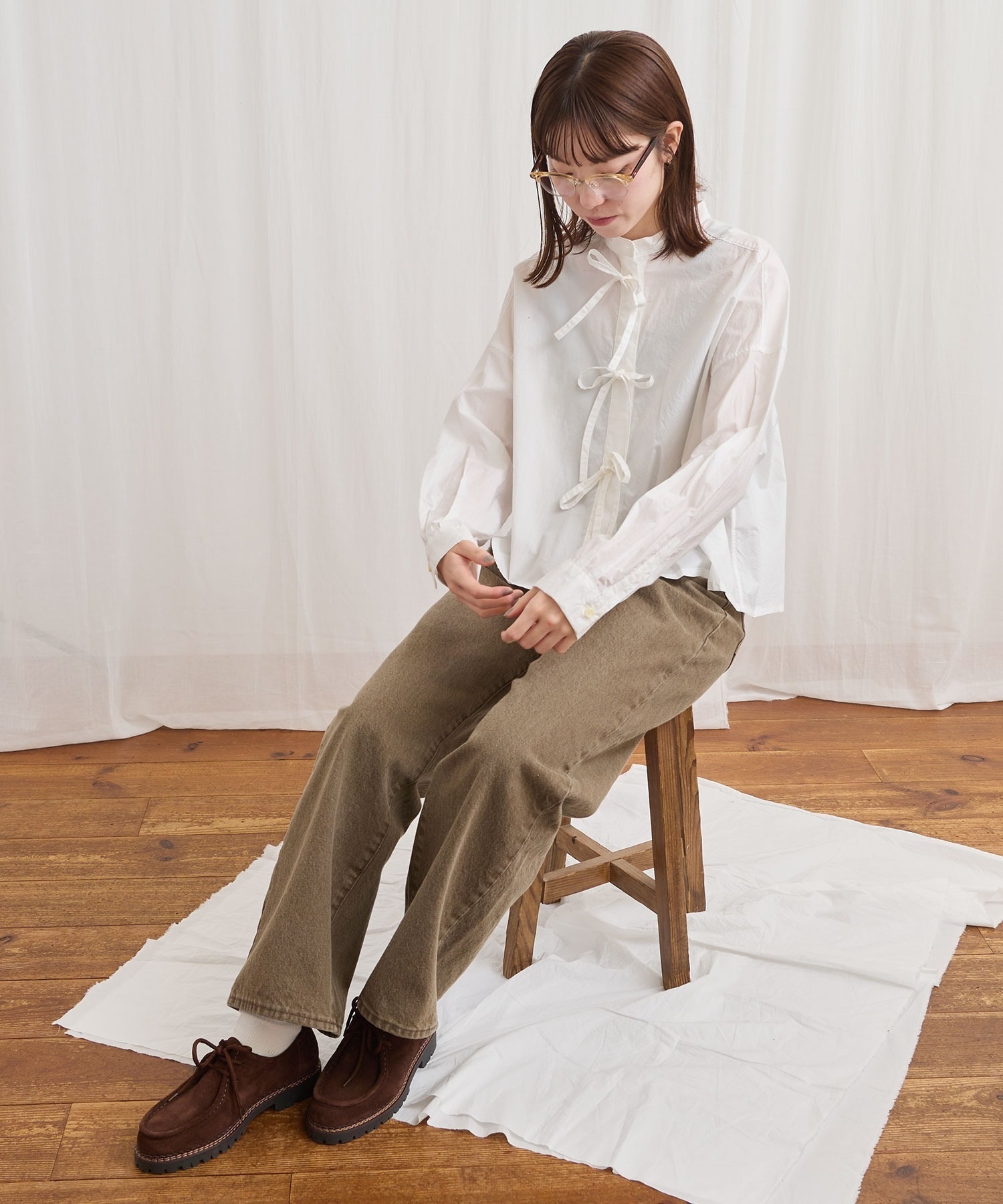 フロントのリボンはリボン結びでも軽く結ぶだけでもポイントになります。