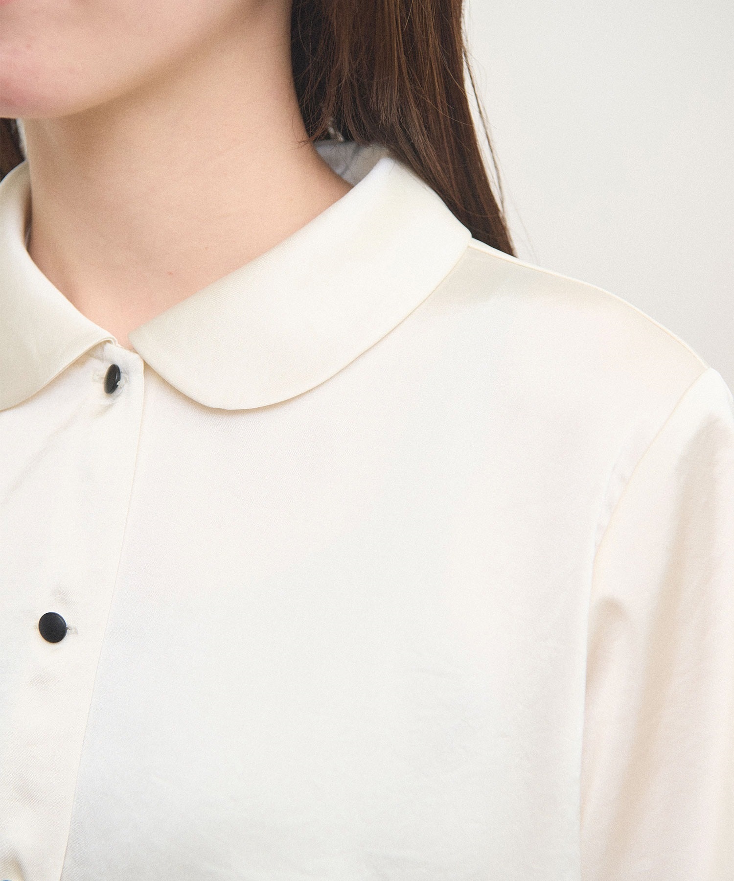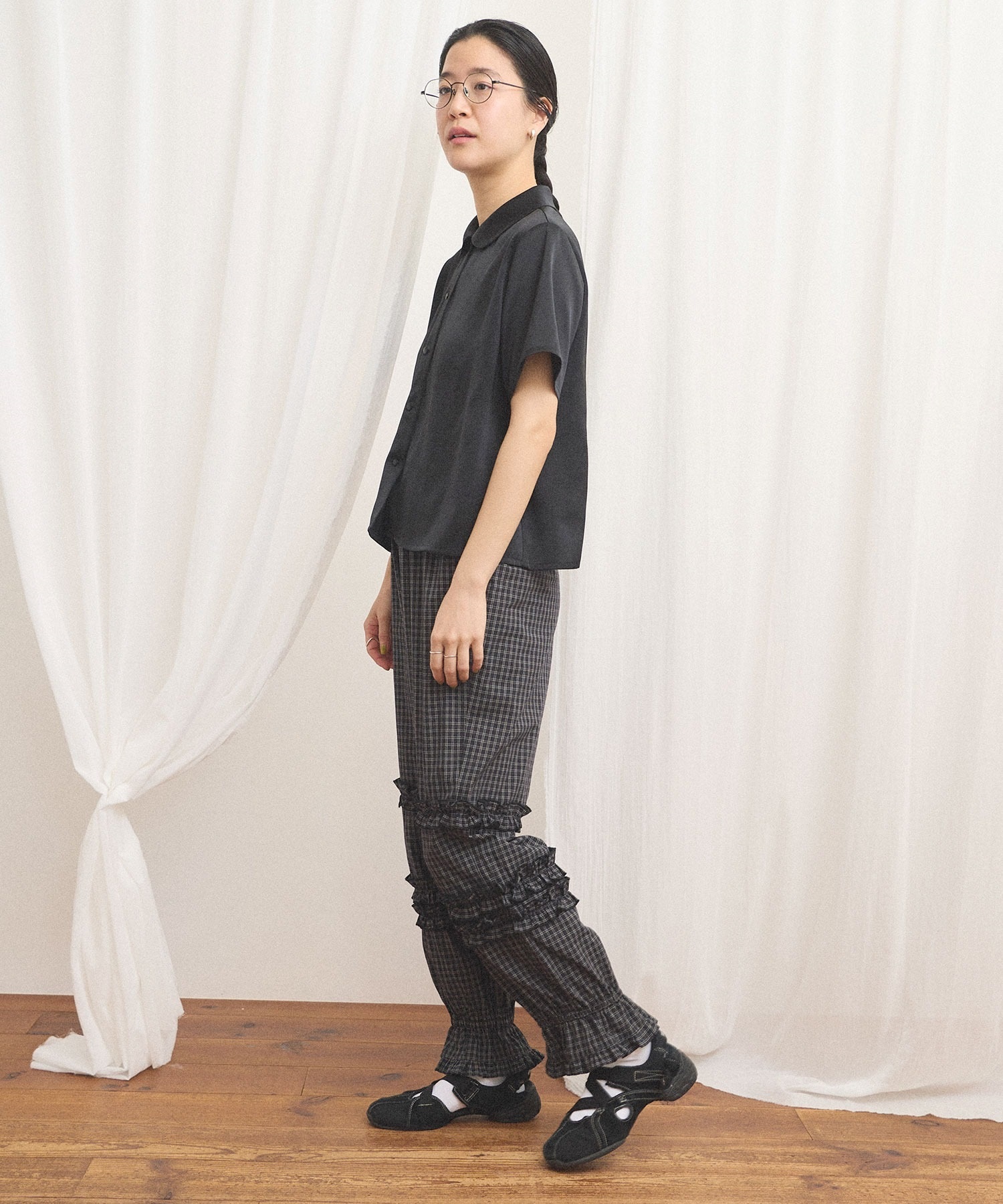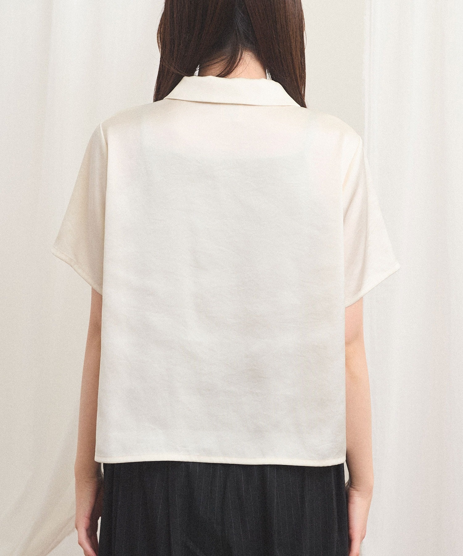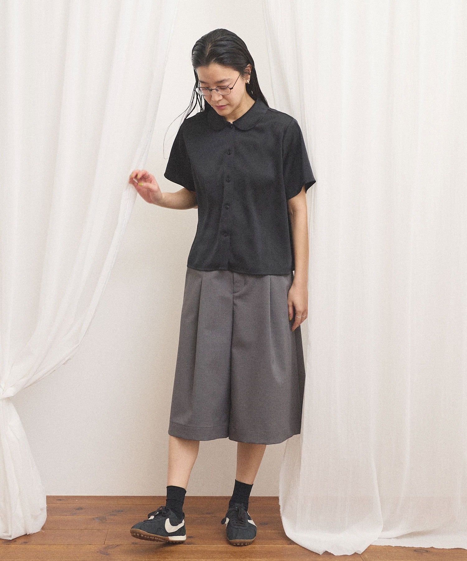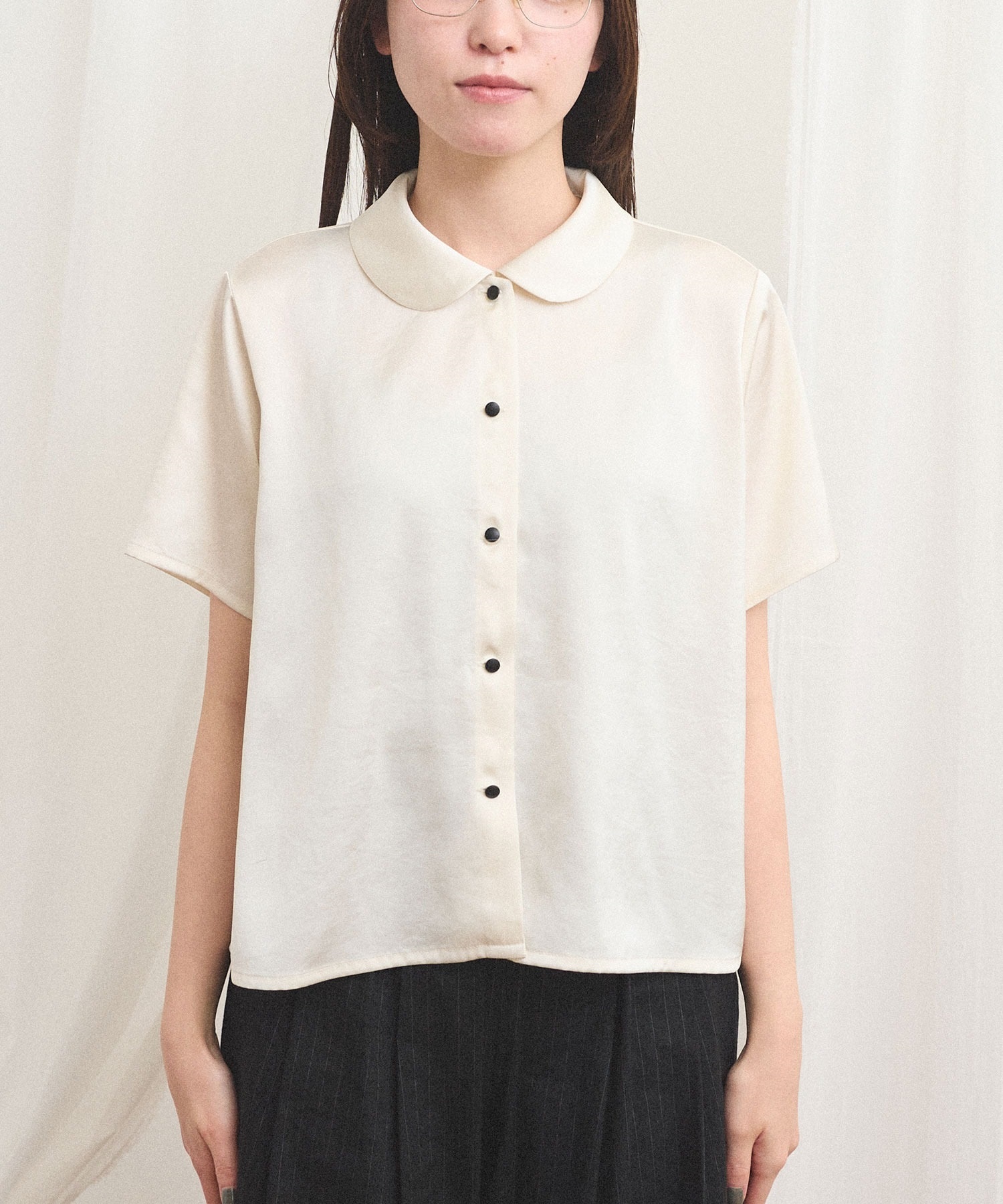 シャツとブラウスの間のような雰囲気で、合わせるボトム次第でメンズライクにも可愛らしいイメージにも。