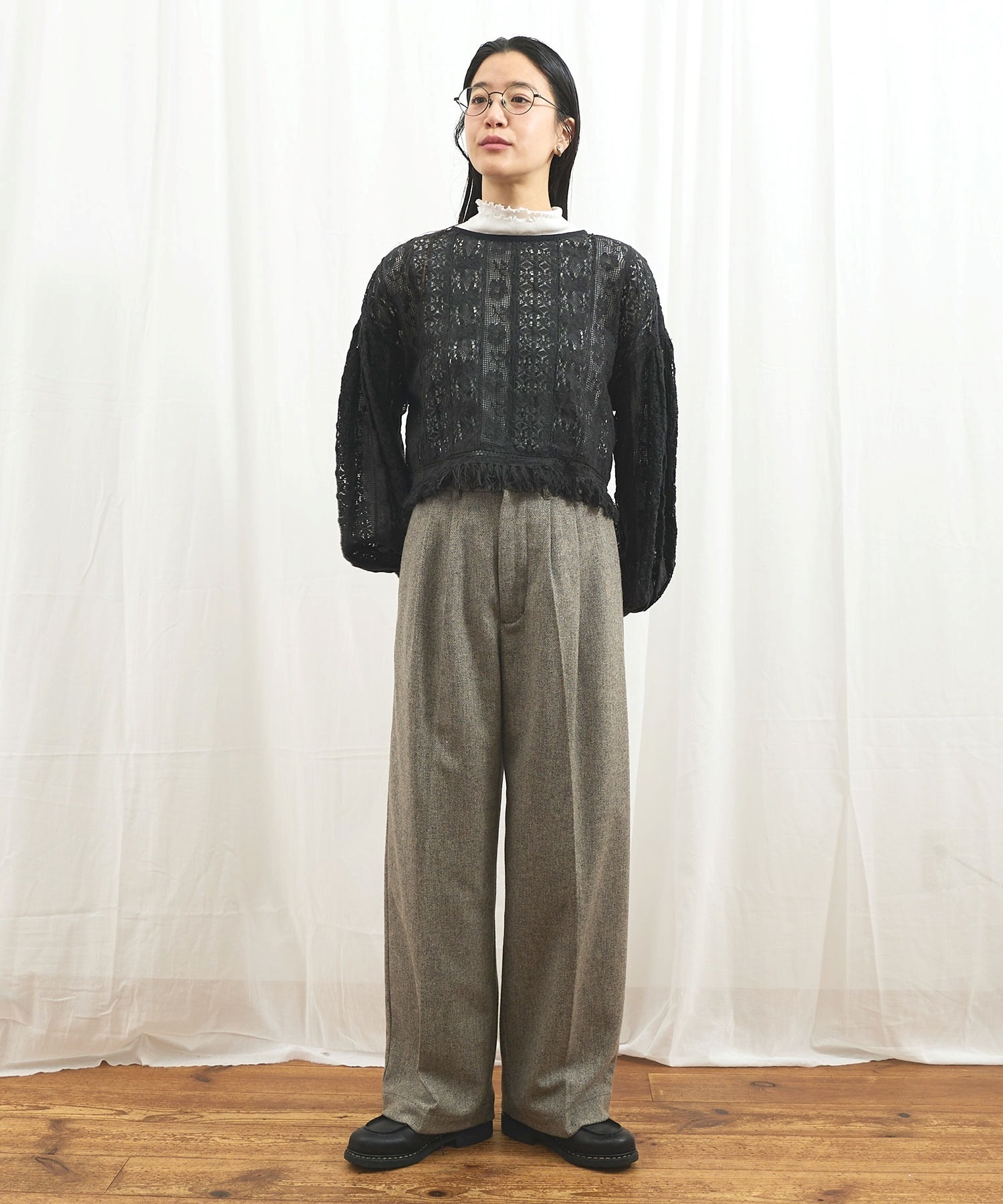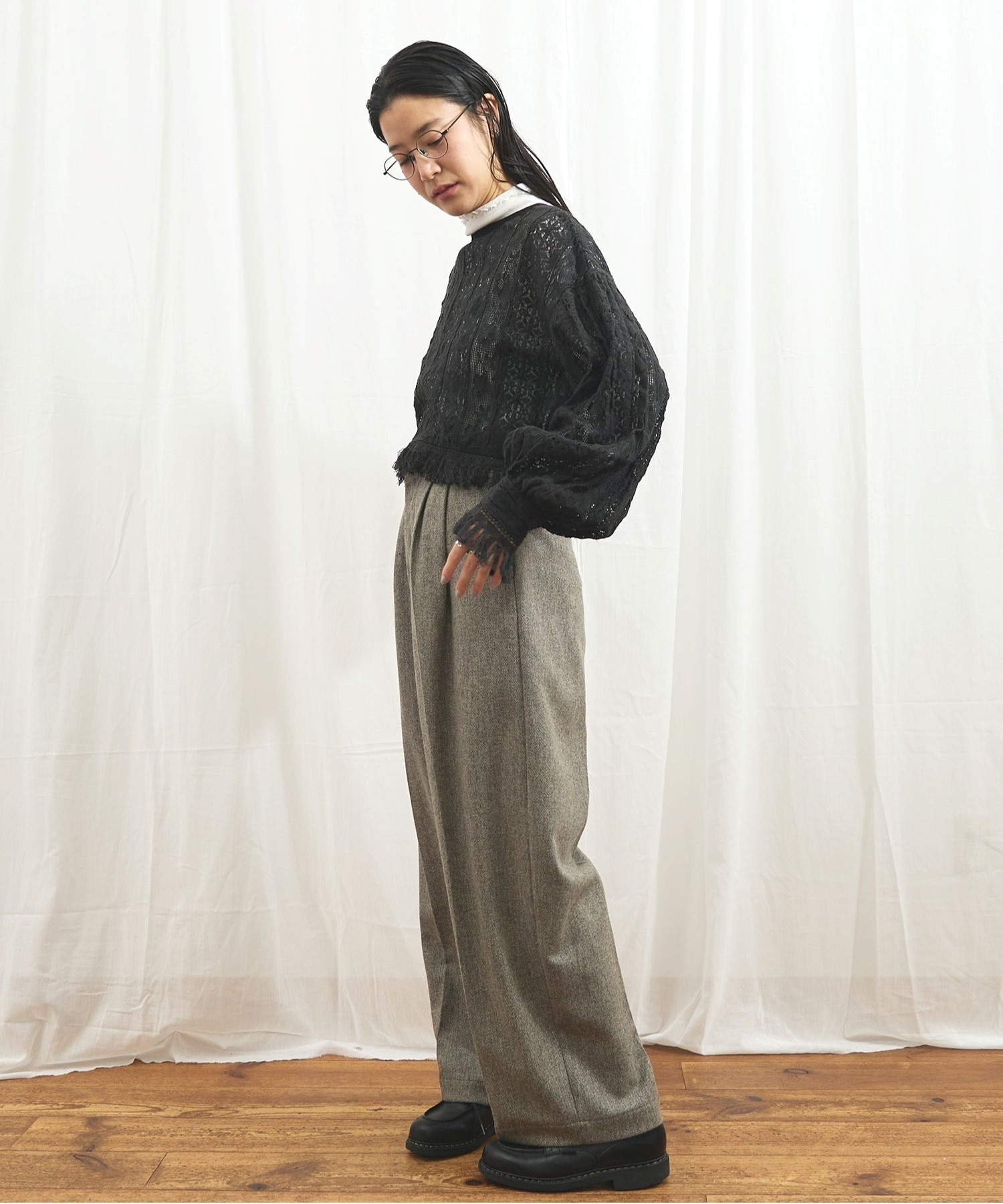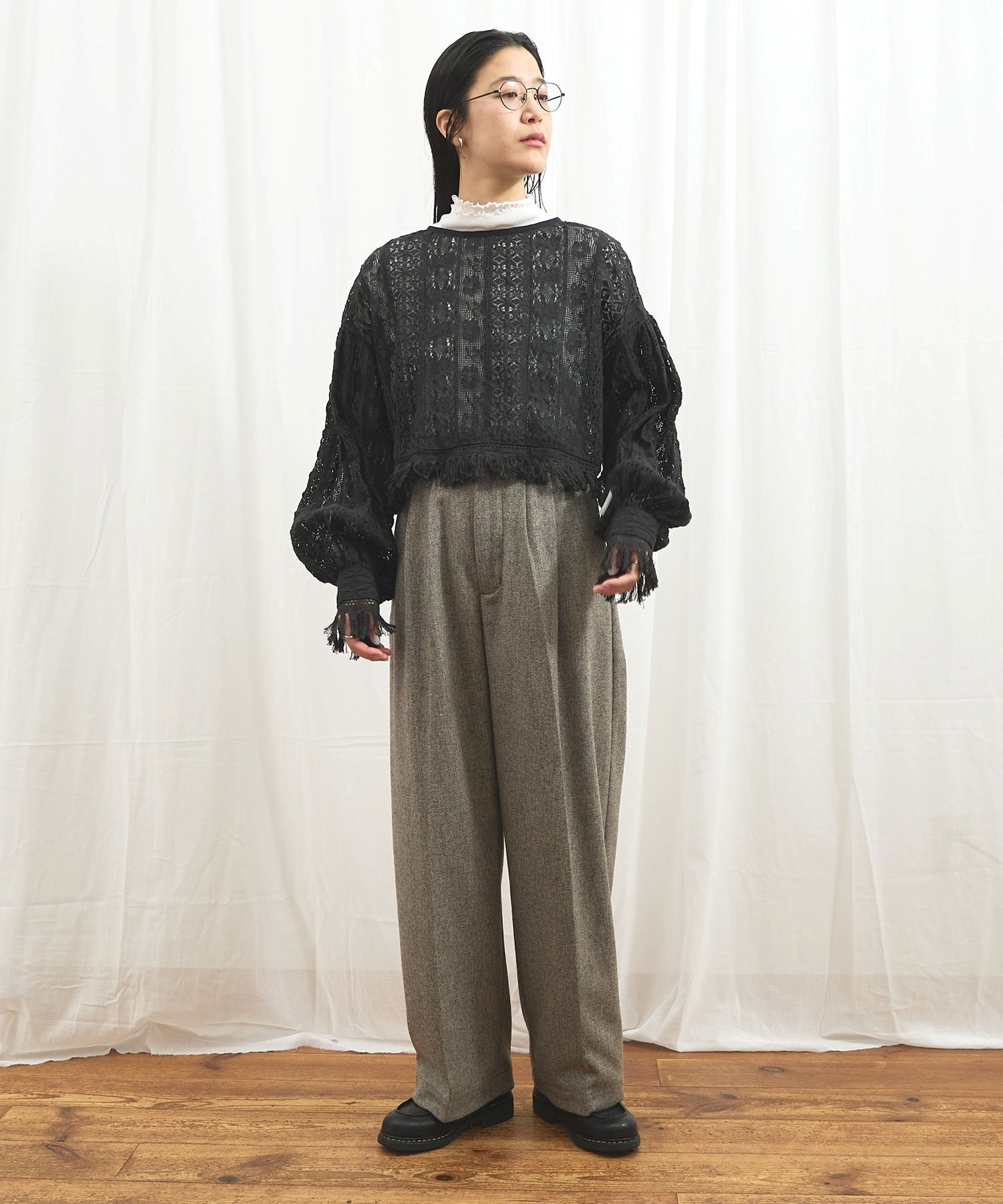 ボレロは袖にボリュームを持たせたデザイン。それに合わせた短めの着丈は甘すぎず凛とした雰囲気も感じさせます。