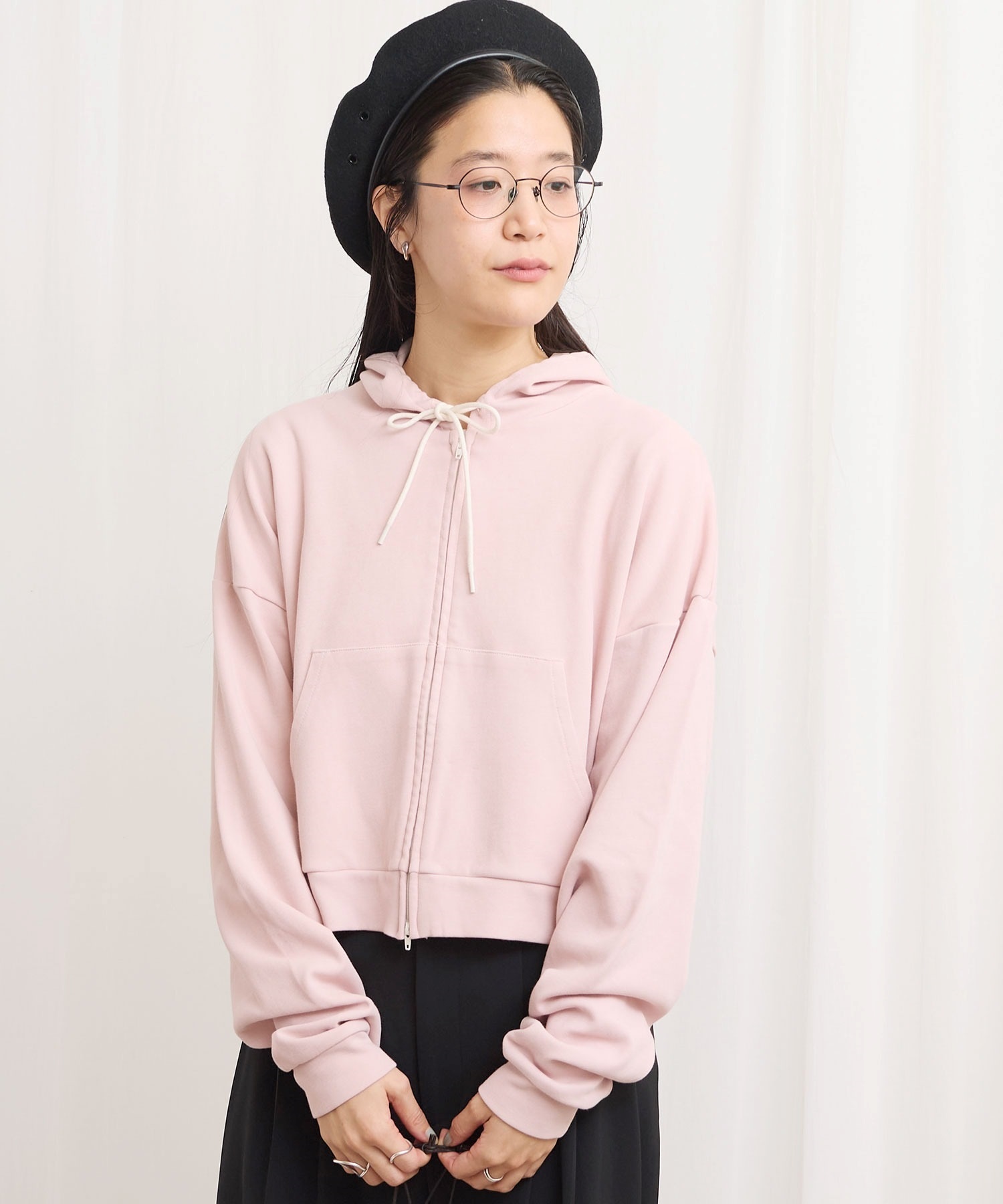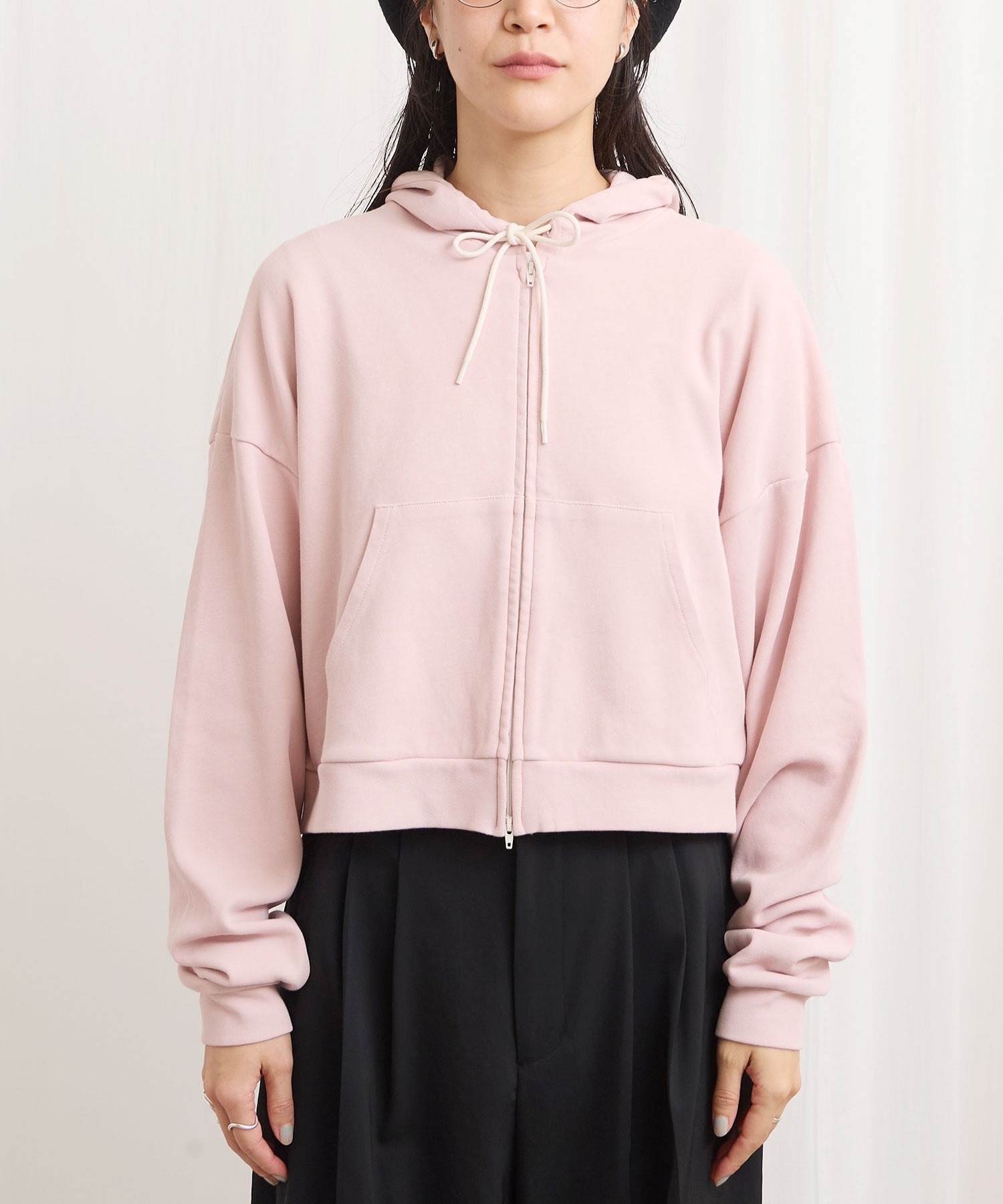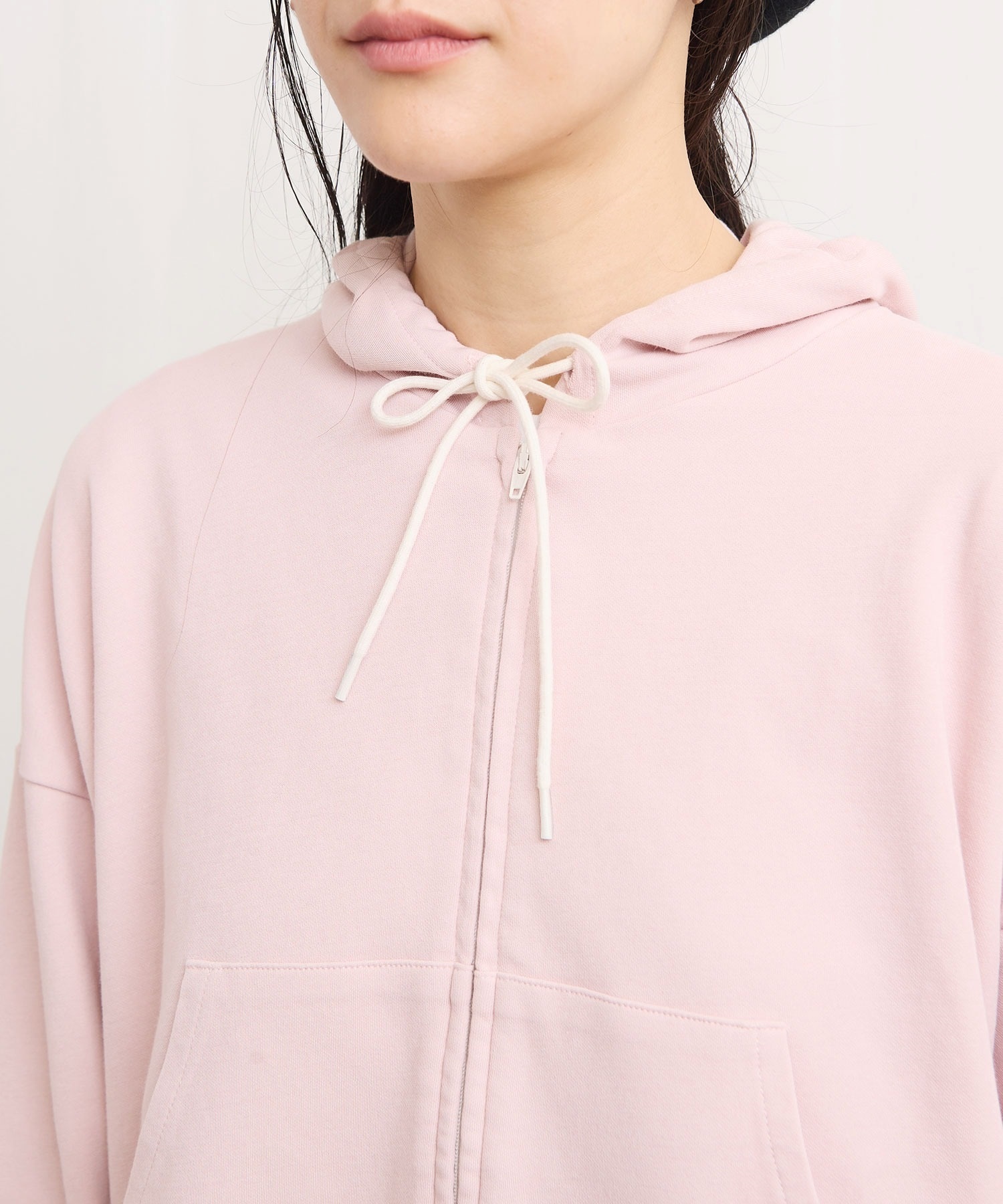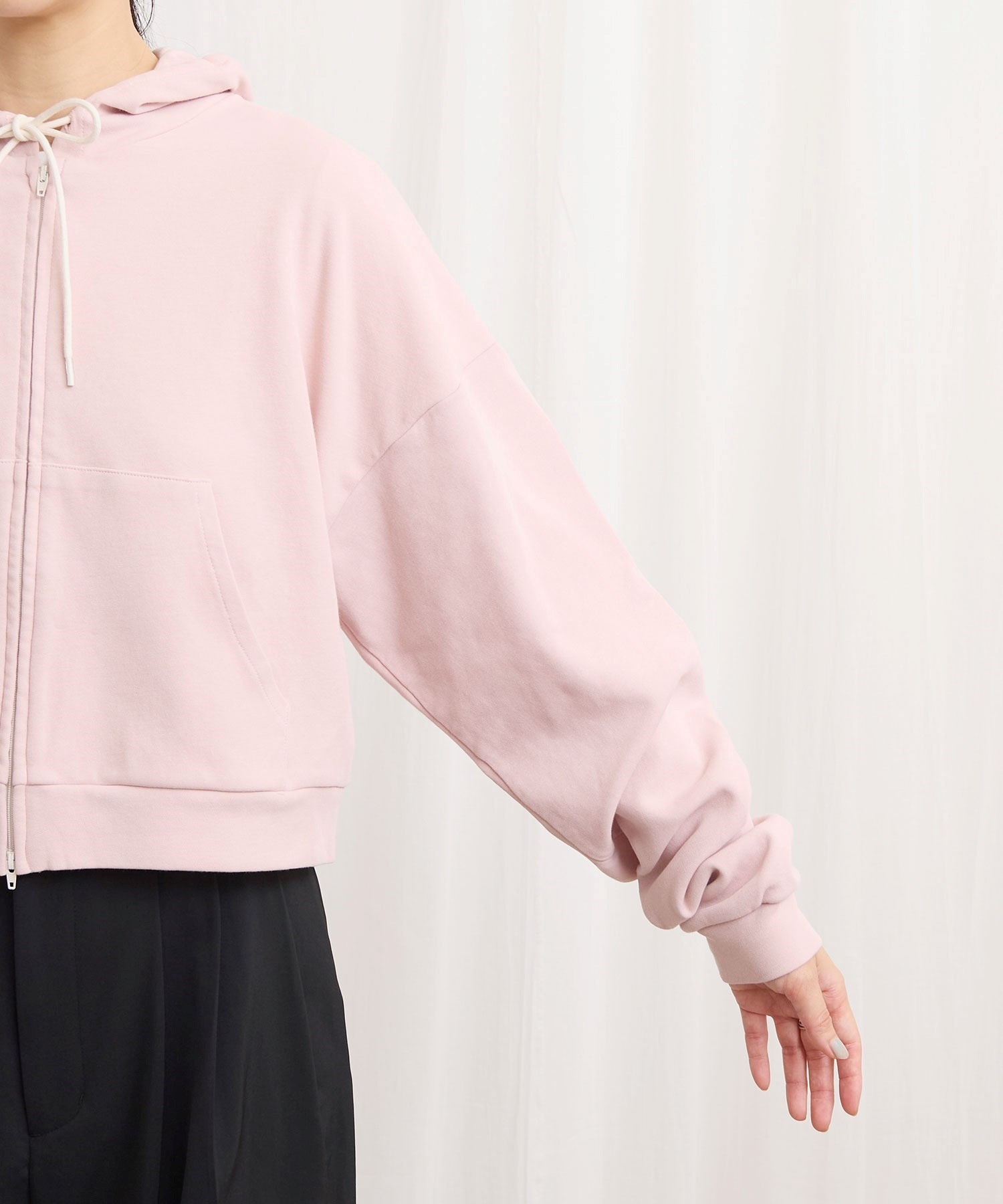 肌触りがさらりとしたショート丈のフーディー。