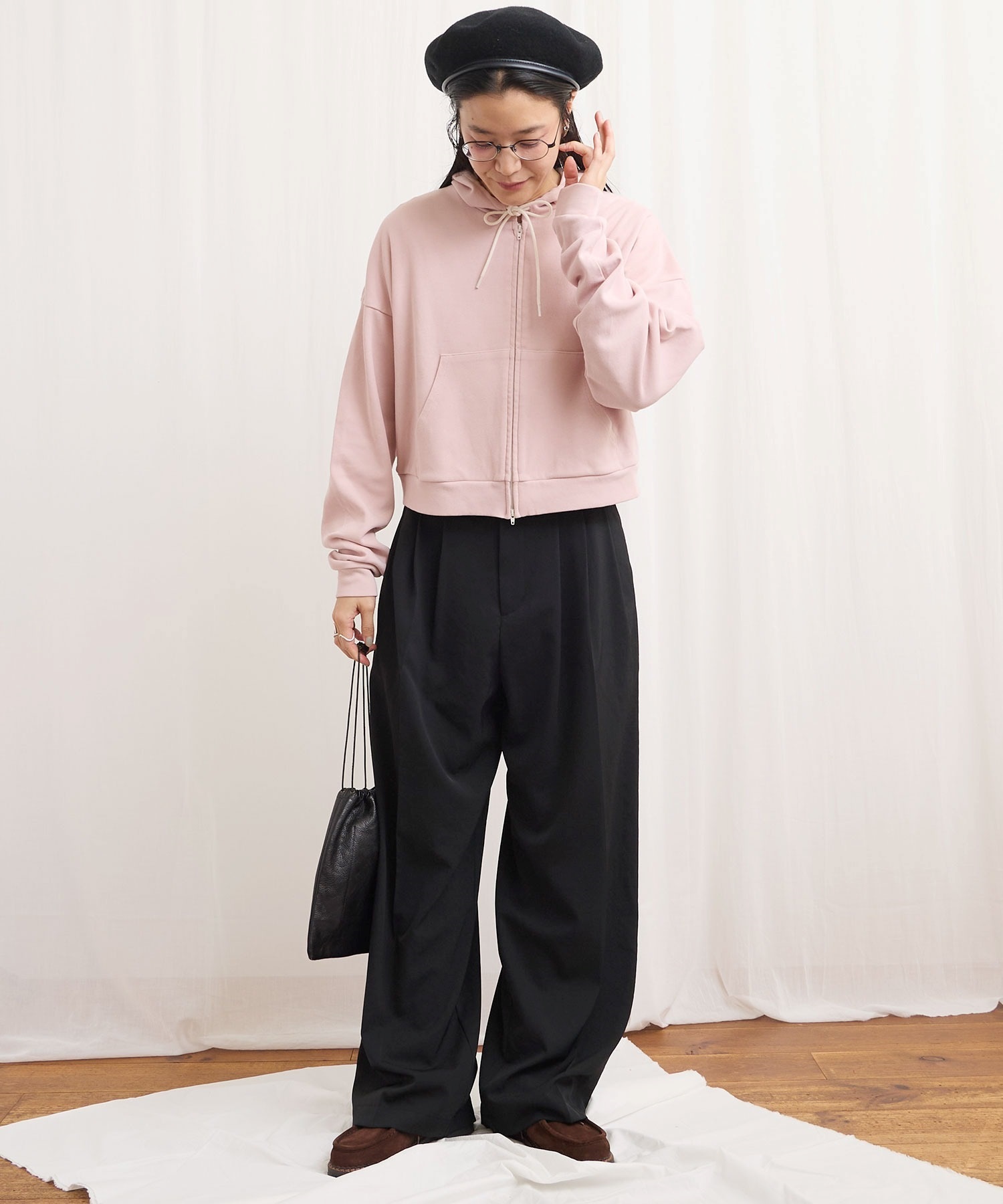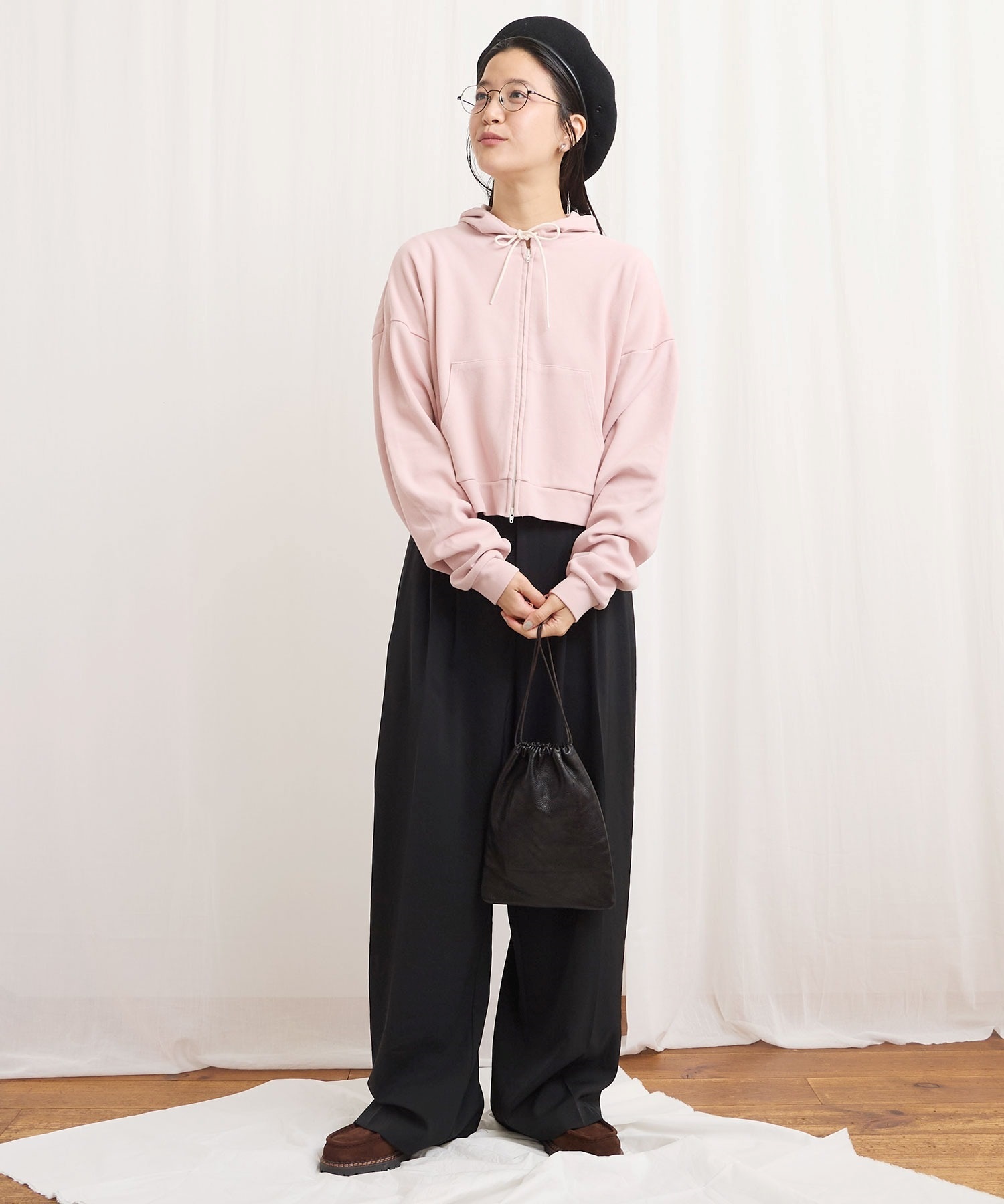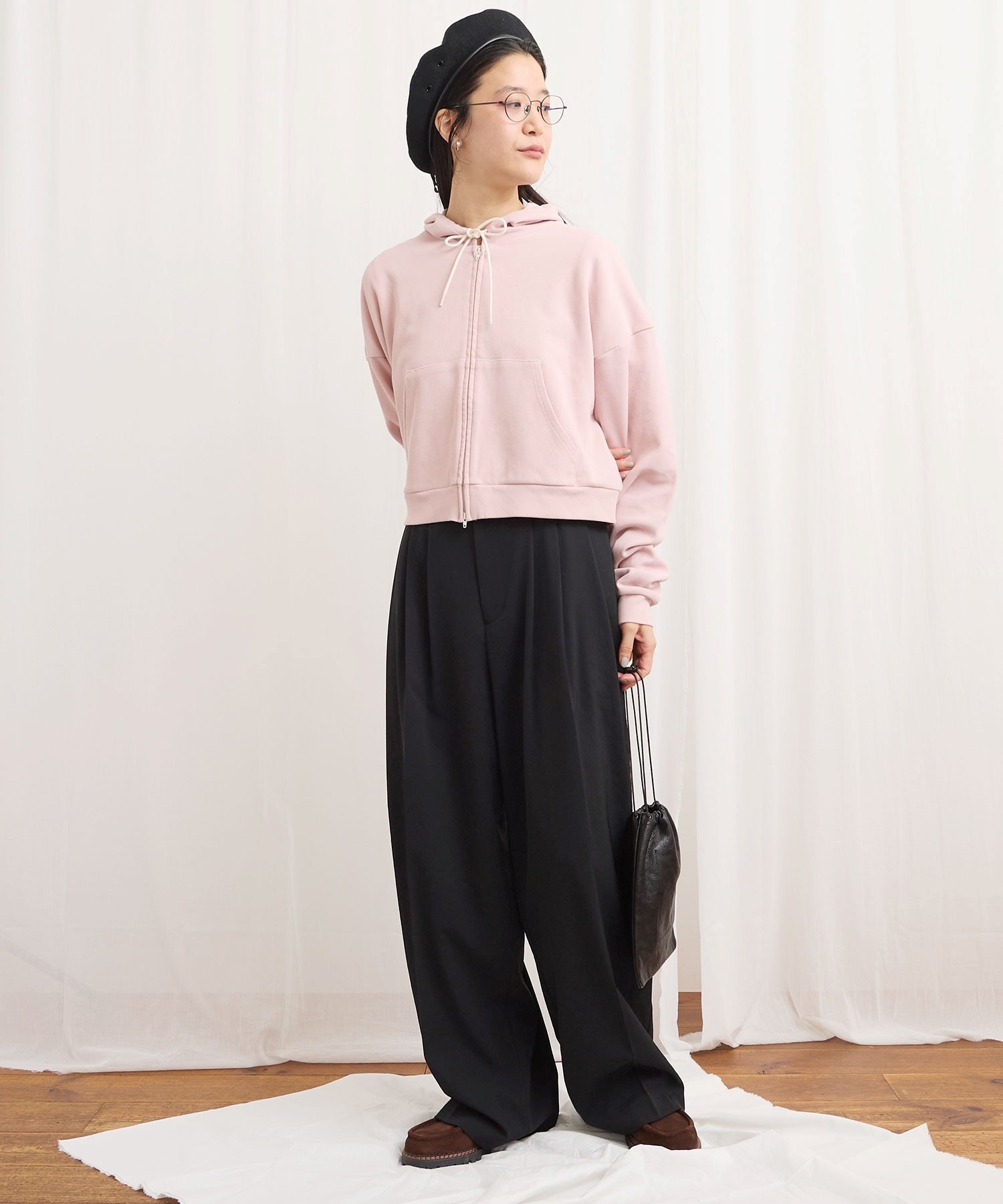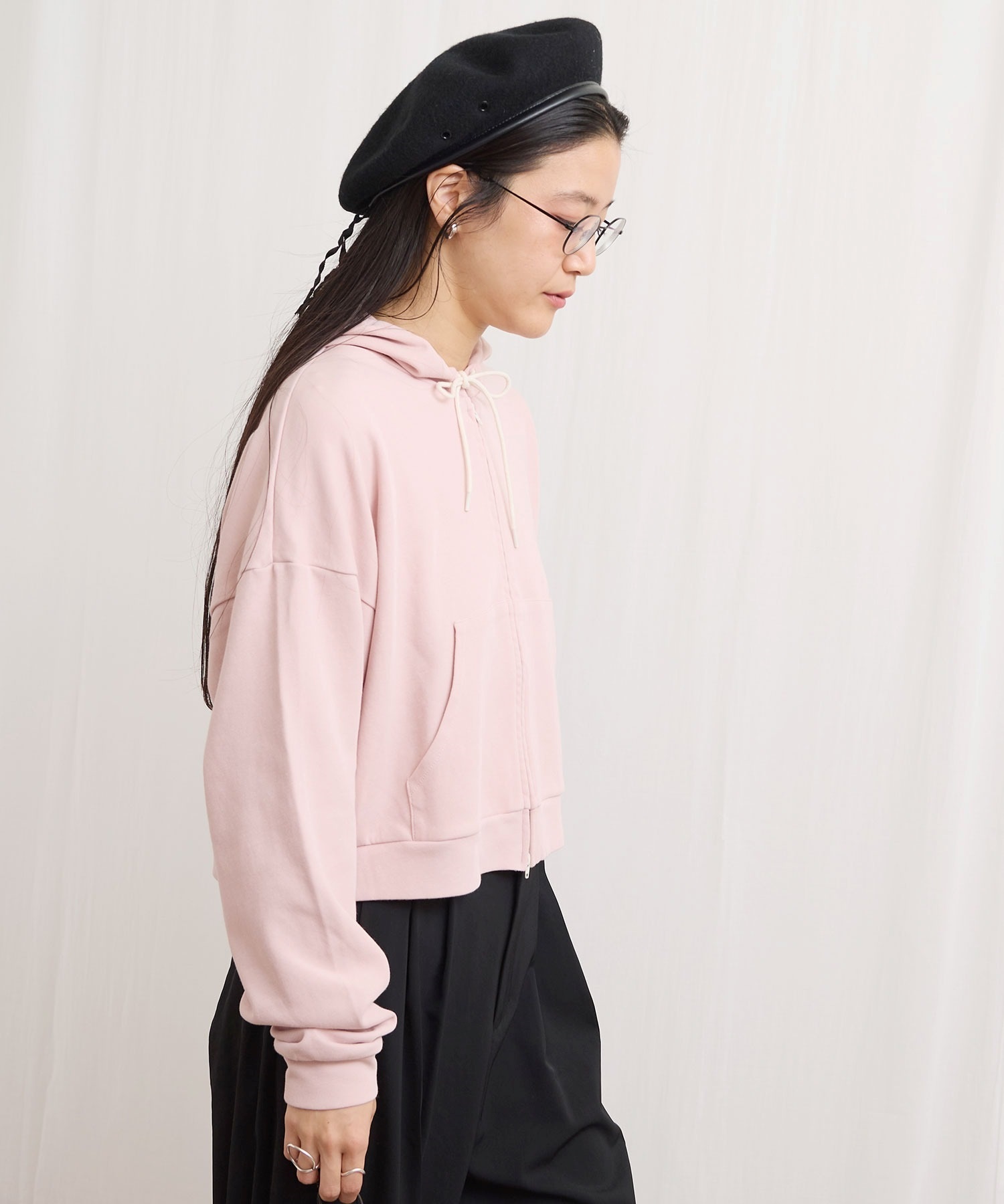 肌触りがさらりとしたショート丈のフーディー。