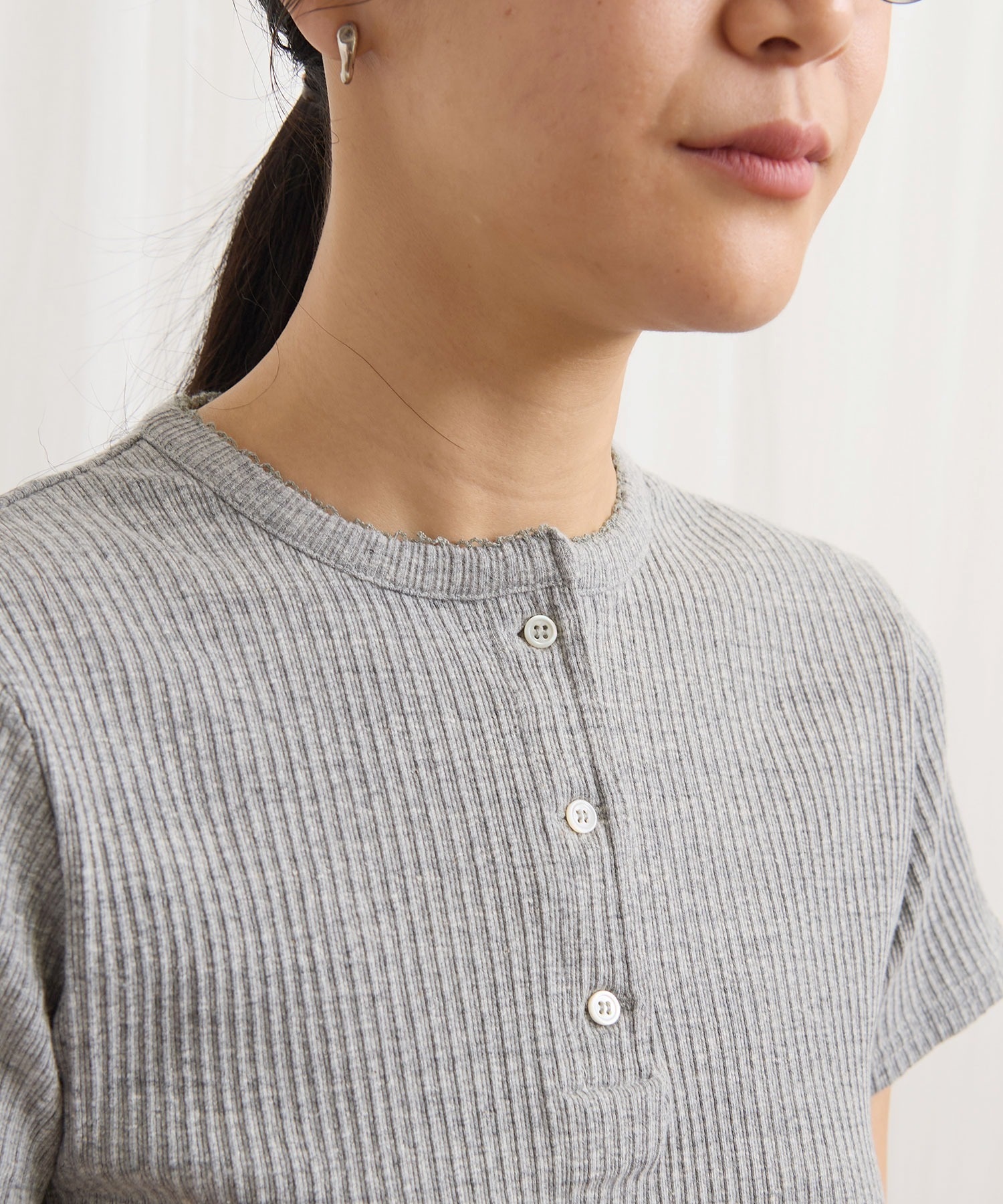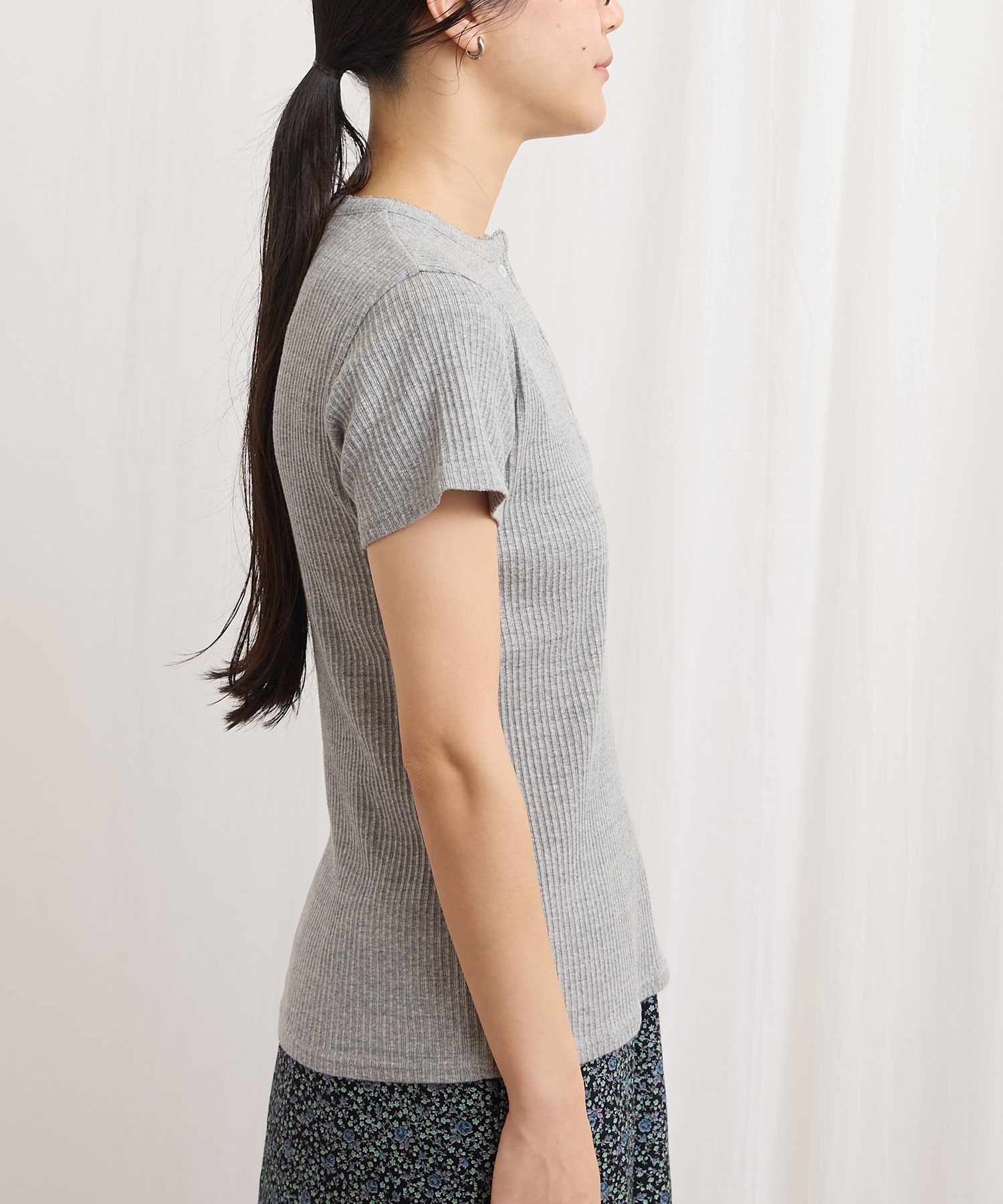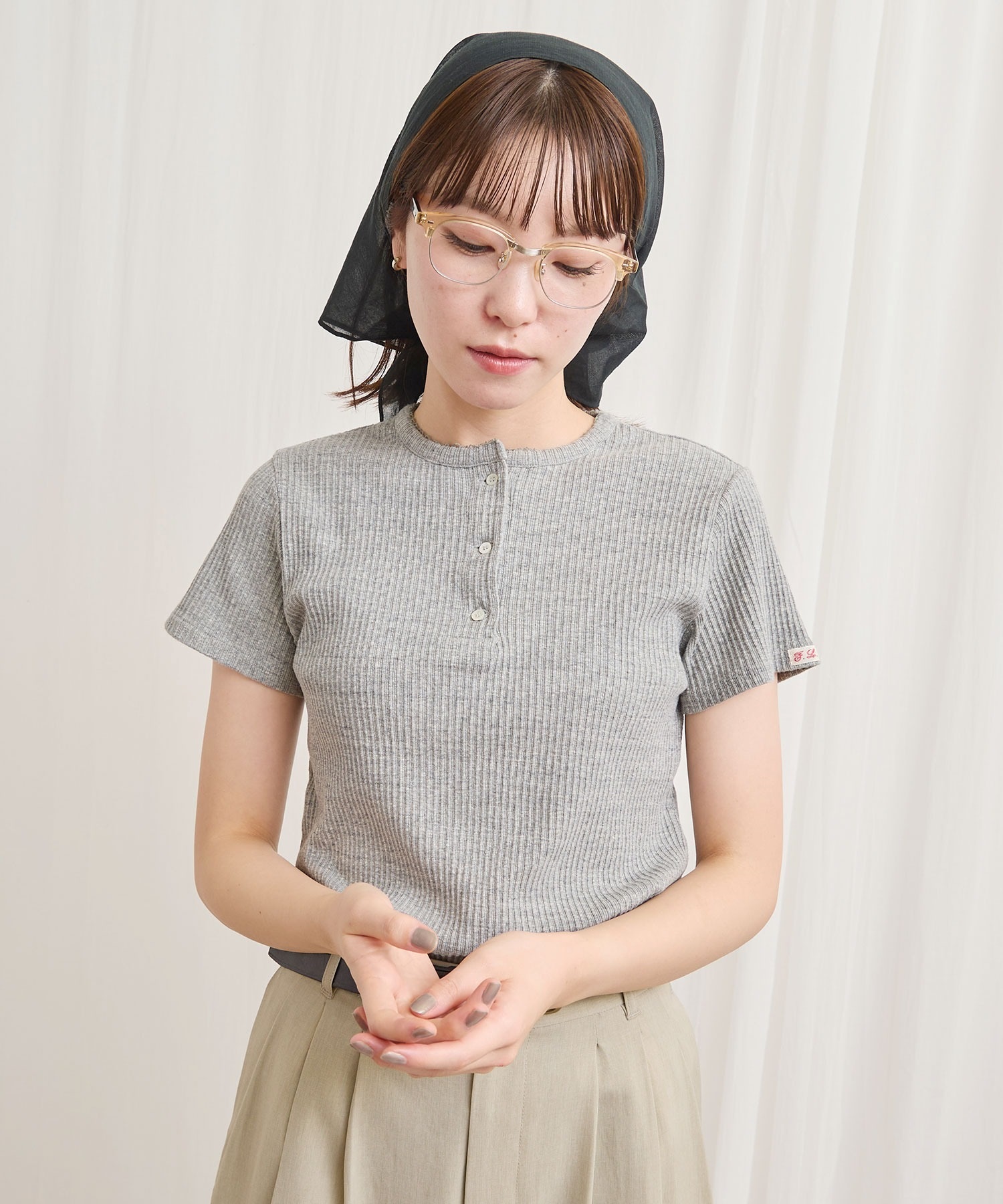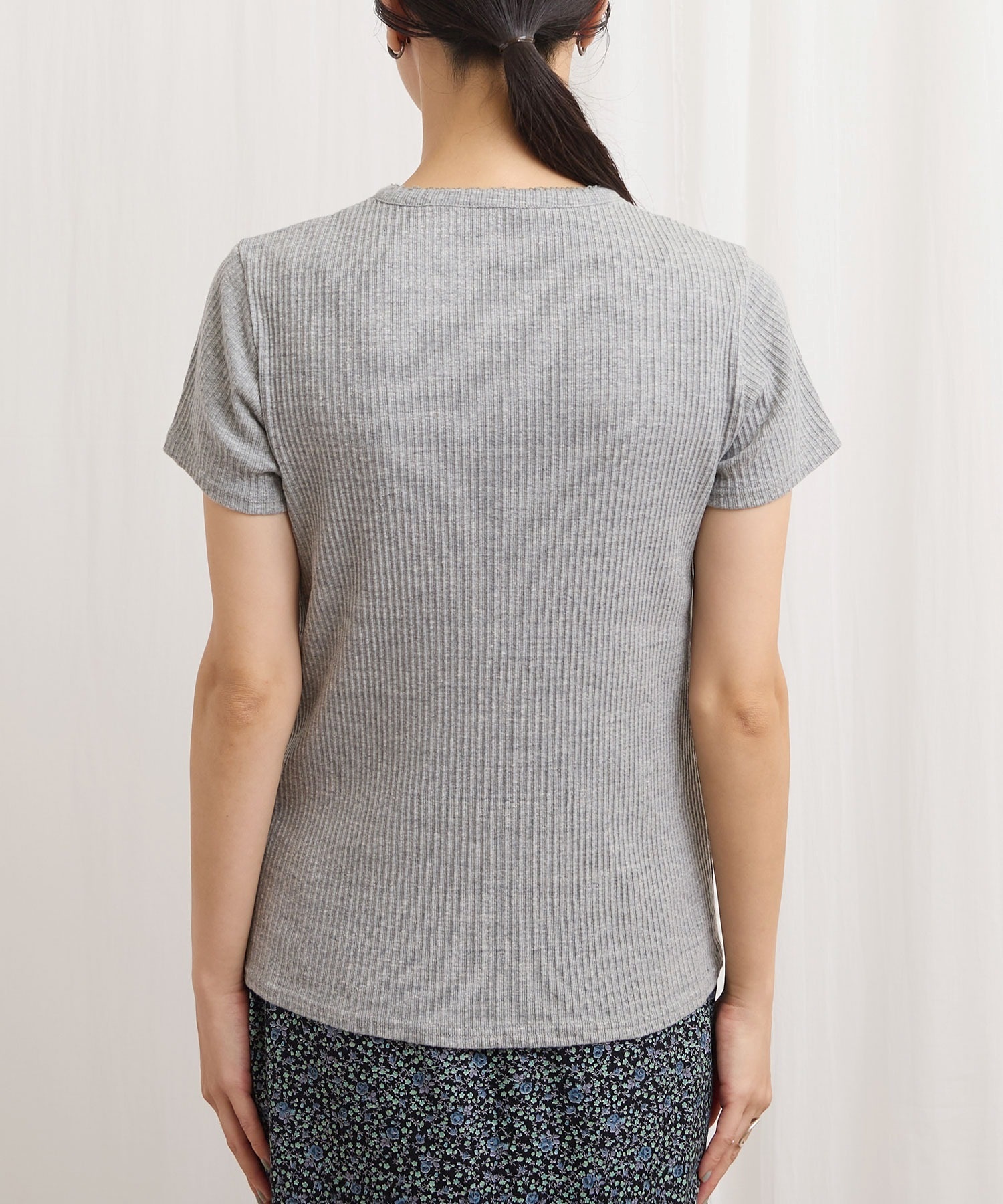 フロントの小さなボタン、袖口のイニシャルネームがどこか懐かしく可憐な雰囲気です。