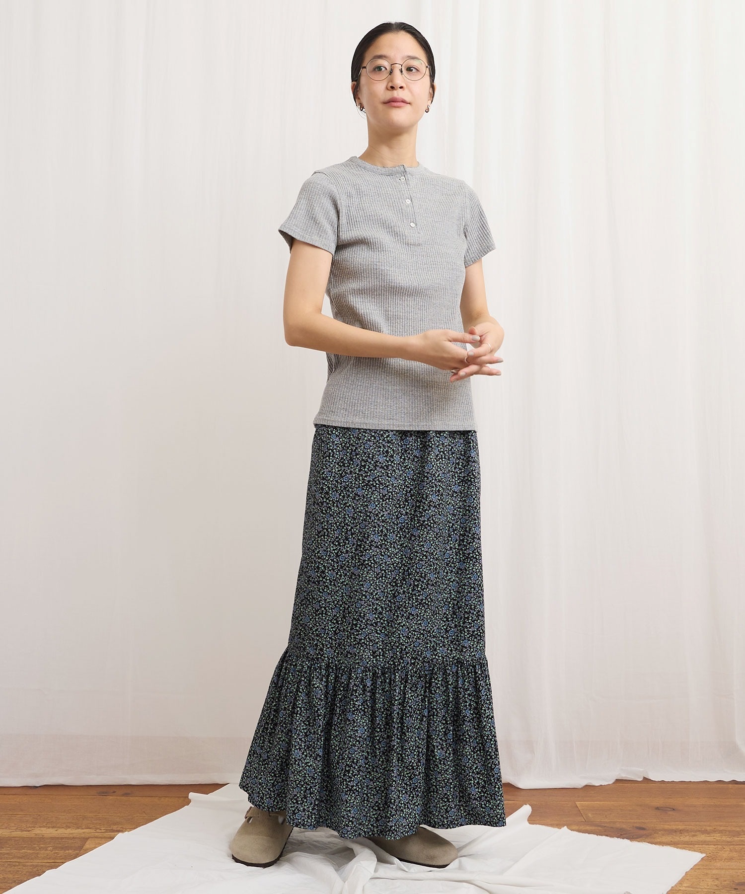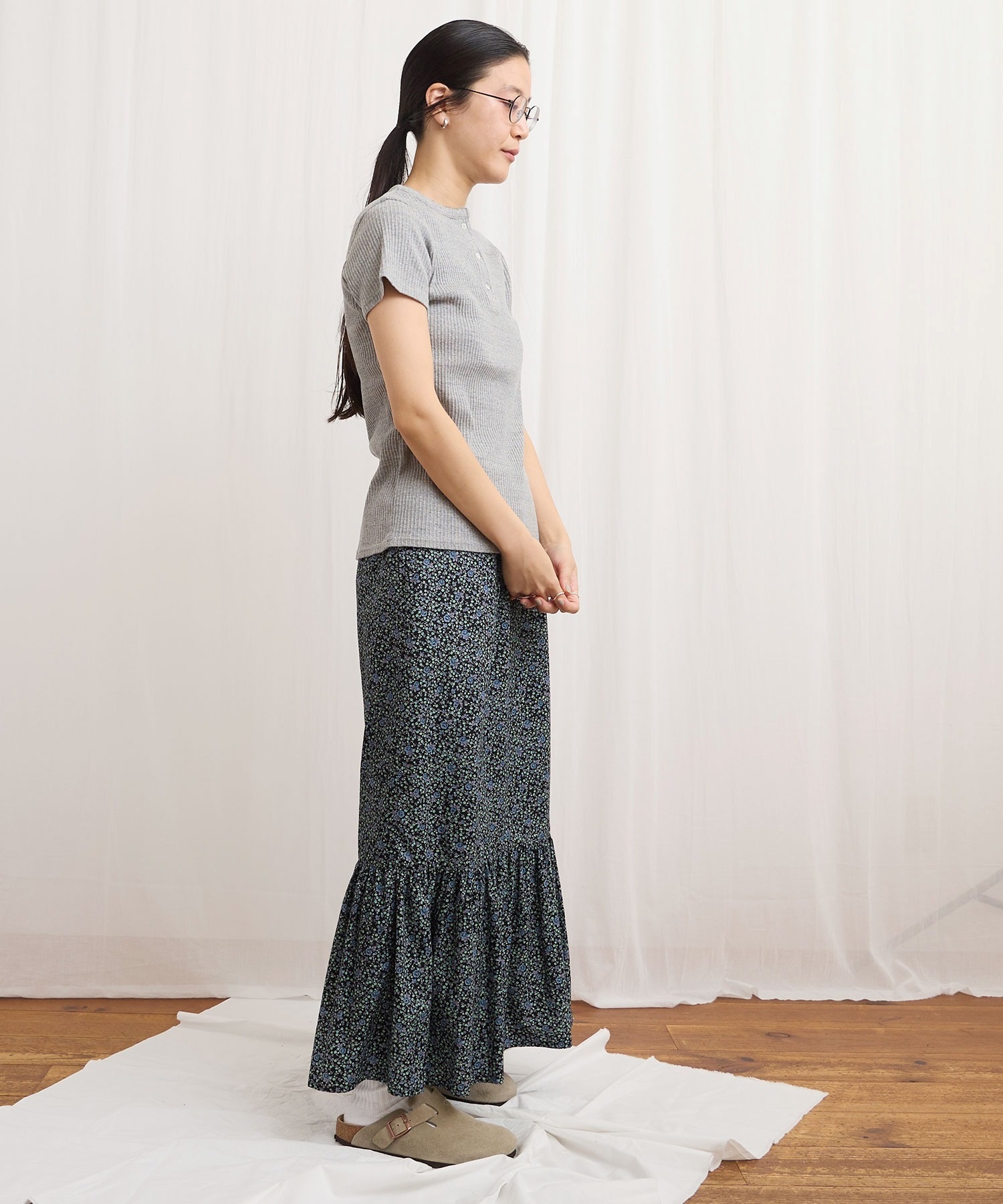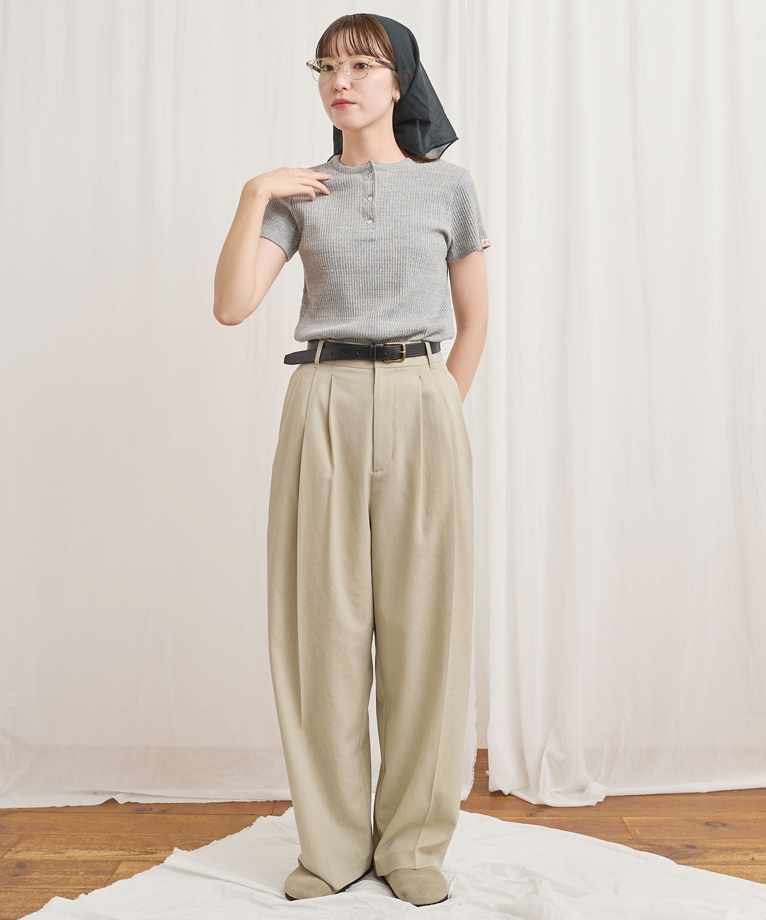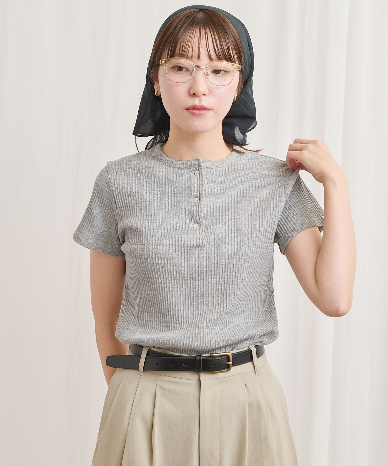 フロントの小さなボタン、袖口のイニシャルネームがどこか懐かしく可憐な雰囲気です。