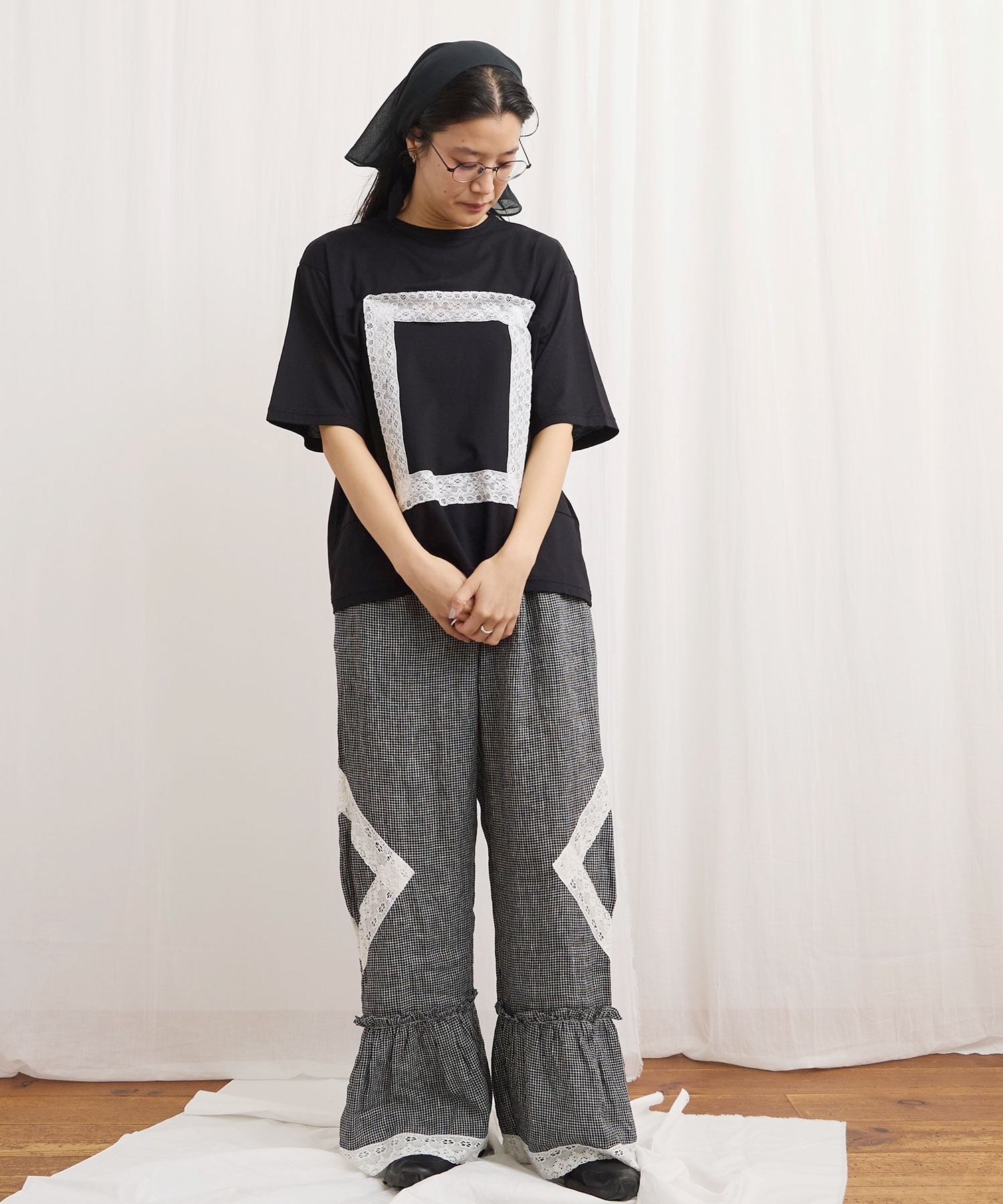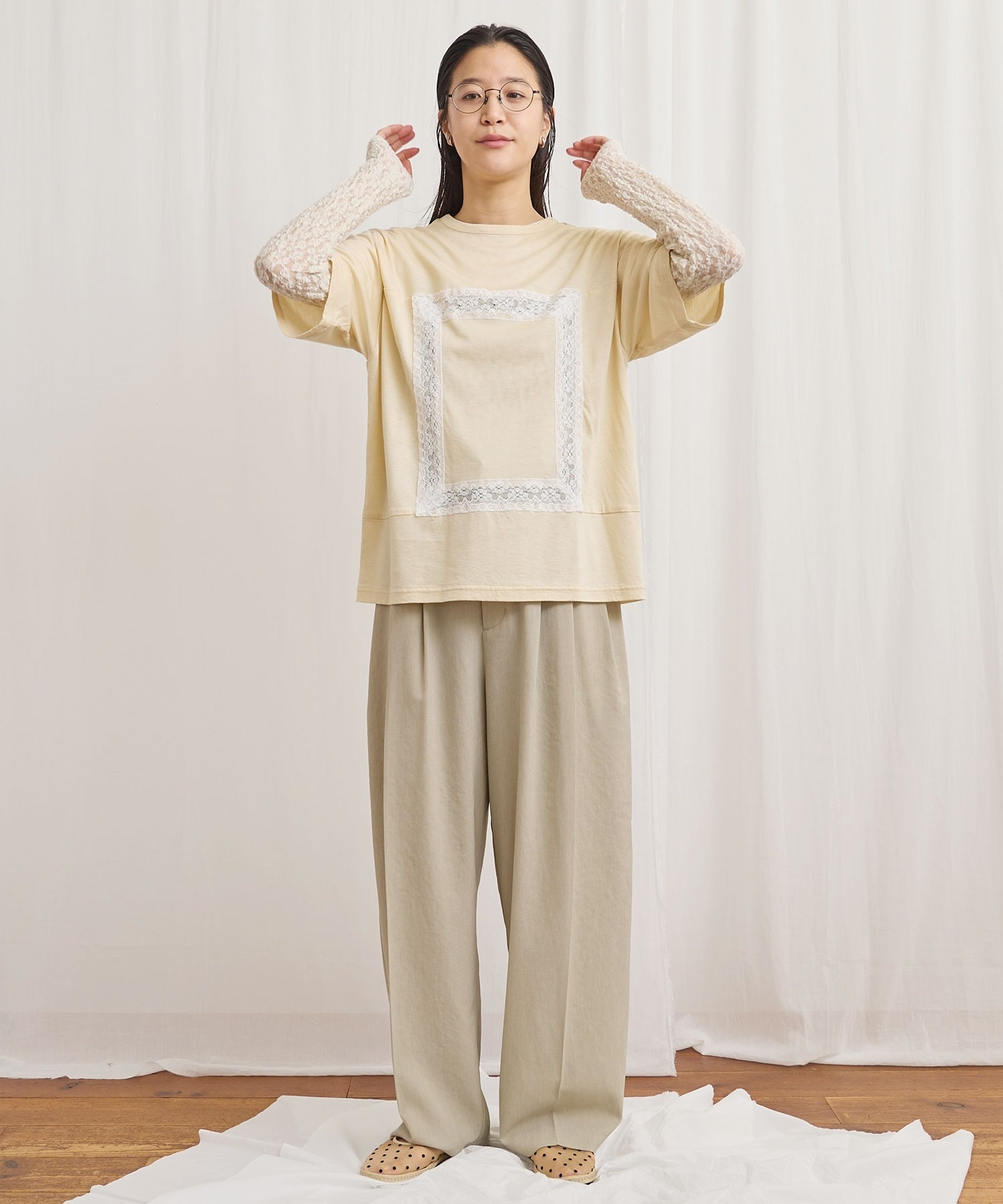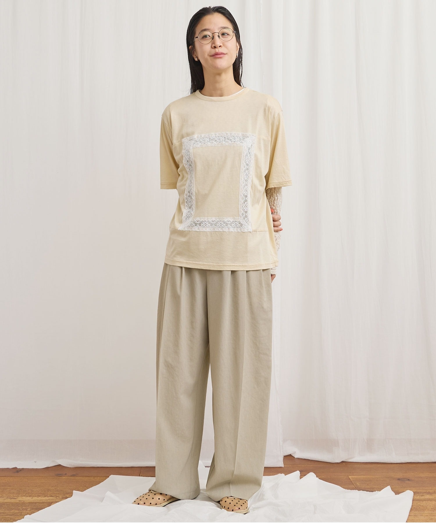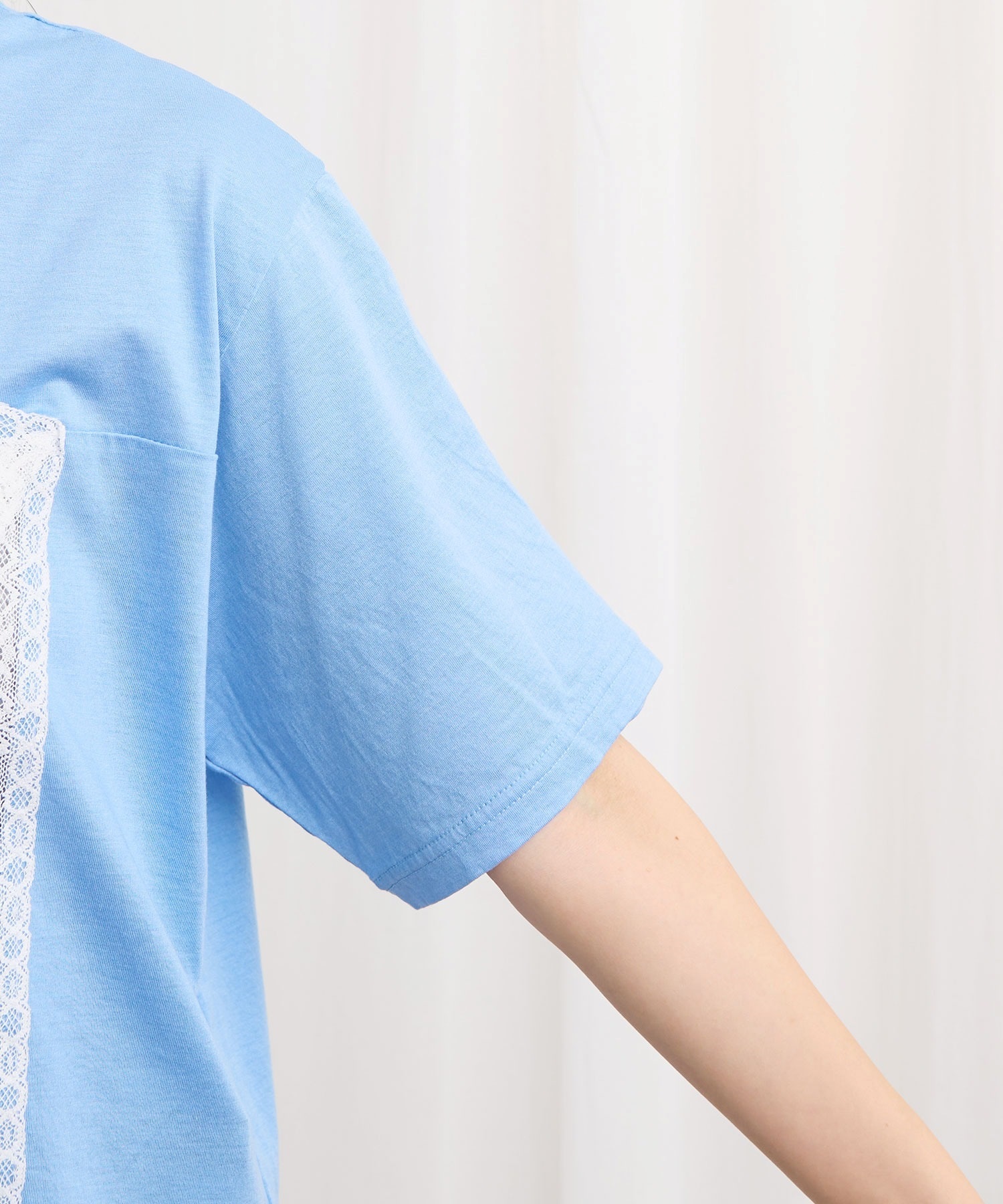 レースの部分は透けさせており、カジュアル過ぎずに着ていただけます。