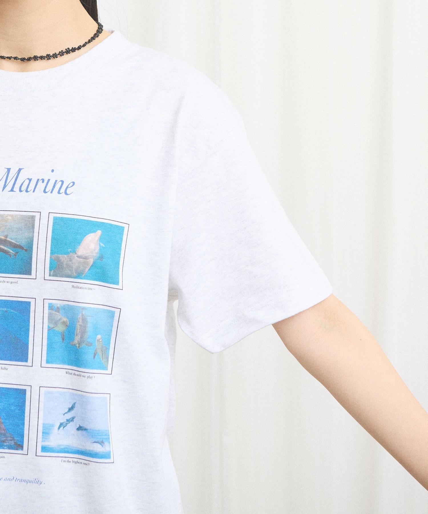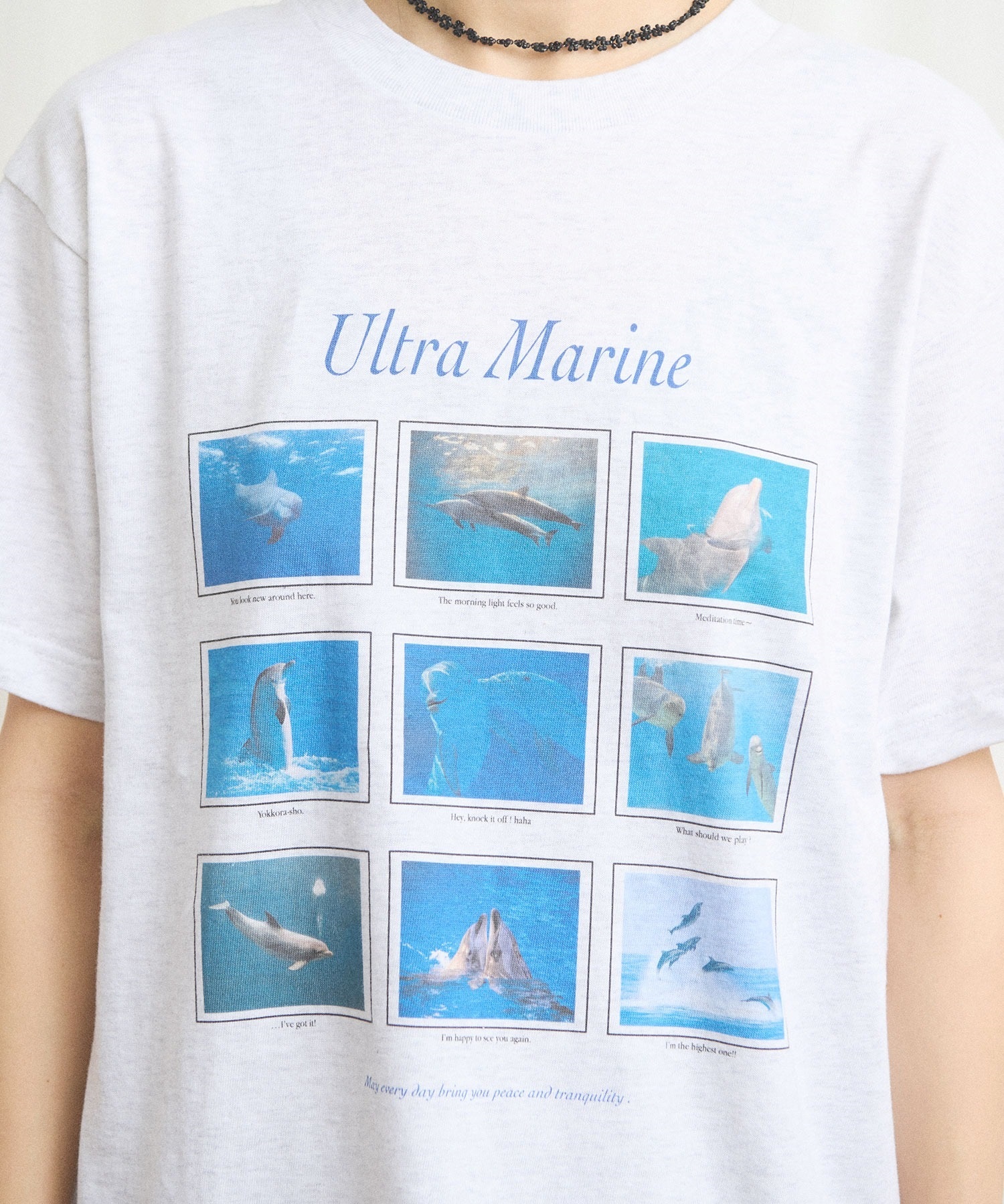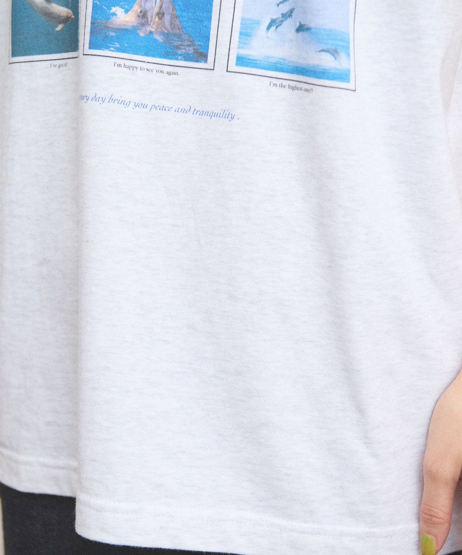 広い海に生きるイルカたちの日常をプリントTシャツにしました。