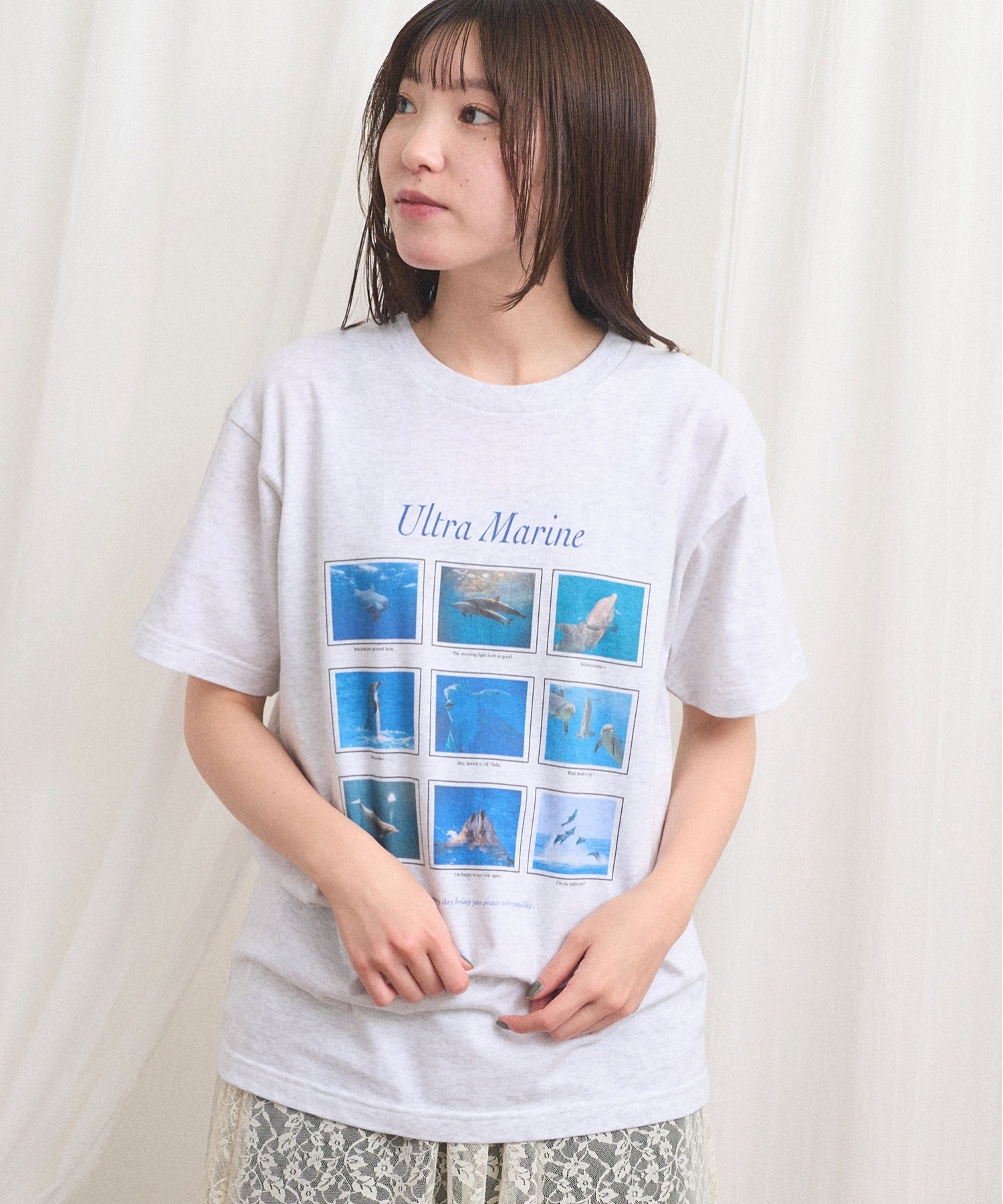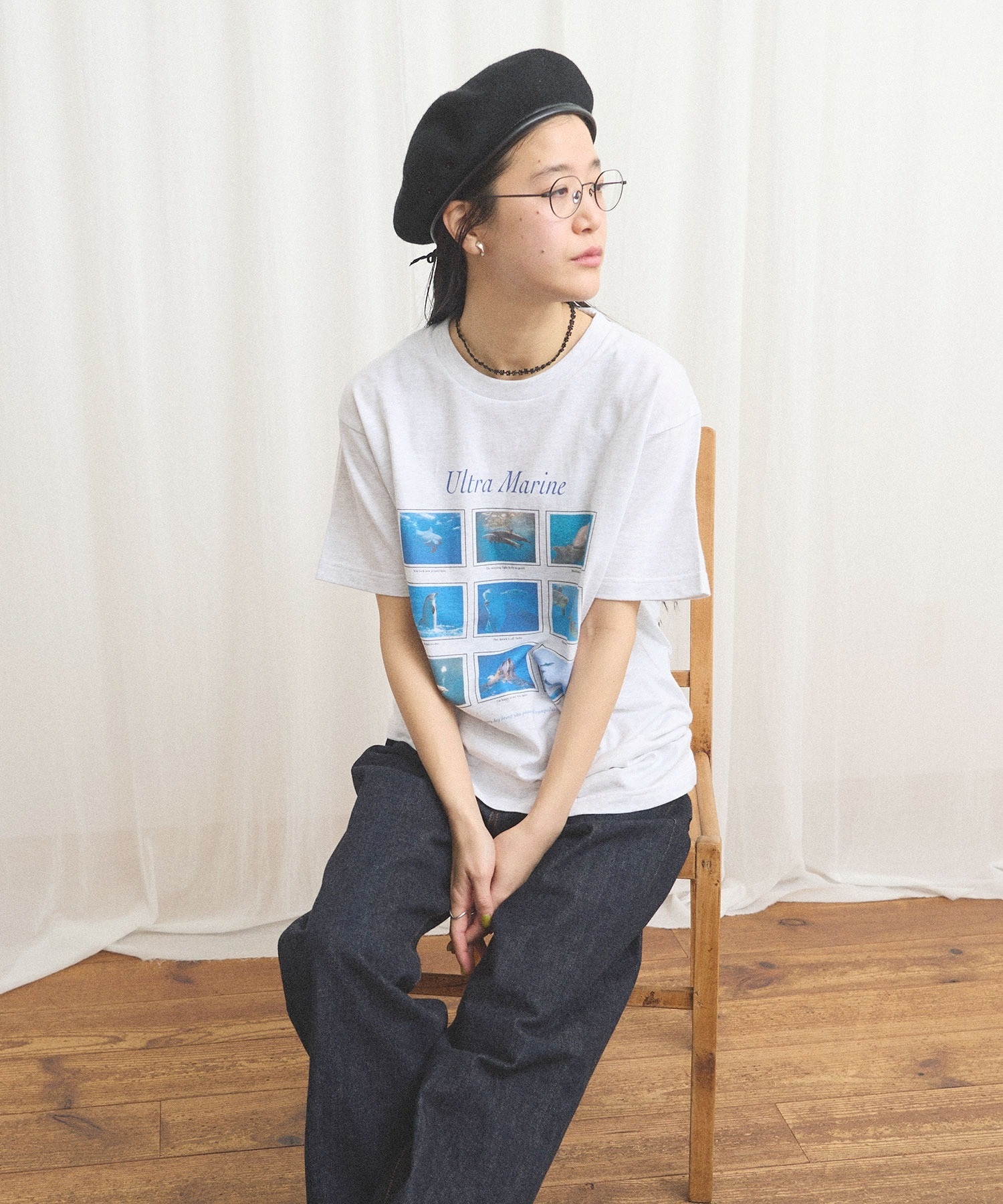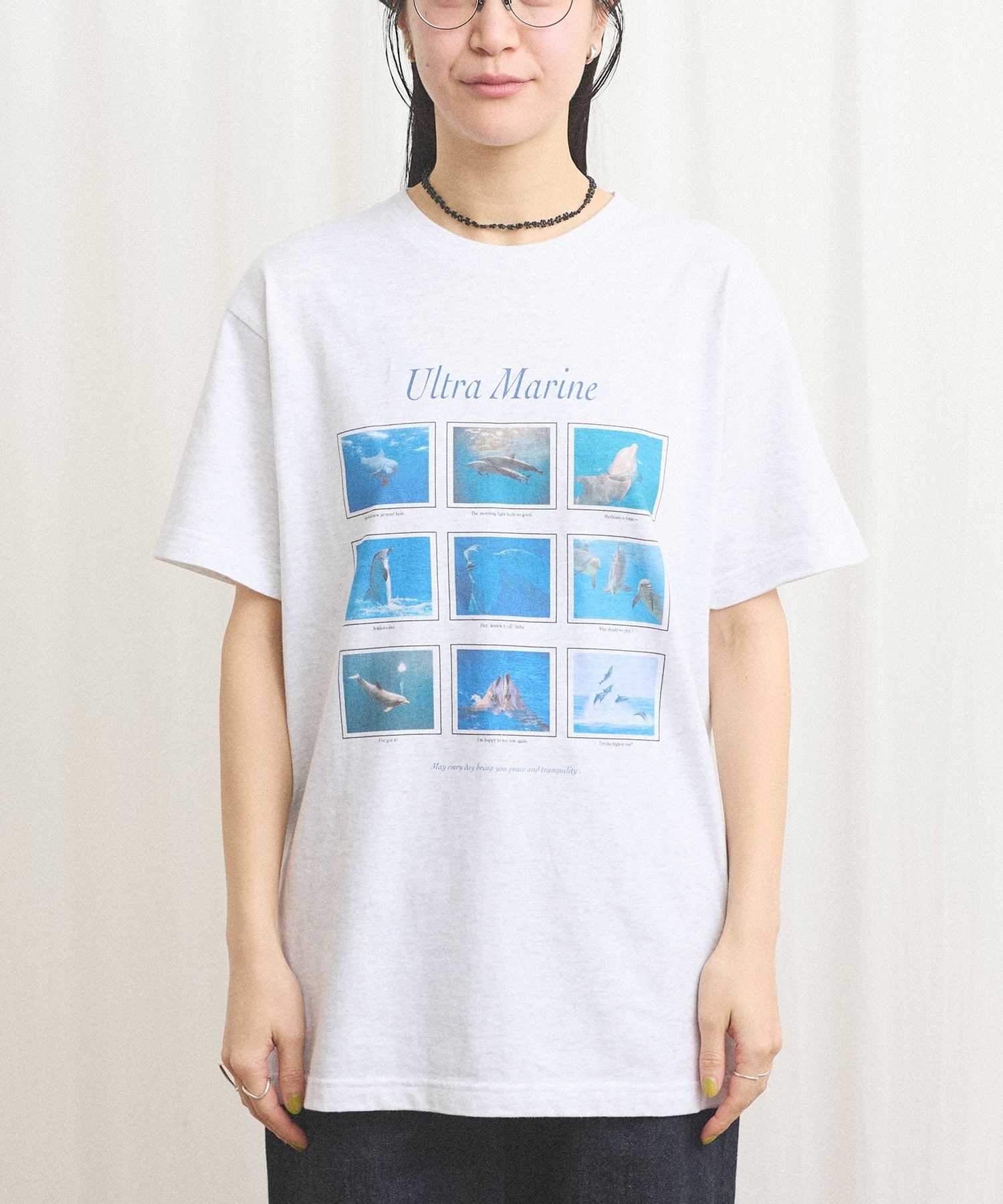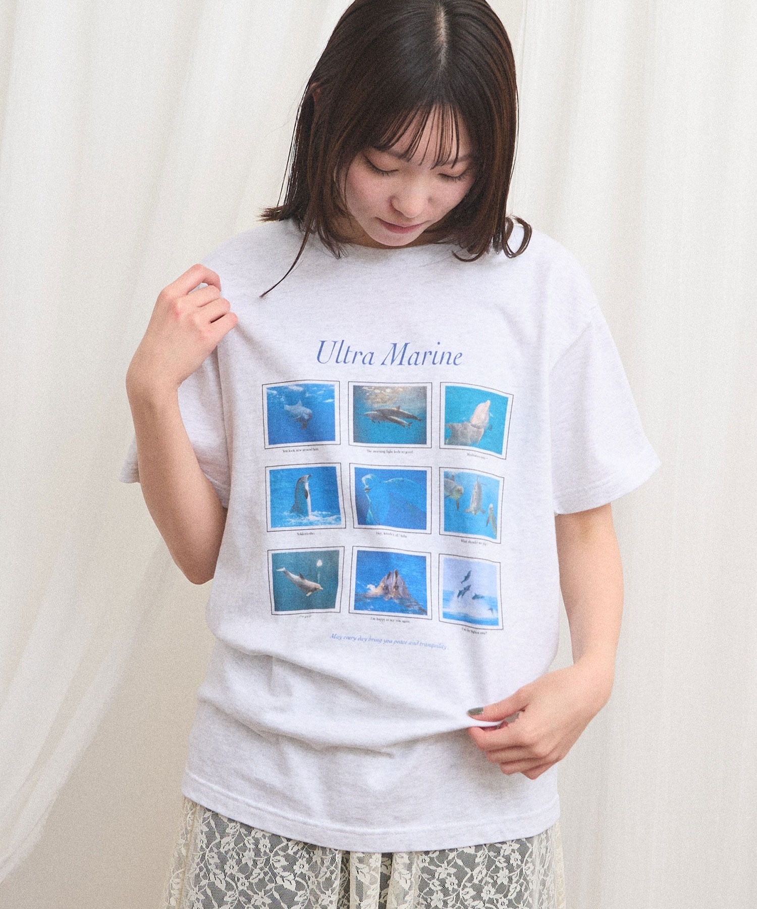 広い海に生きるイルカたちの日常をプリントTシャツにしました。
