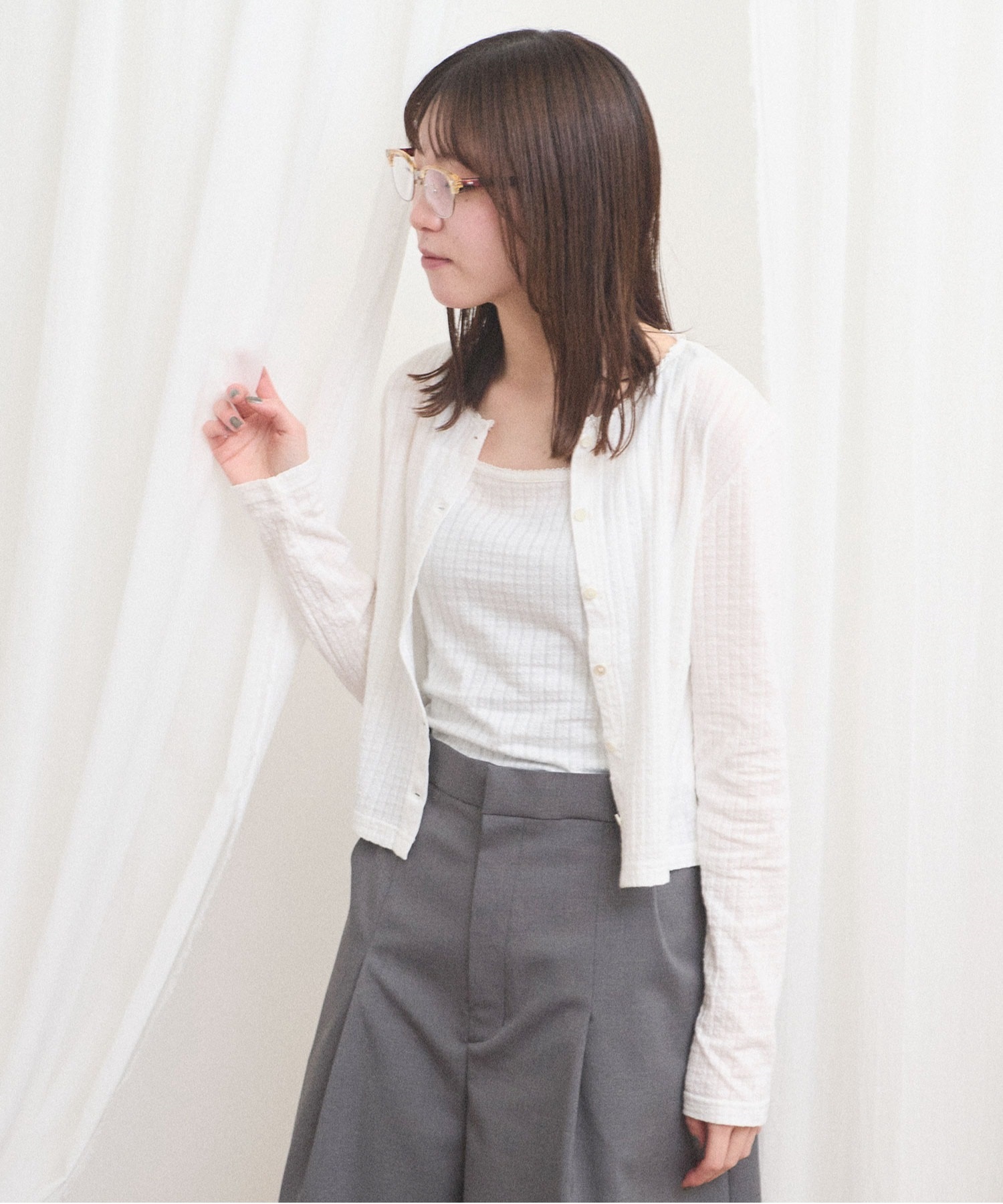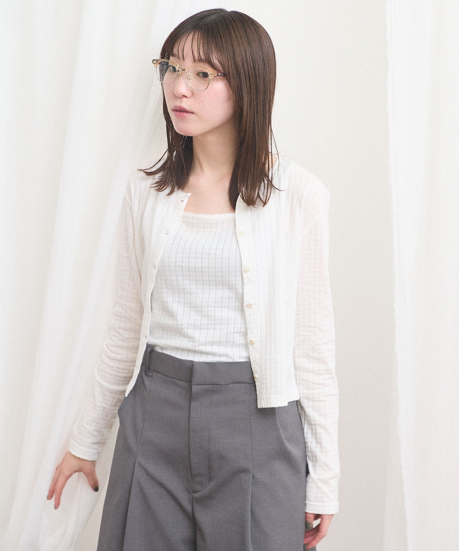 キャミソールは肩紐と衿ぐりにピコステッチを施し懐かしさのあるデザイン。