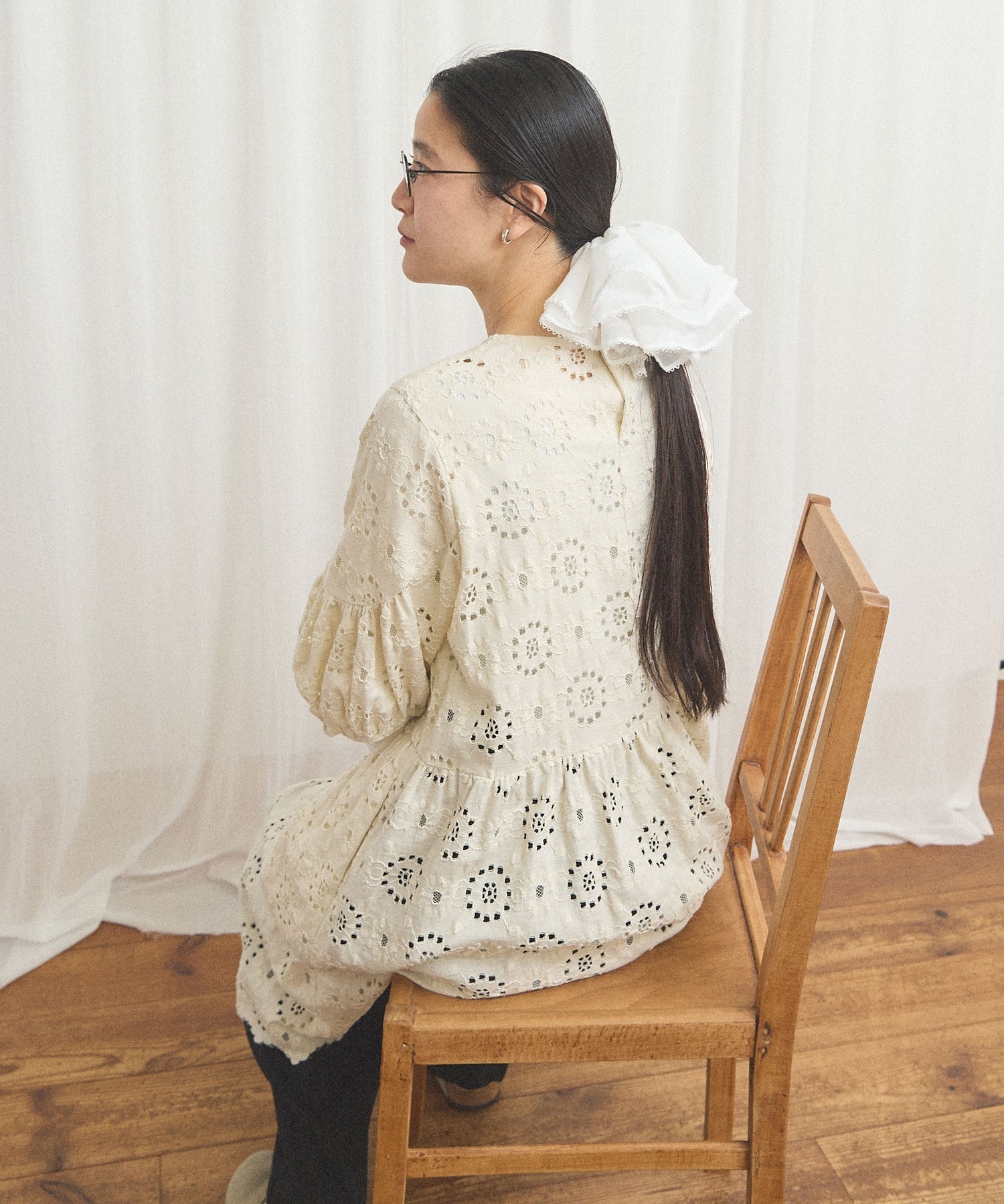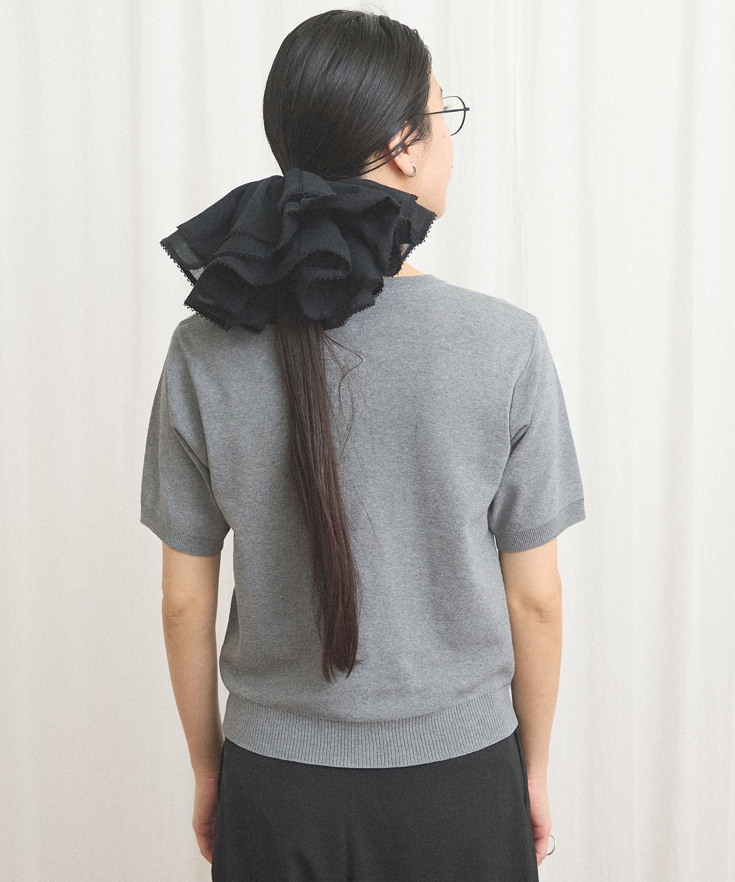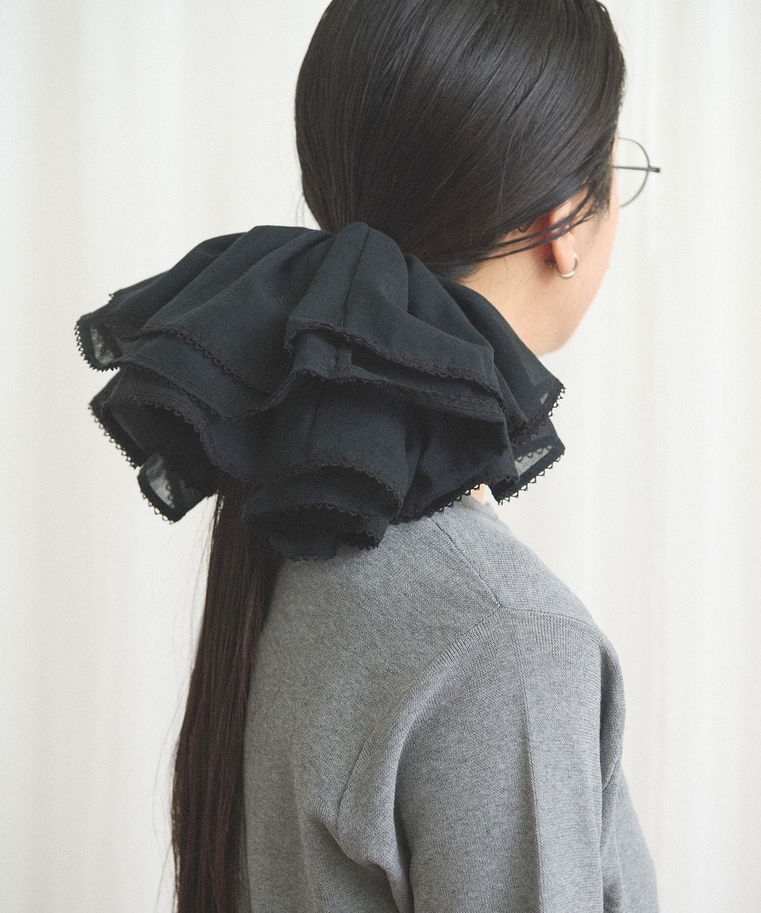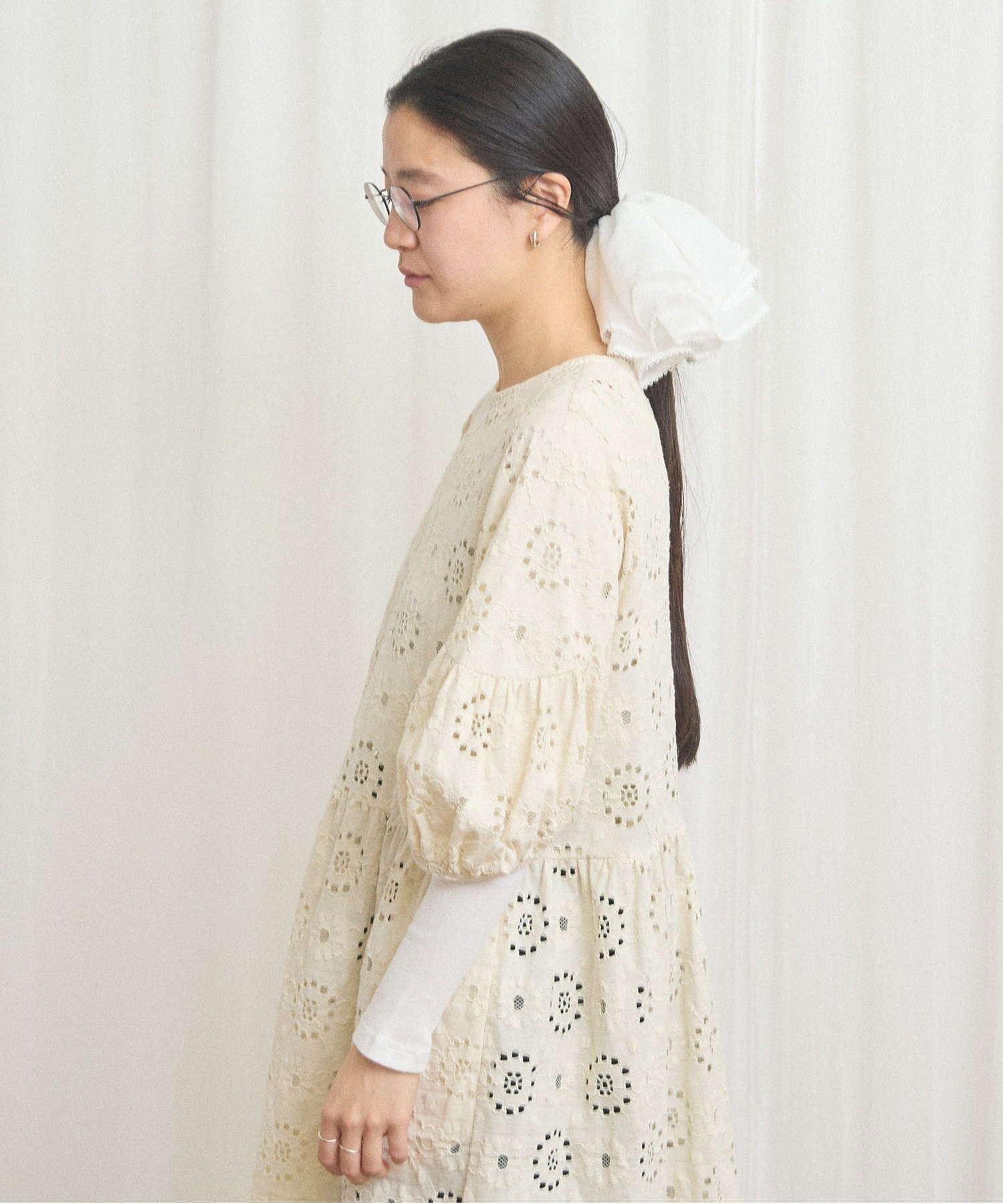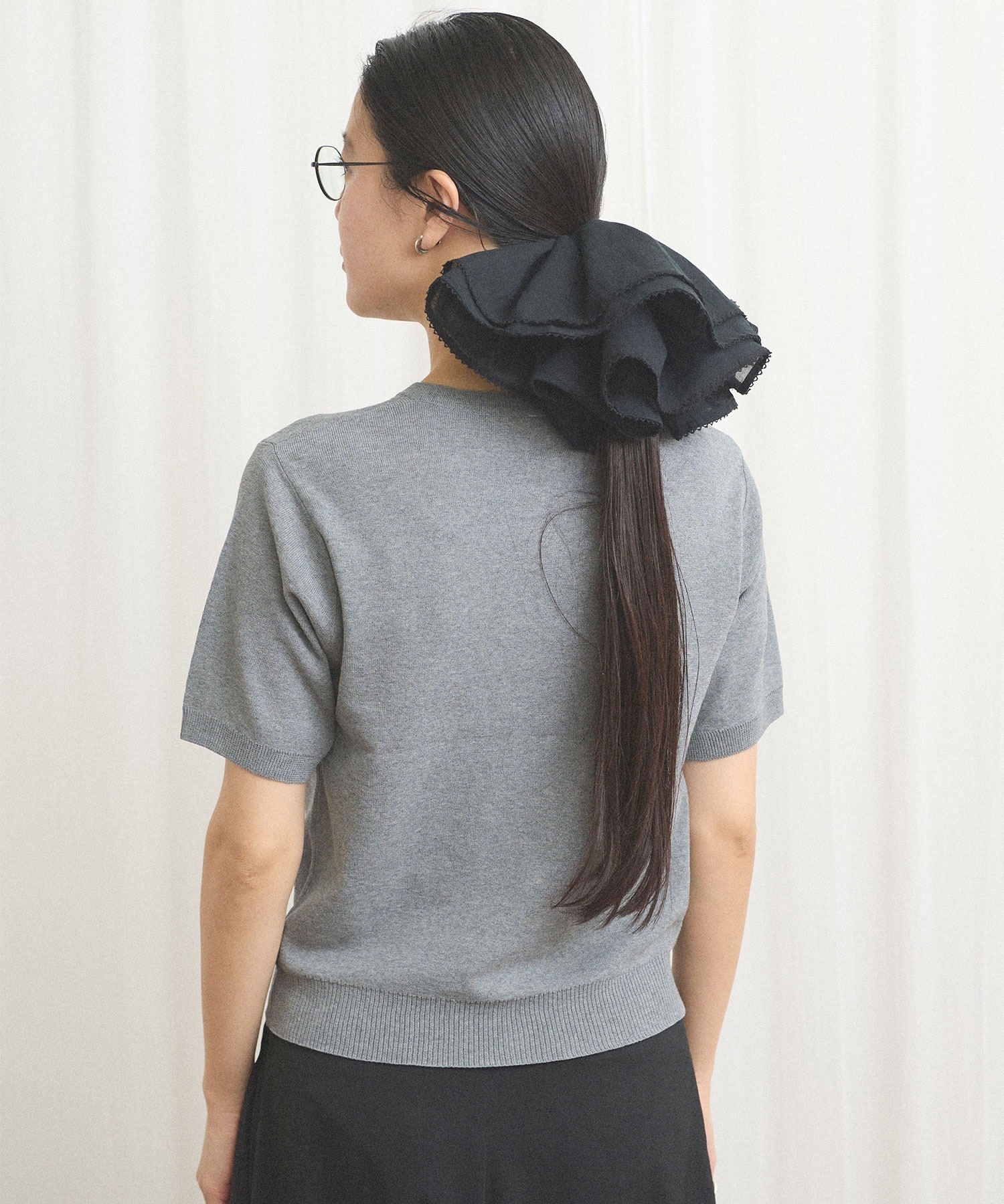 先にゴムで結んでいただくか、おだんごにした髪にはめるだけのシュシュ。