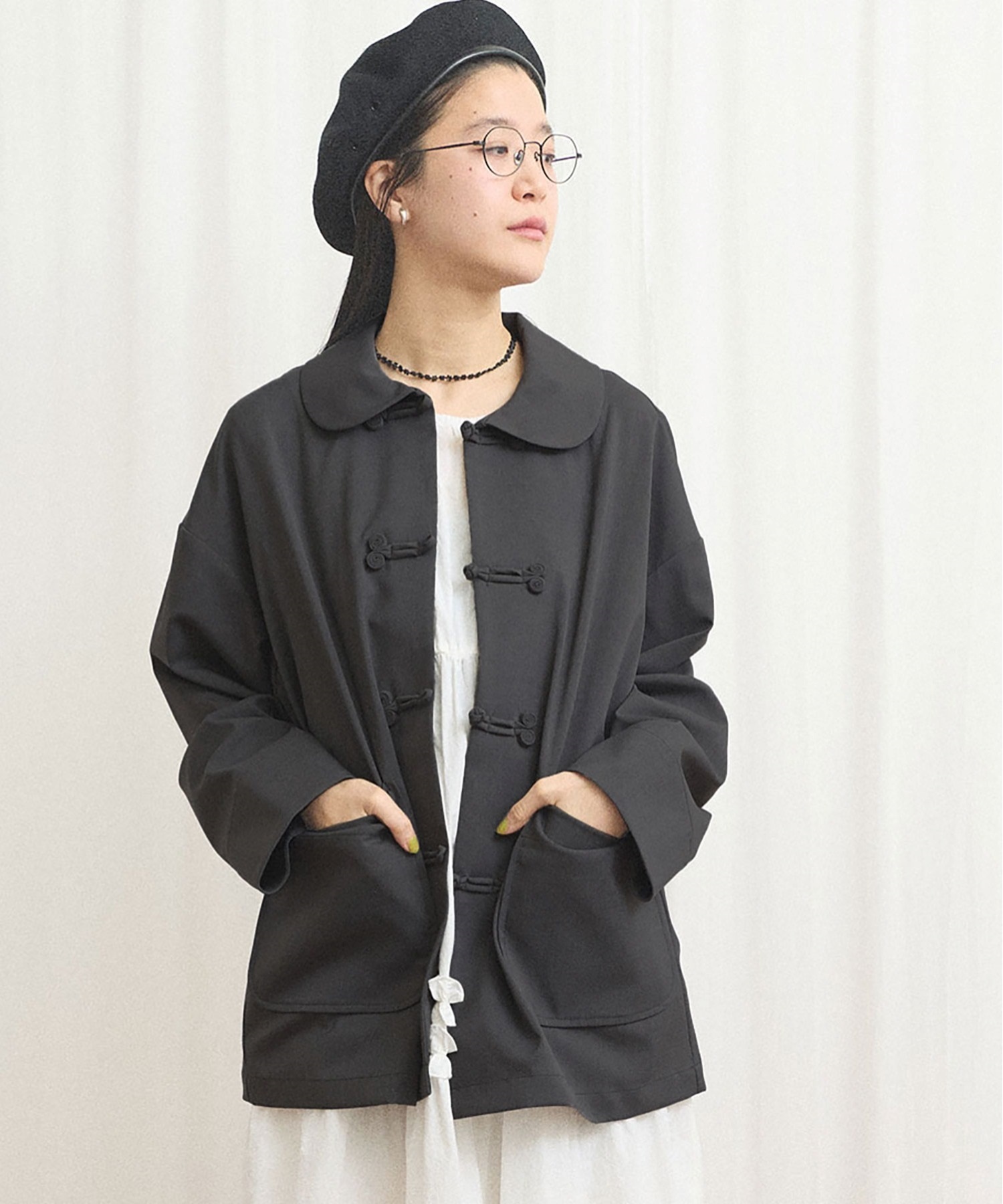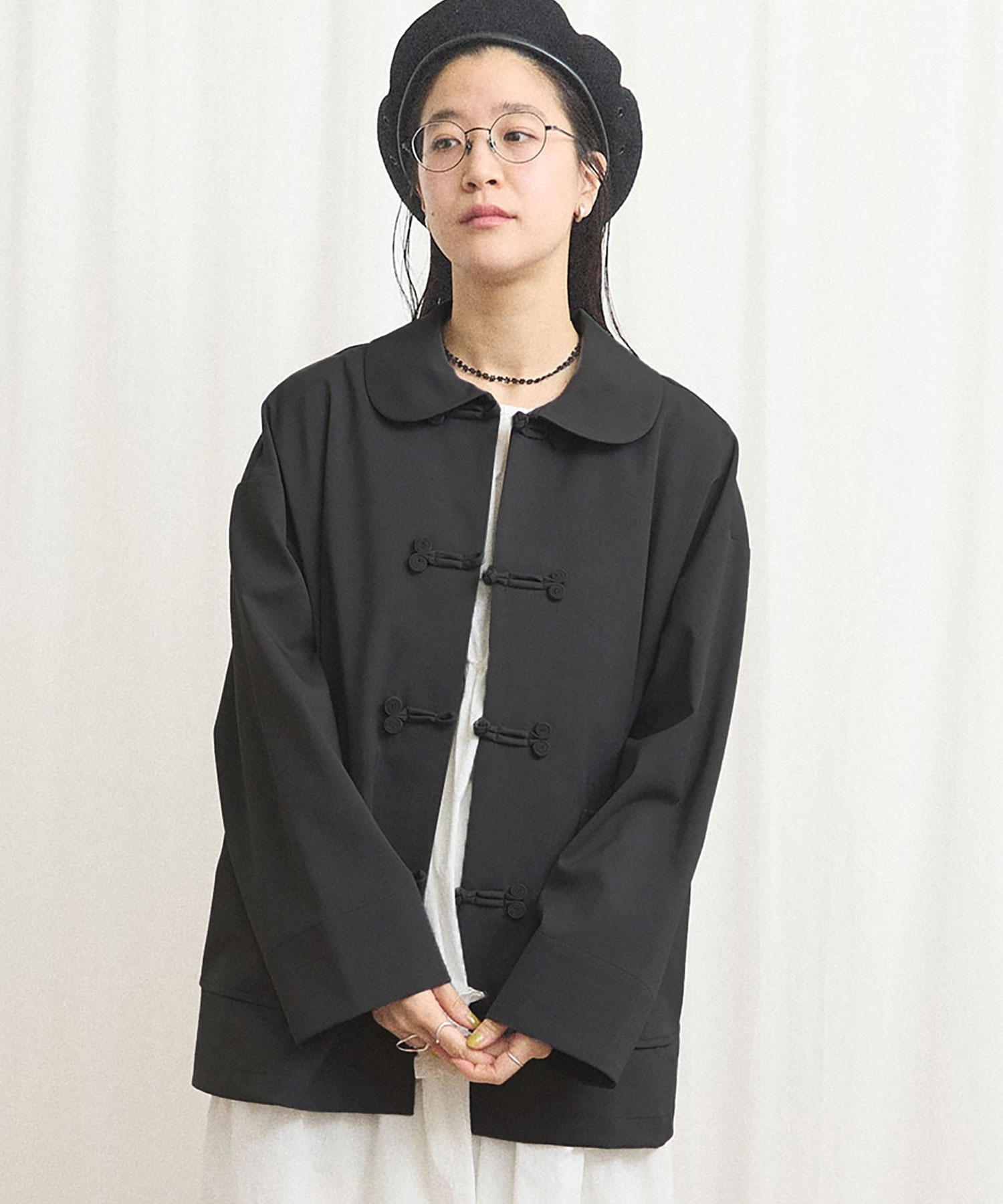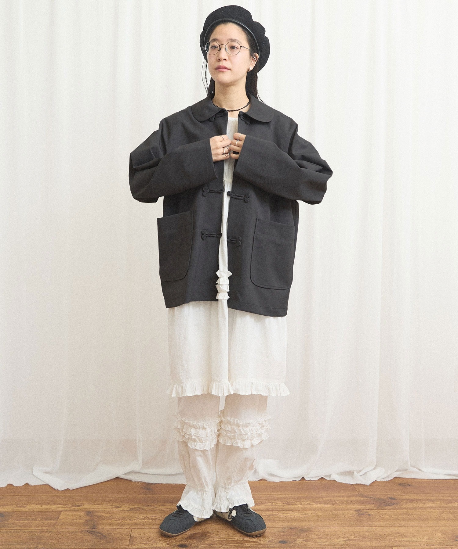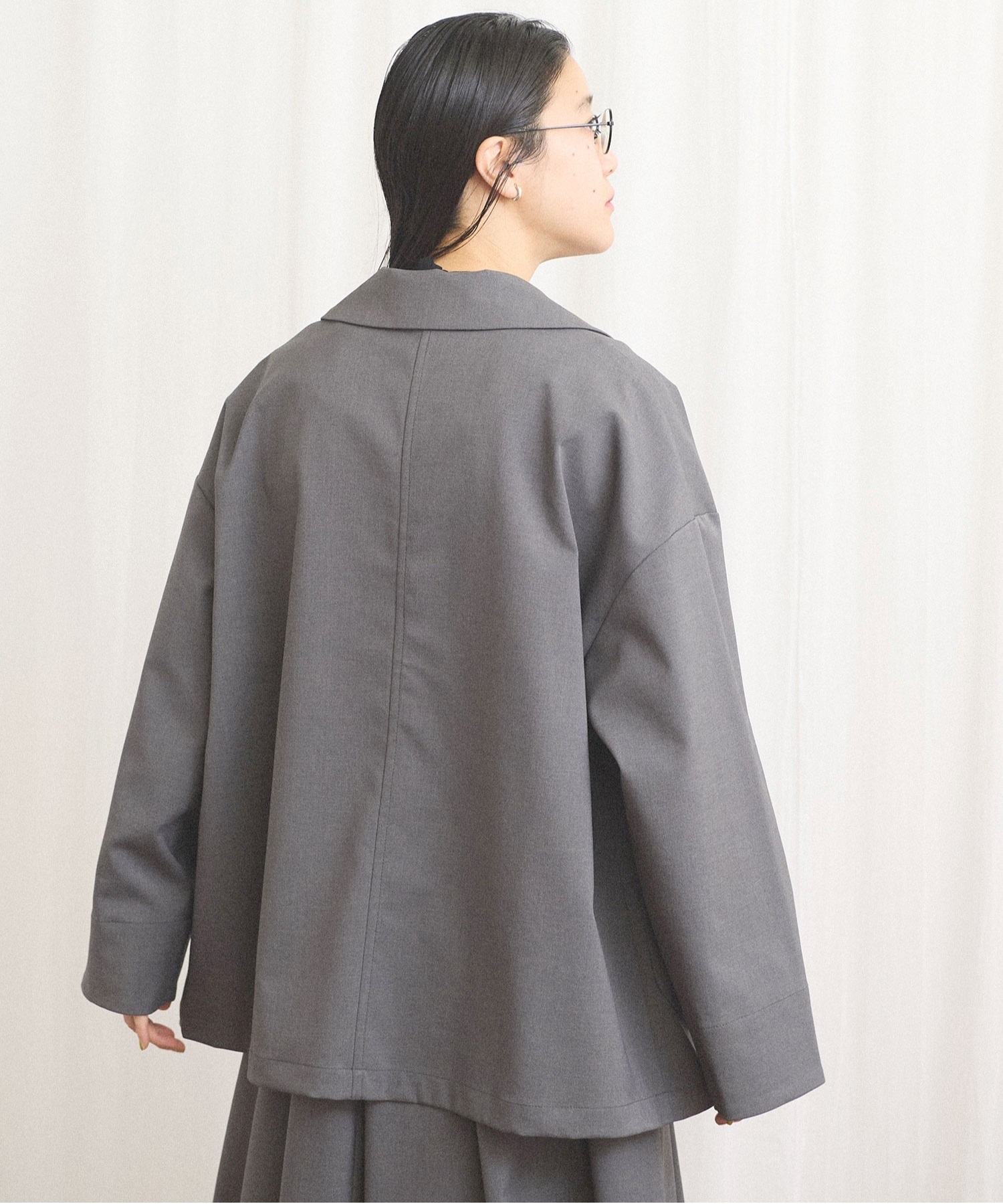 ゆったりしたサイズ、裏地なしの1枚仕立てで春秋などにさっと羽織りやすいアウターです。
