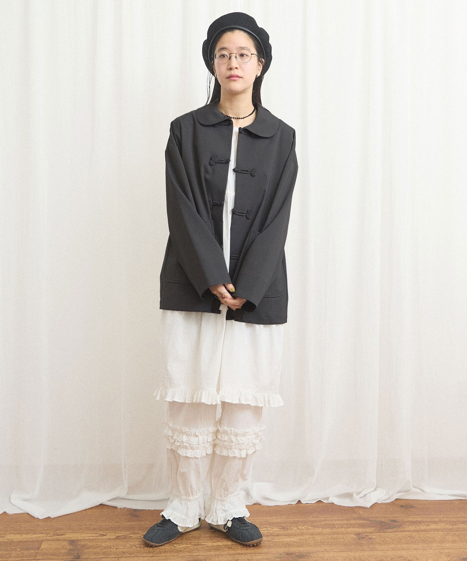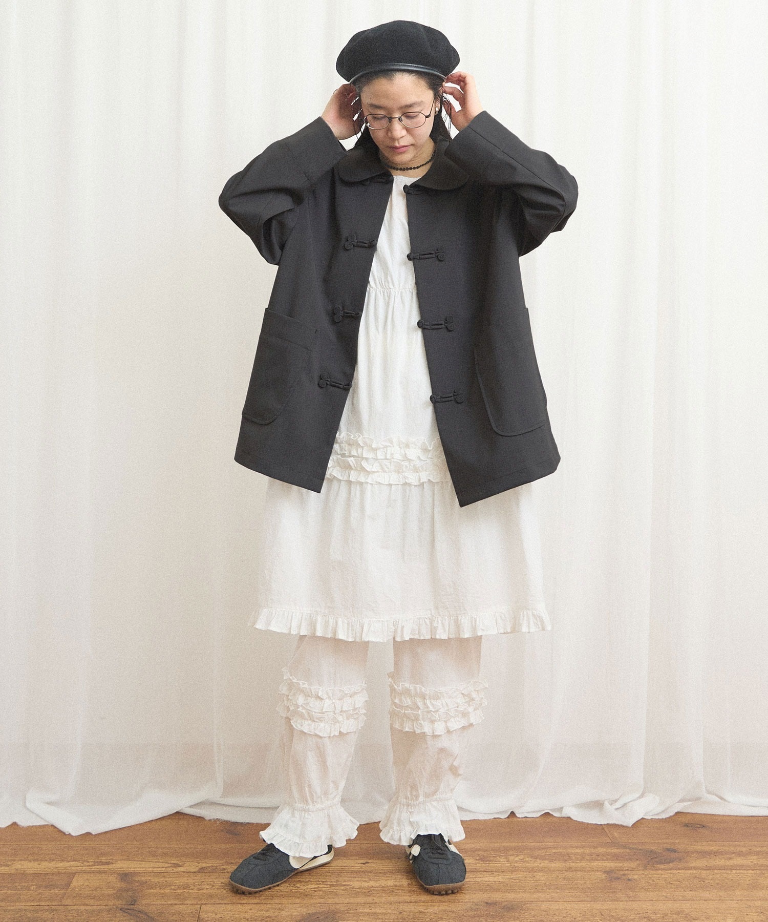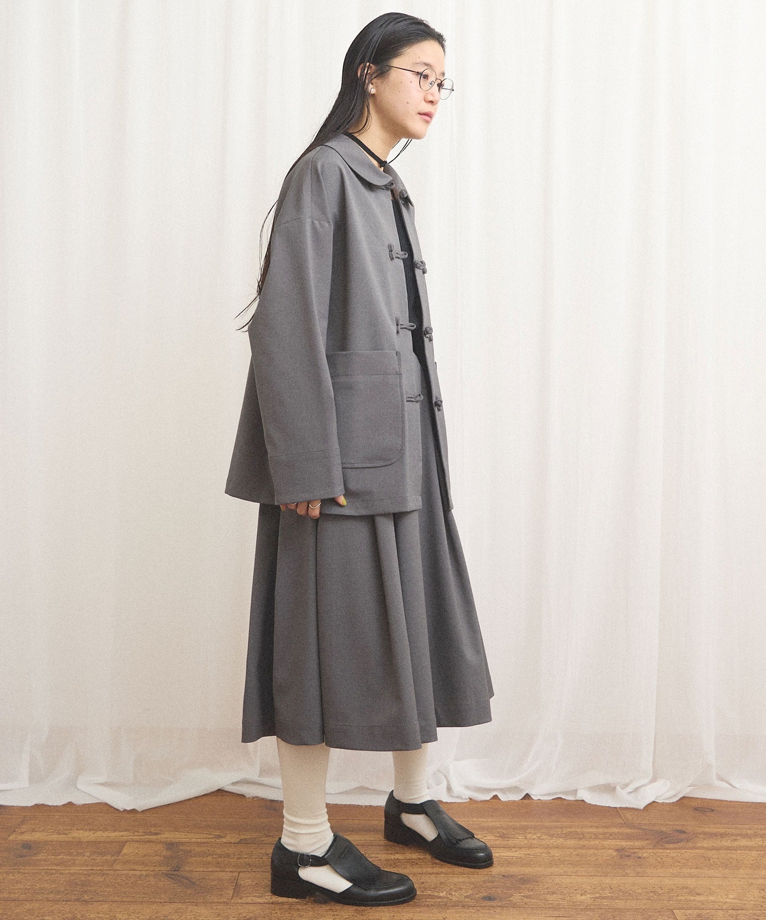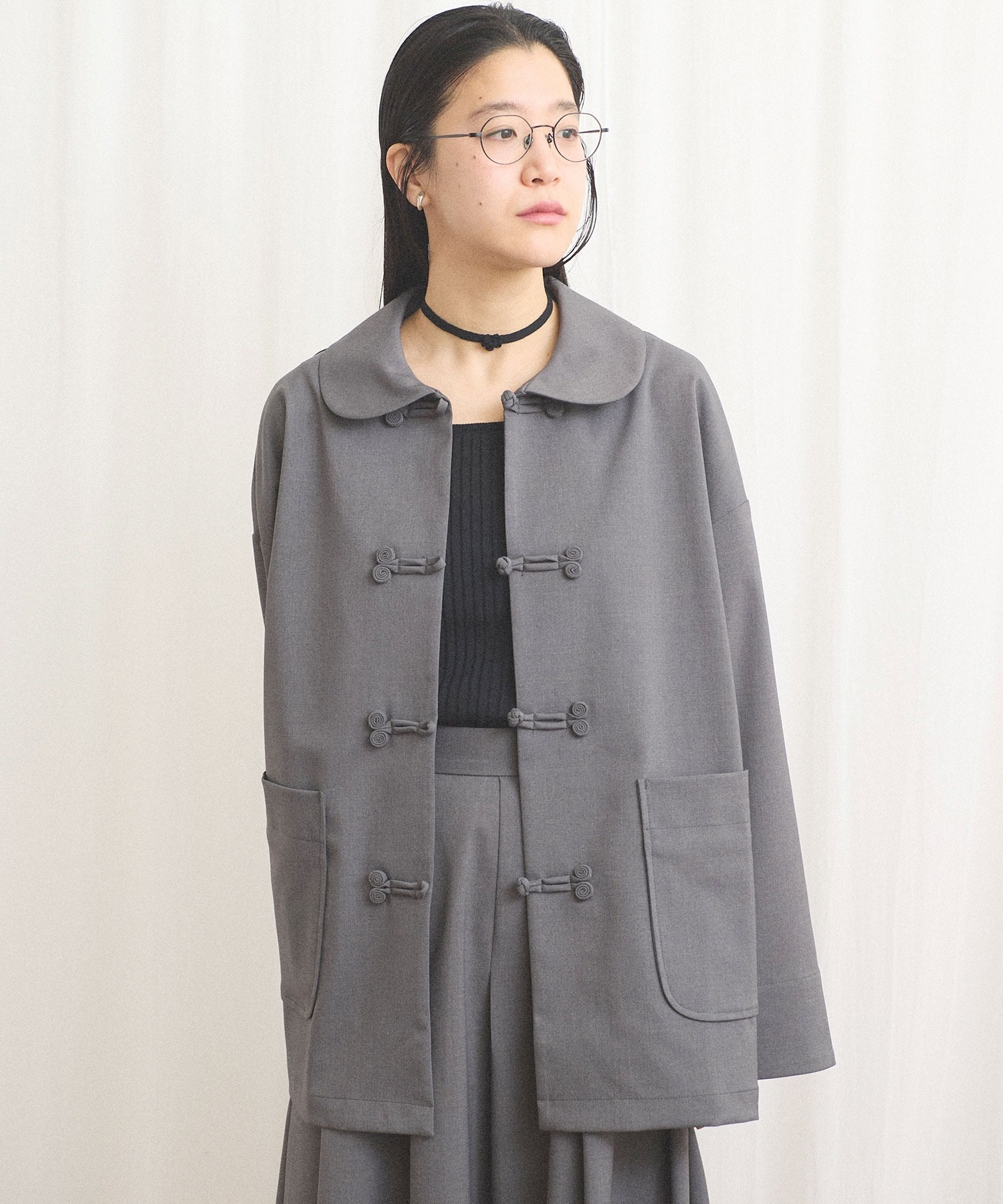 ゆったりしたサイズ、裏地なしの1枚仕立てで春秋などにさっと羽織りやすいアウターです。