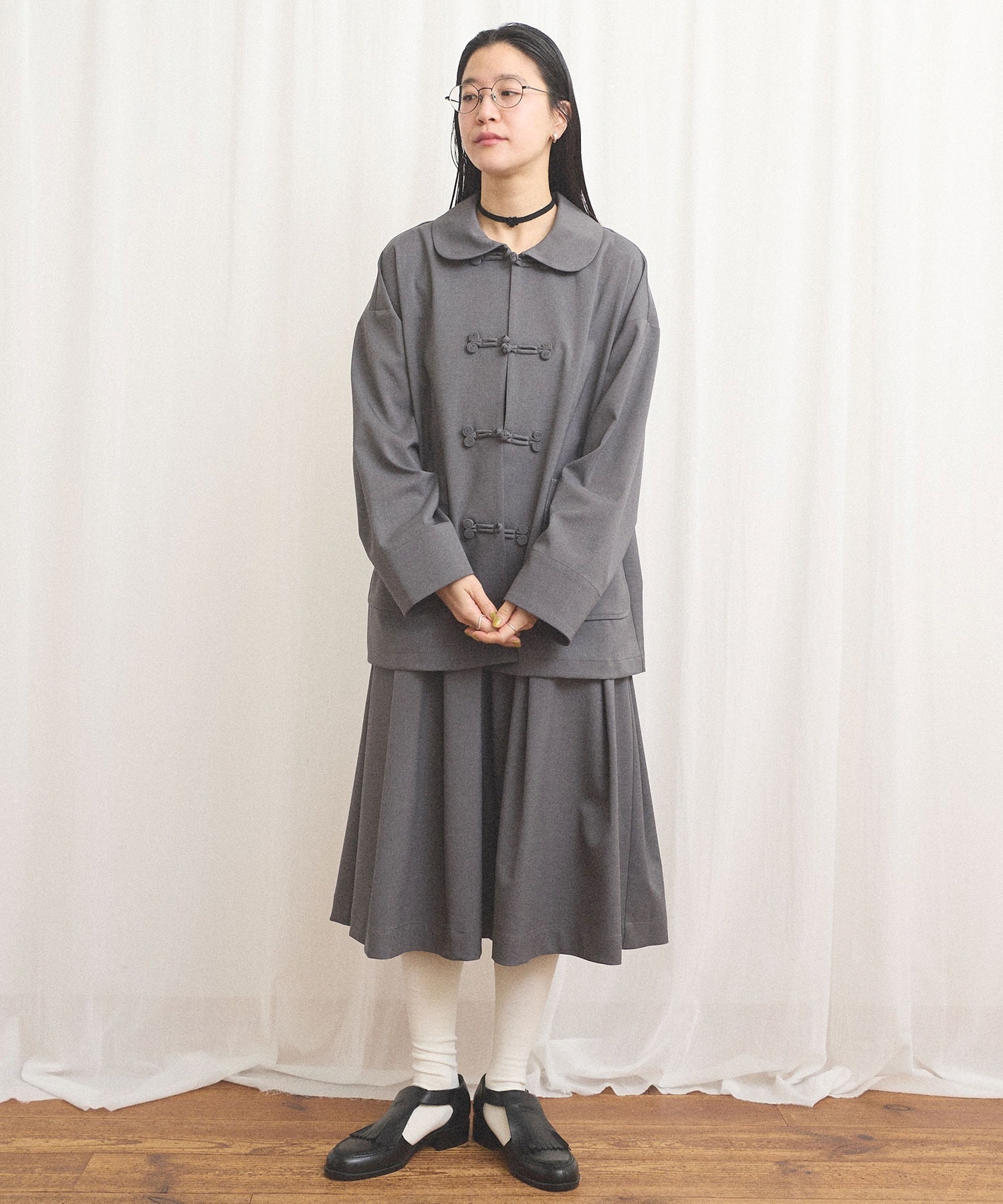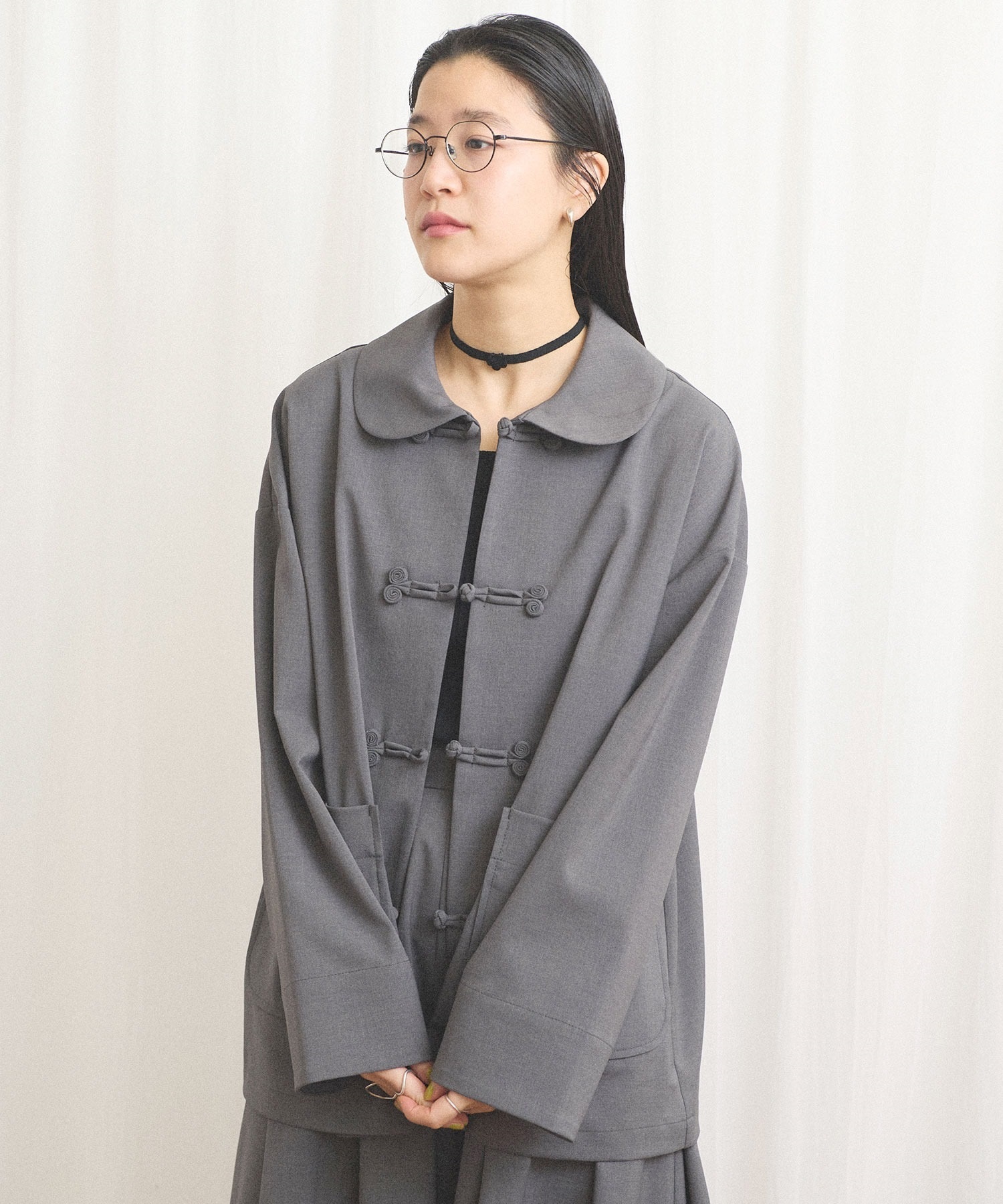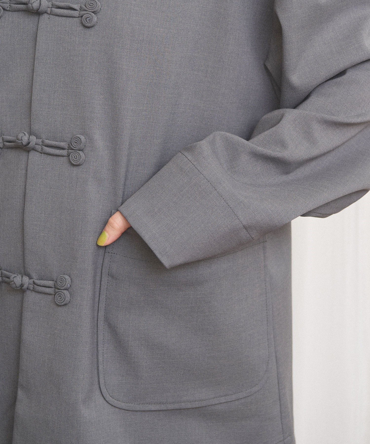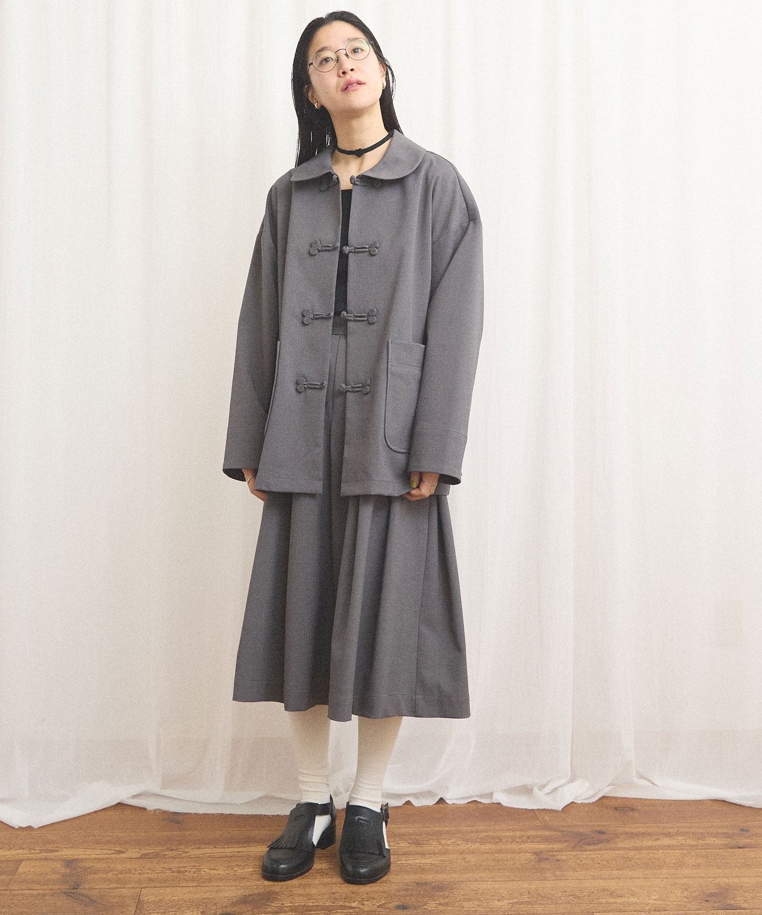ゆったりしたサイズ、裏地なしの1枚仕立てで春秋などにさっと羽織りやすいアウターです。
