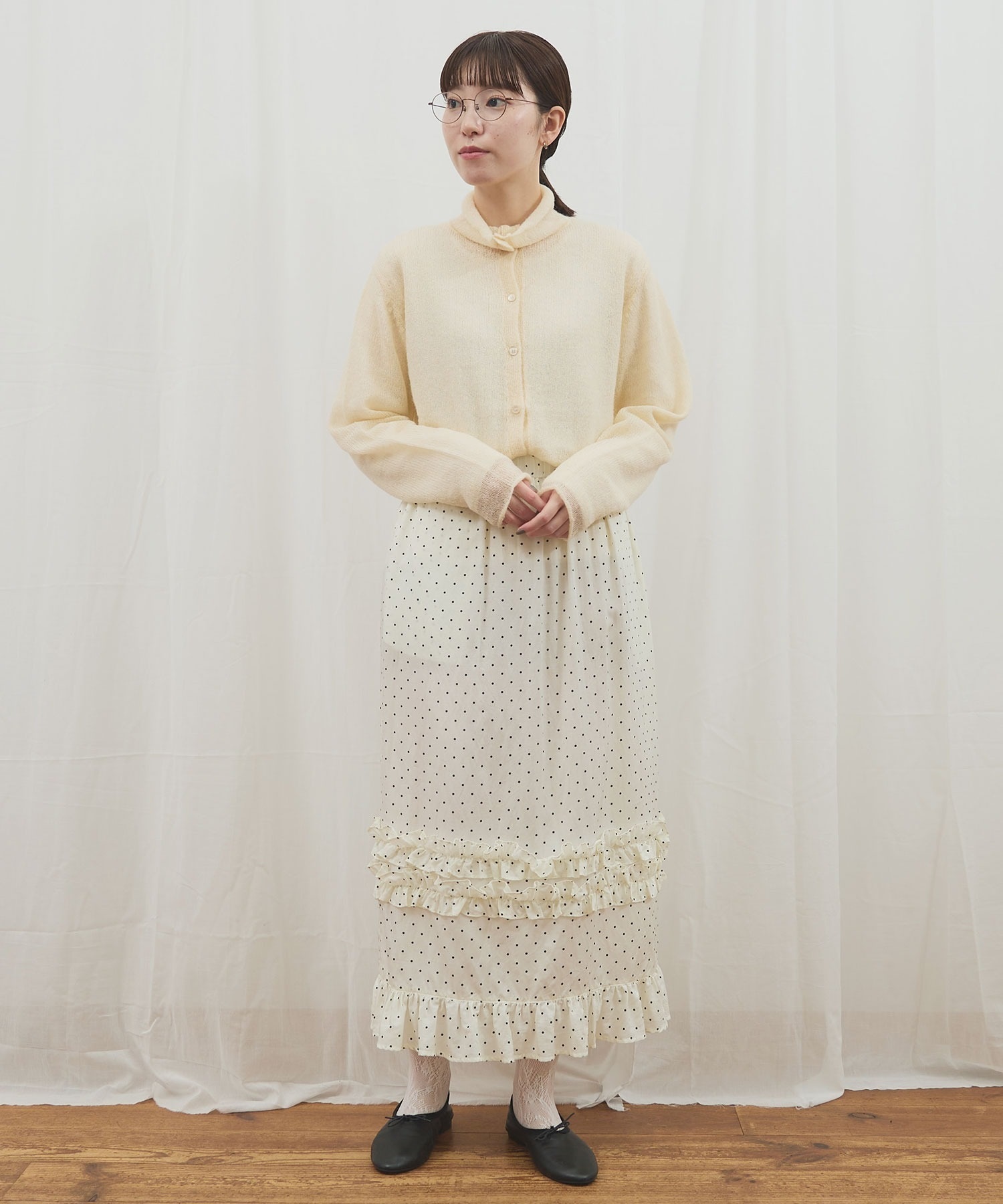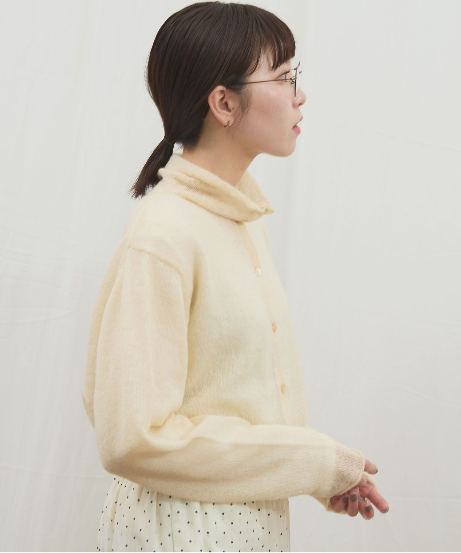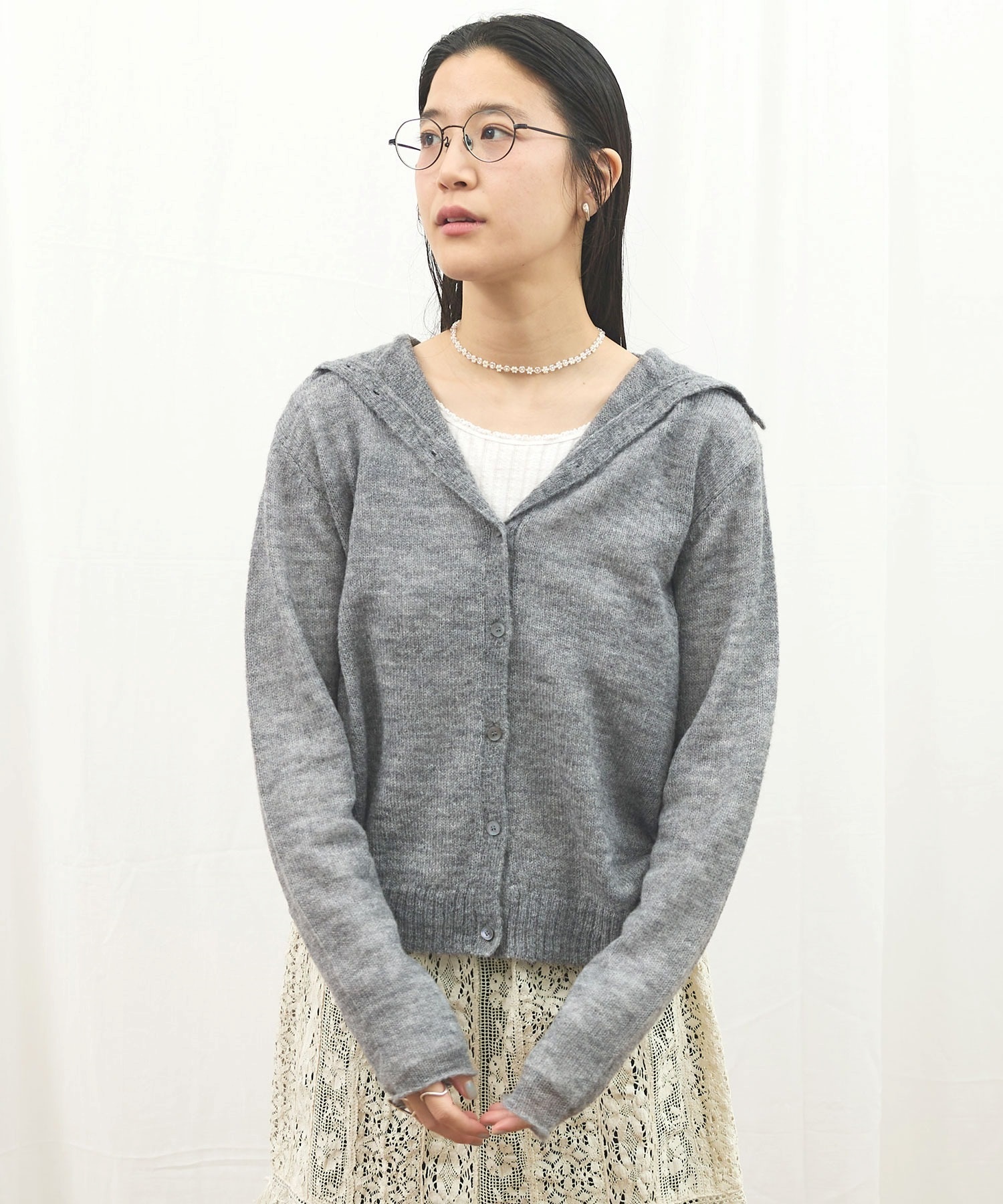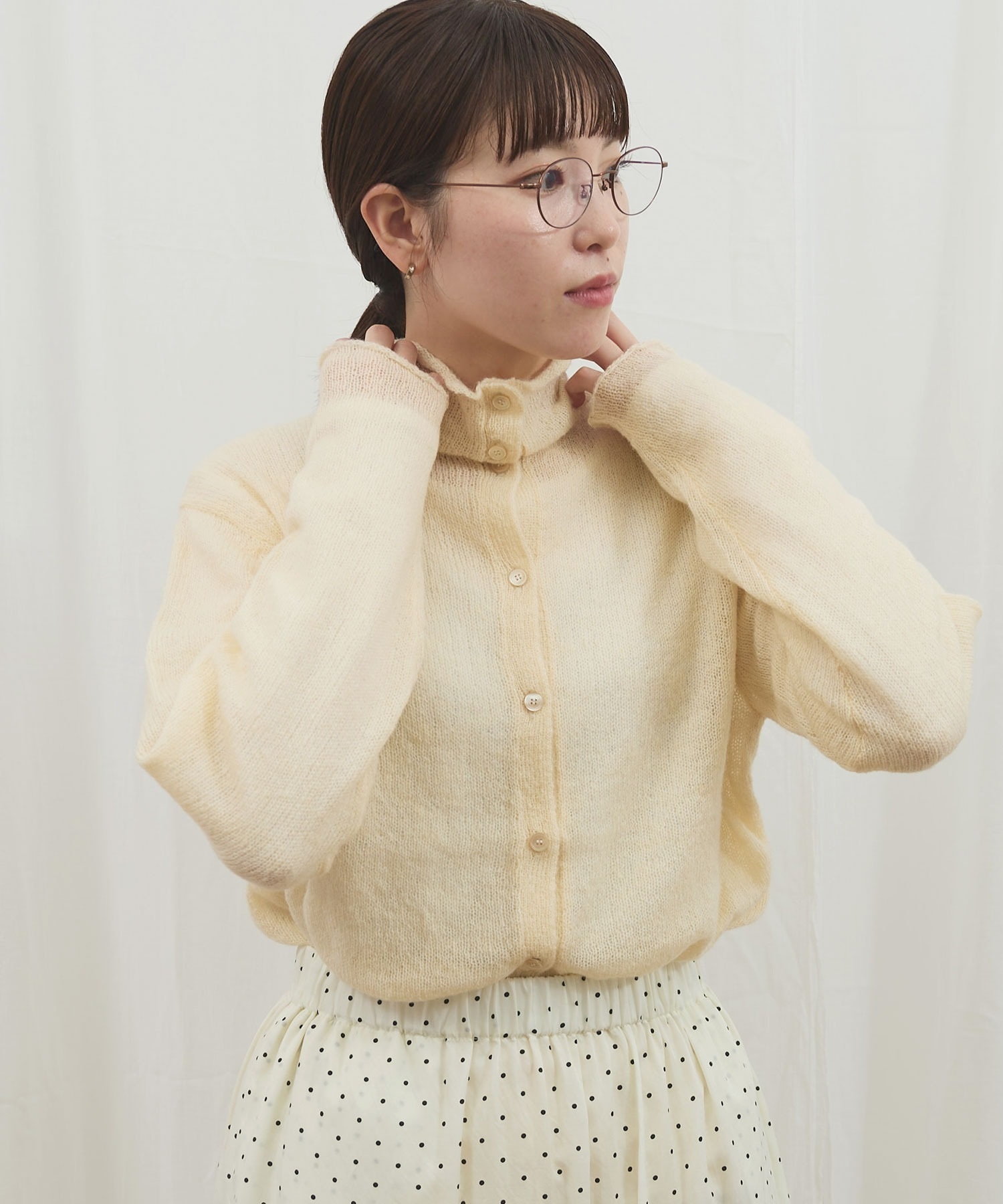 カーディガンはボタンの留め位置でさまざまな雰囲気で着ていただけます。