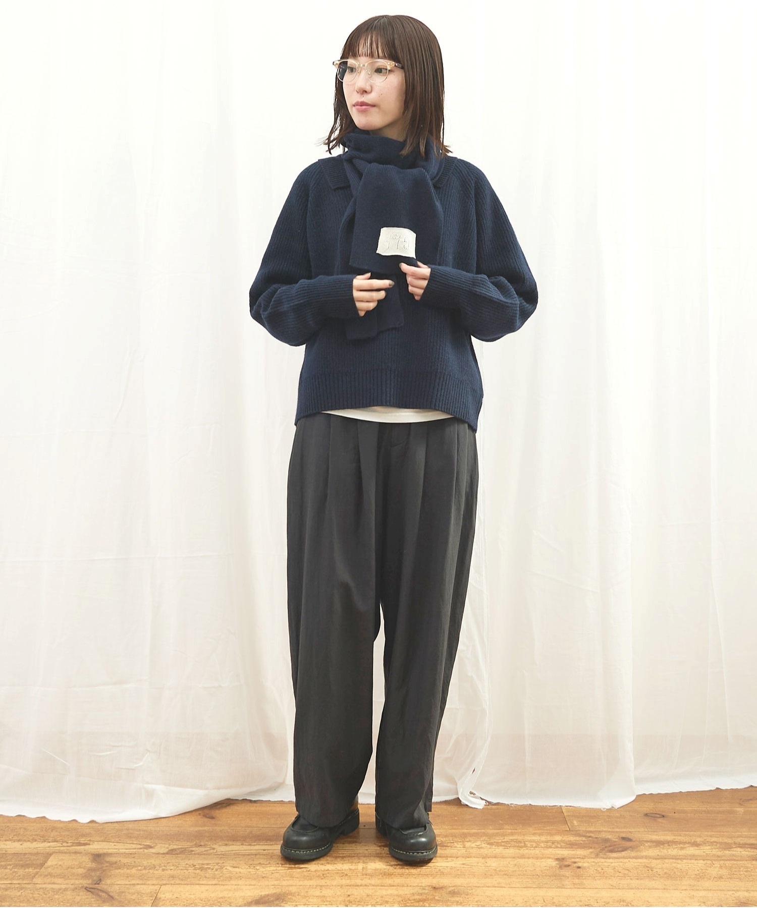 ・この製品は、素材風合いの性質上、着用の際毛羽の細かなもつれが絡み合いピリング(毛玉)が発生する場合があります。