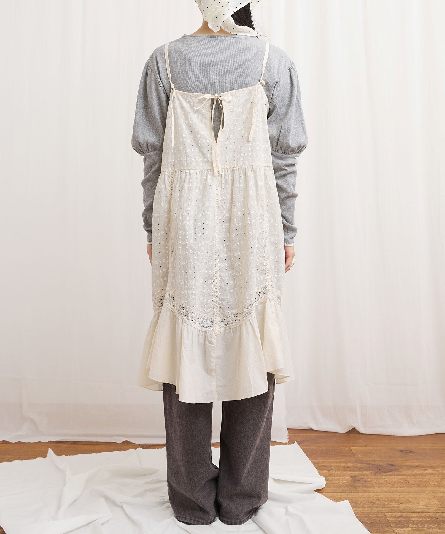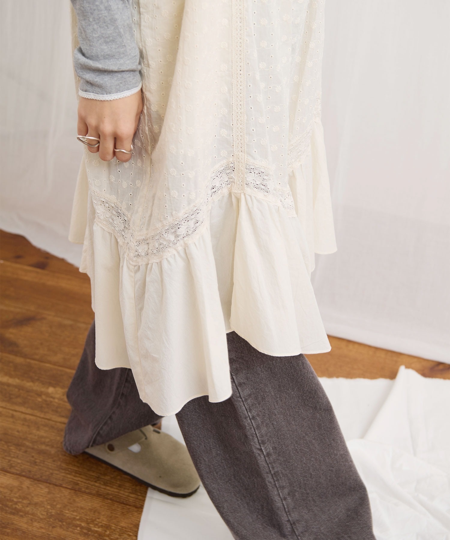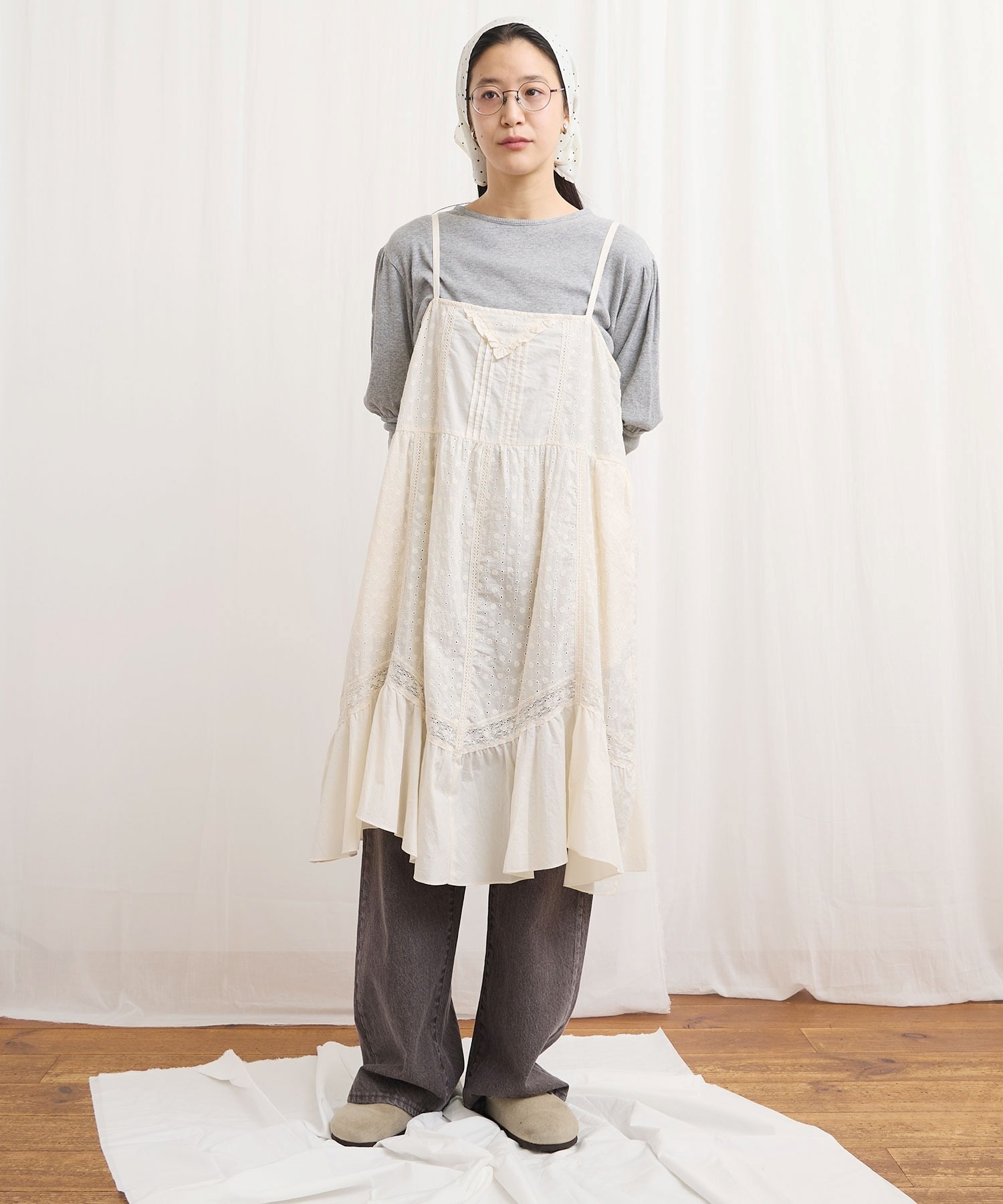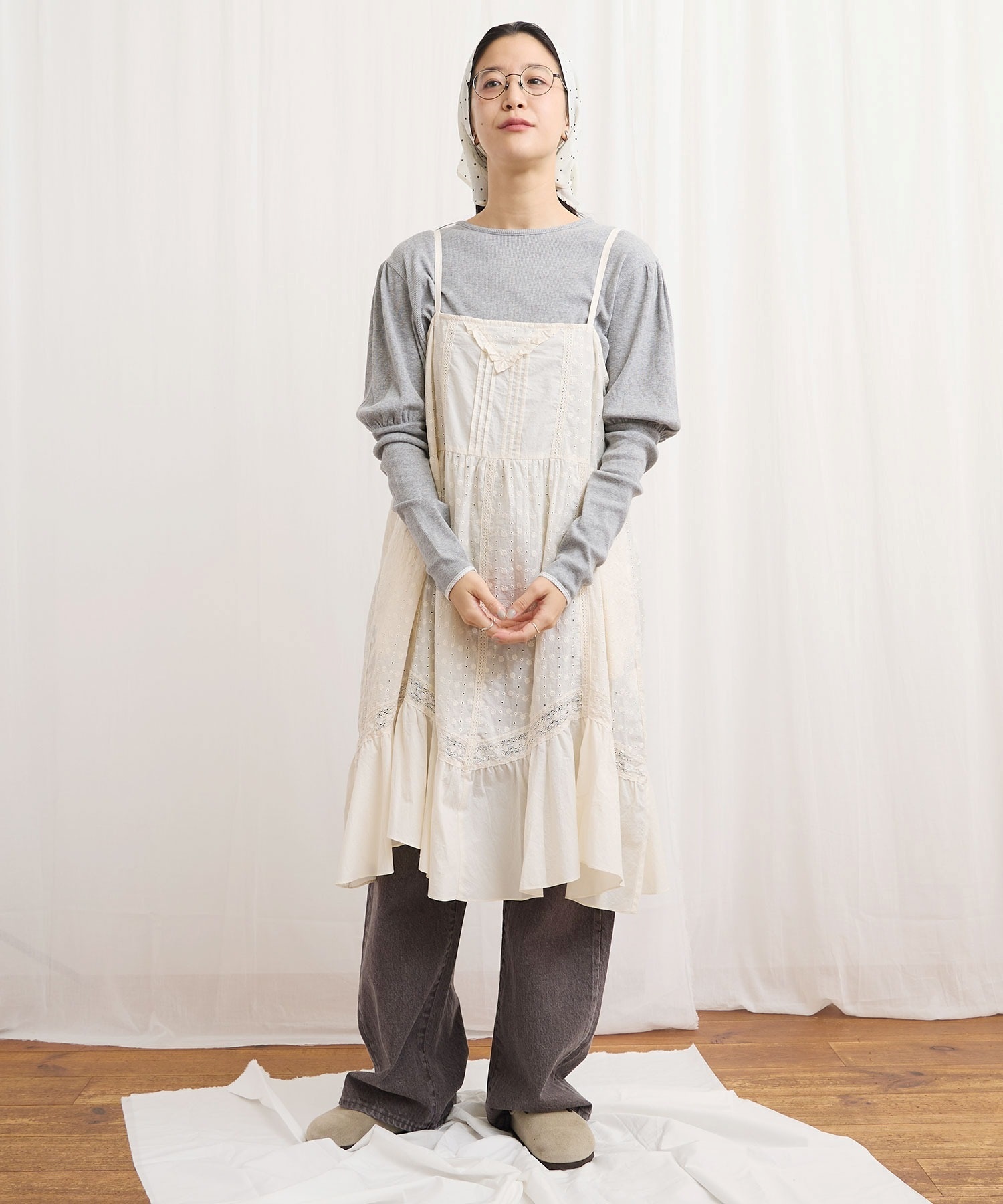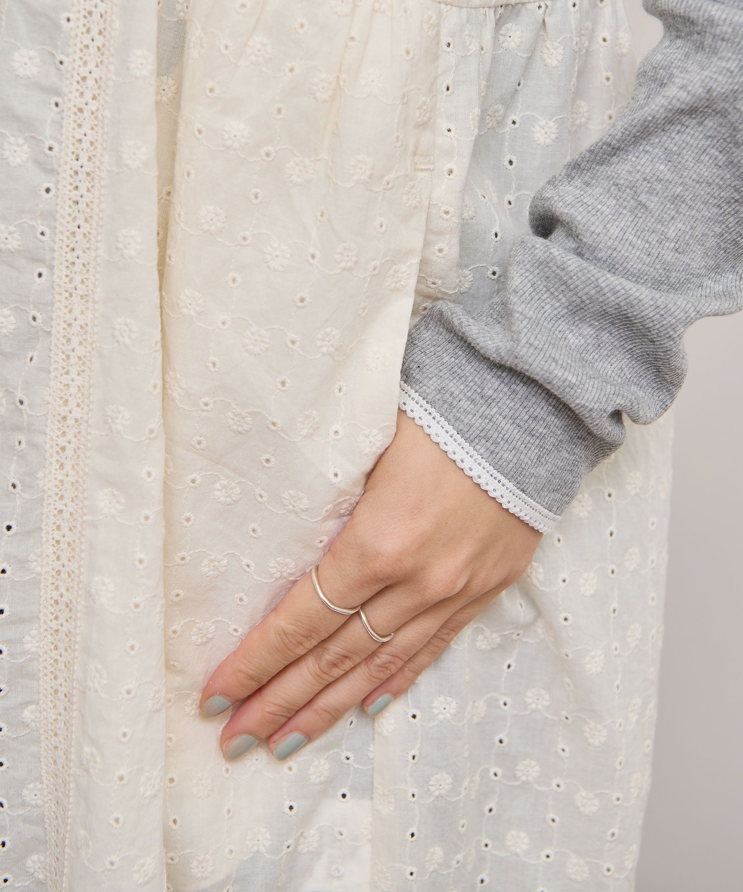 たくさんのレースと切り替えを入れた贅沢なワンピースです。