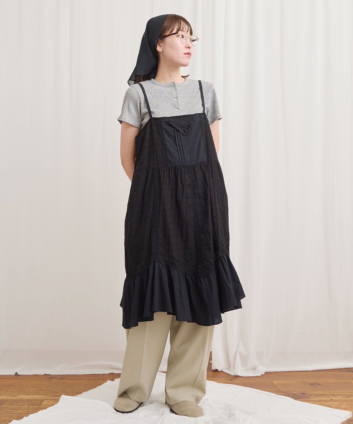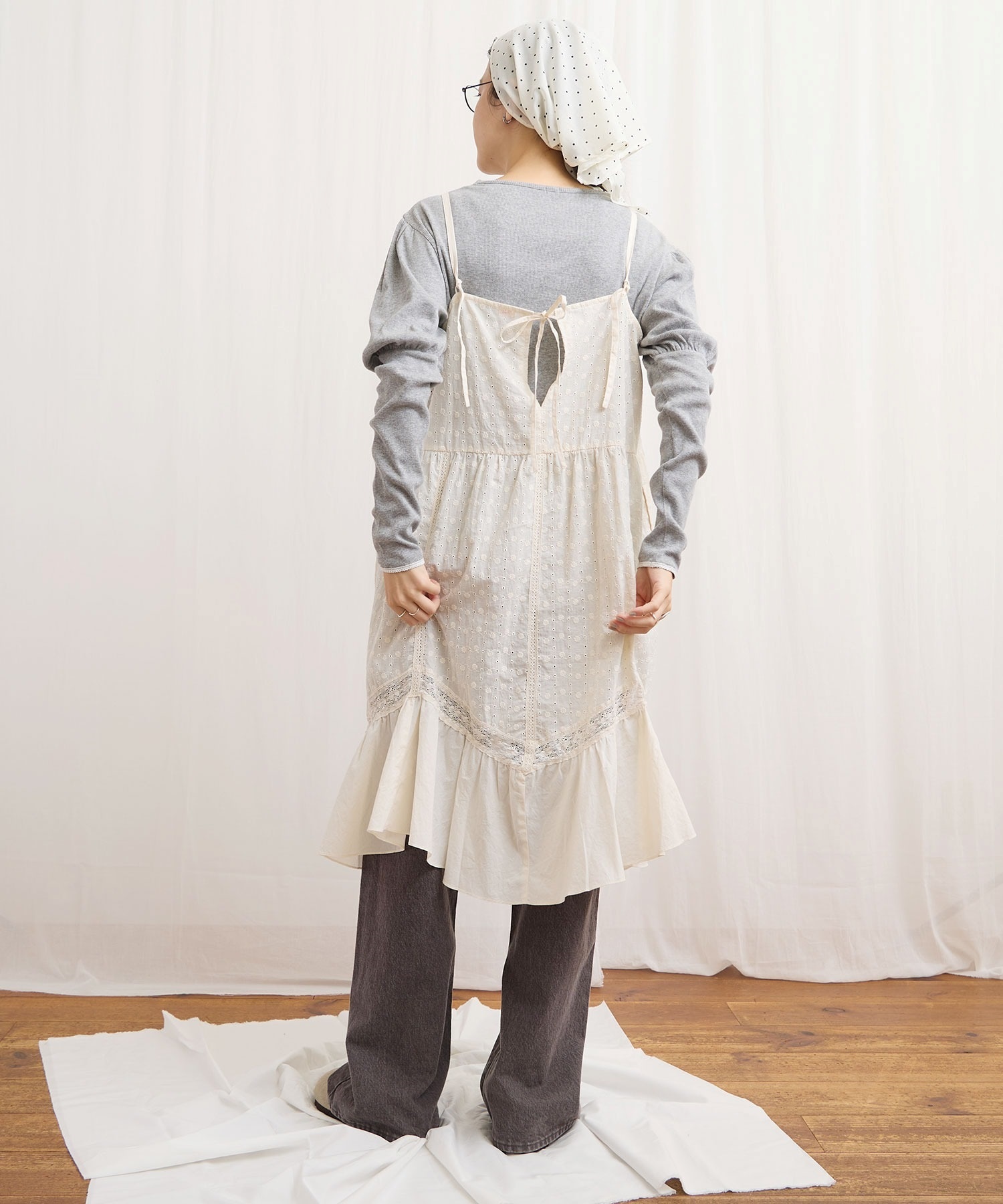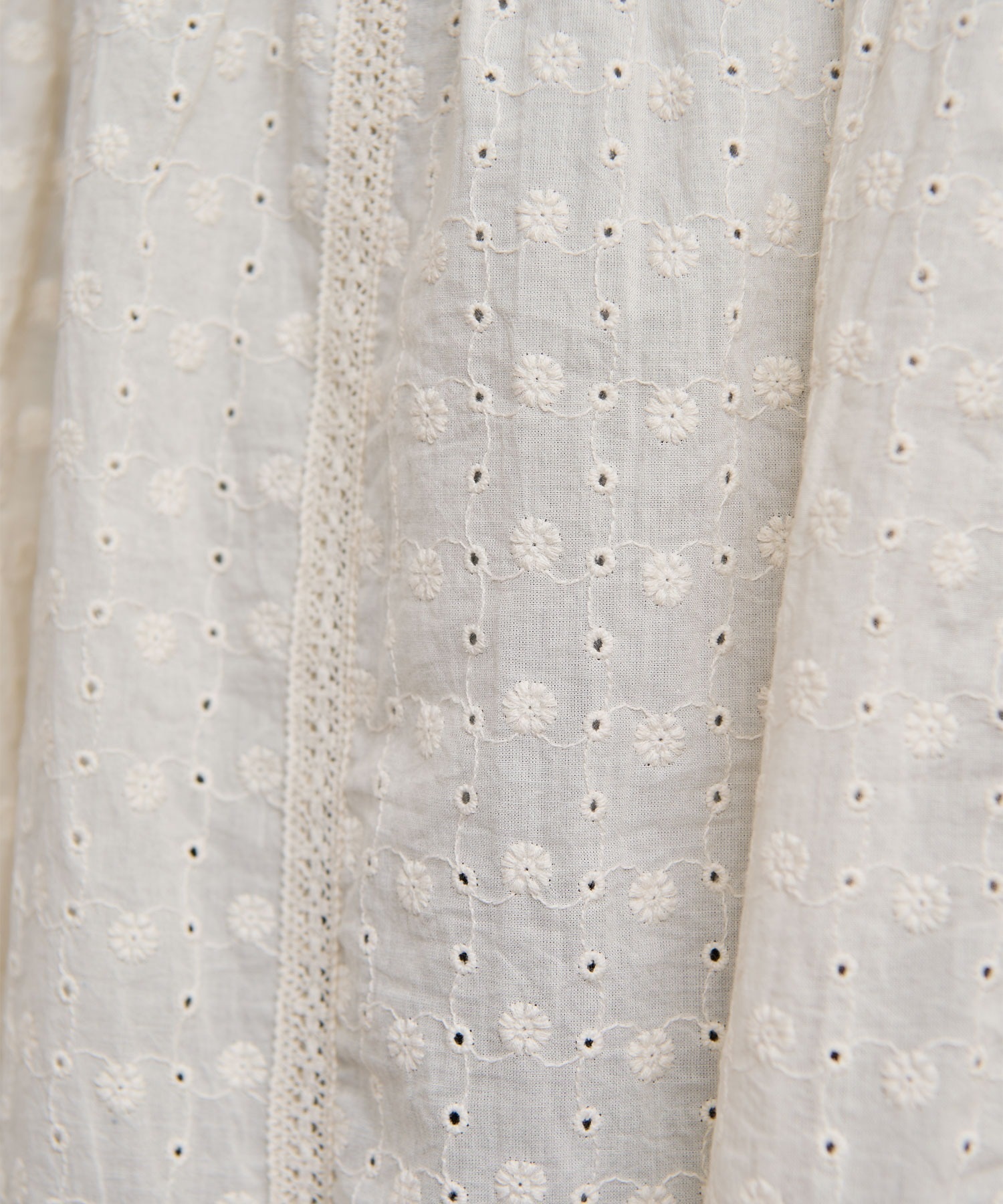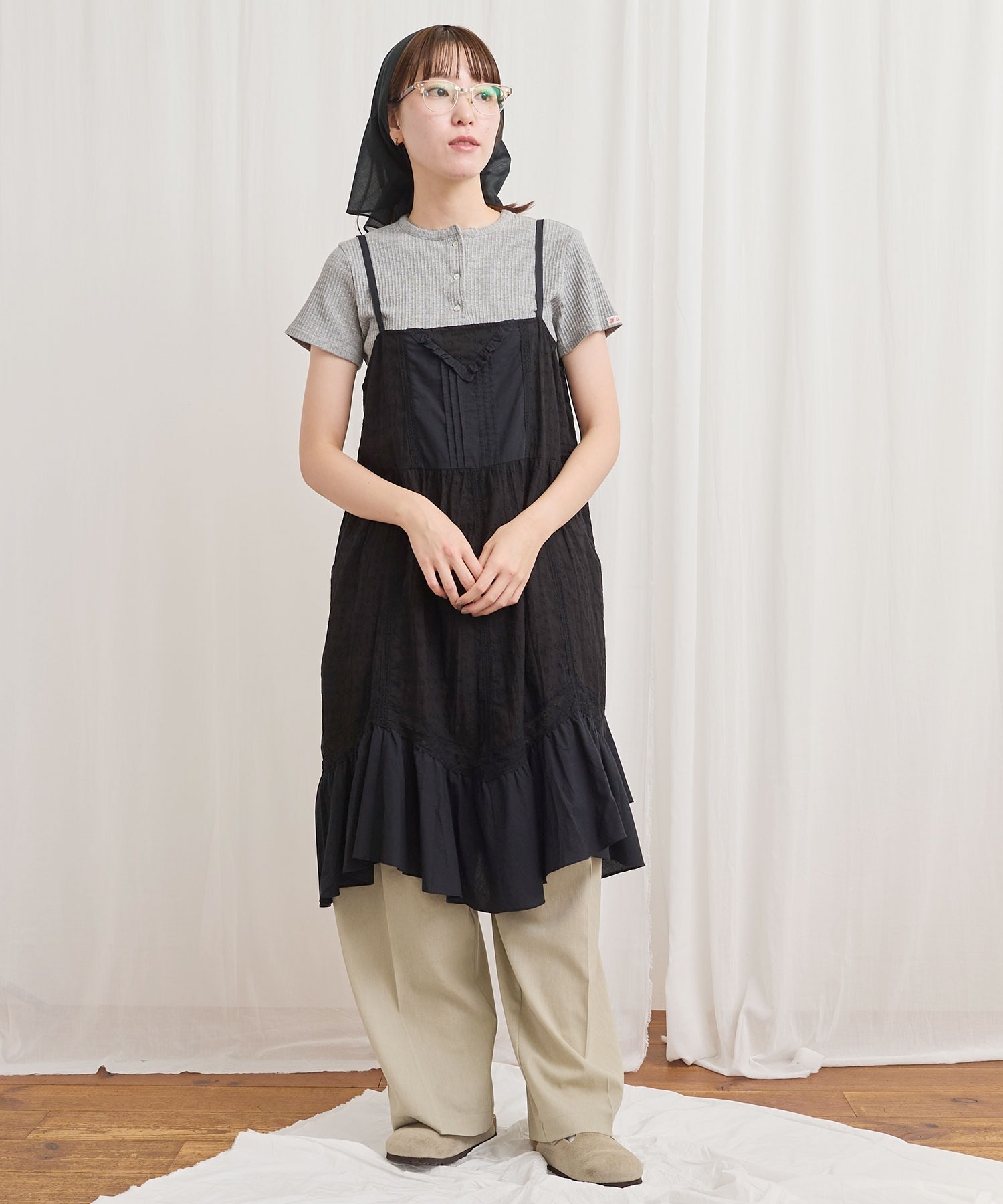 たくさんのレースと切り替えを入れた贅沢なワンピースです。