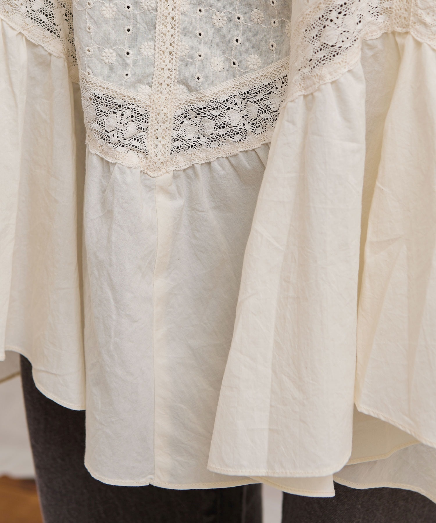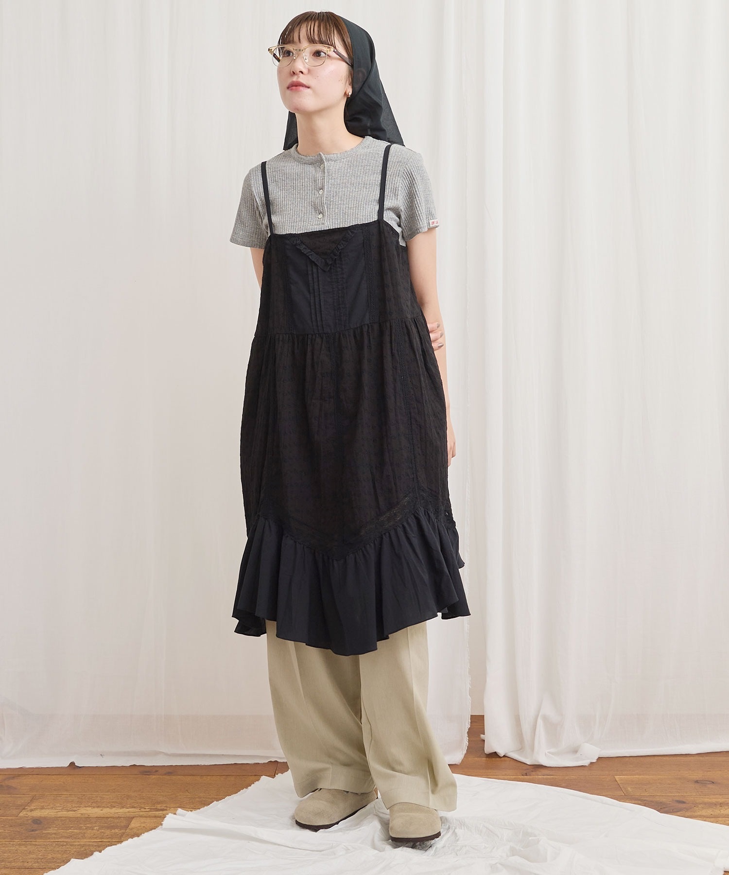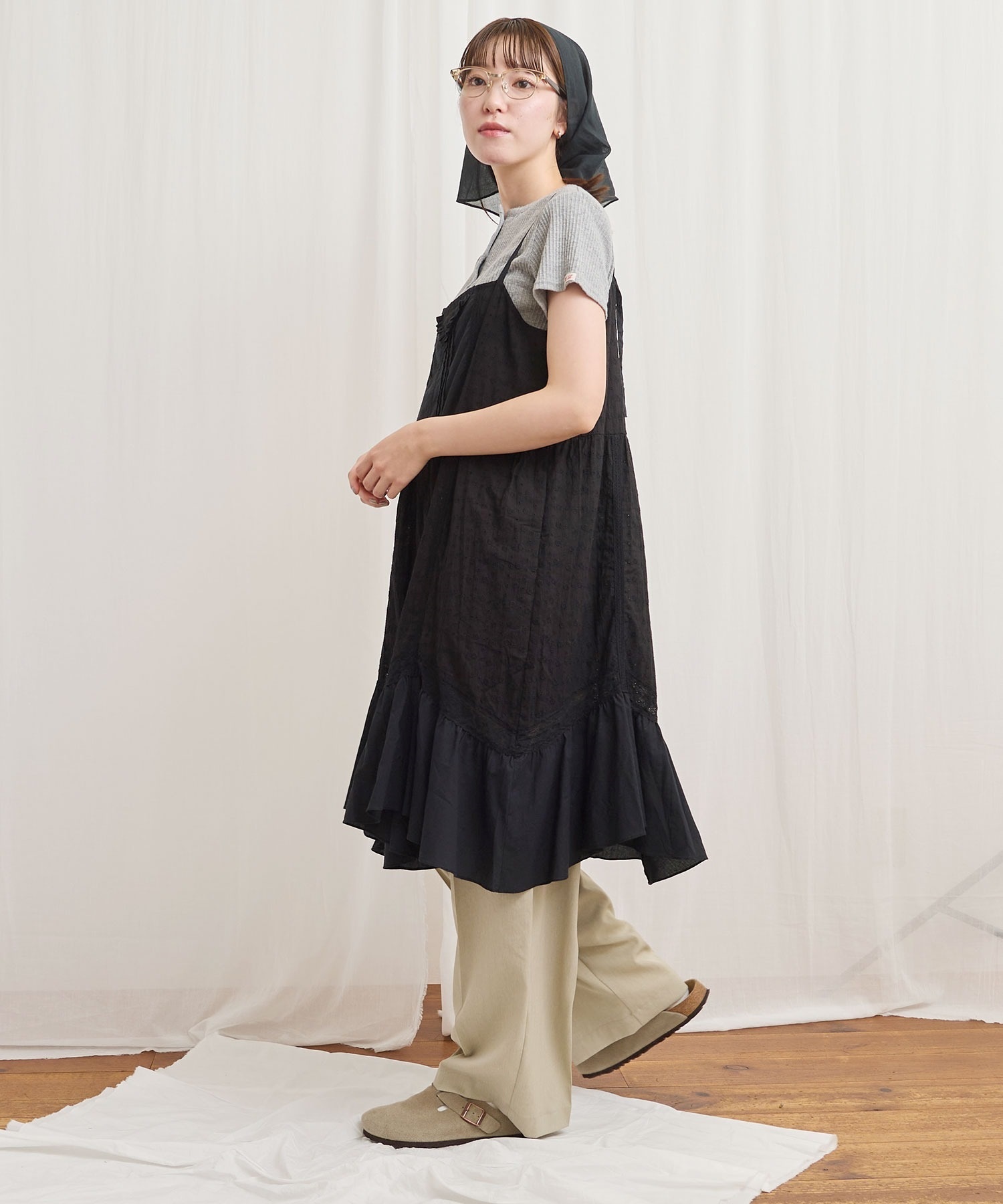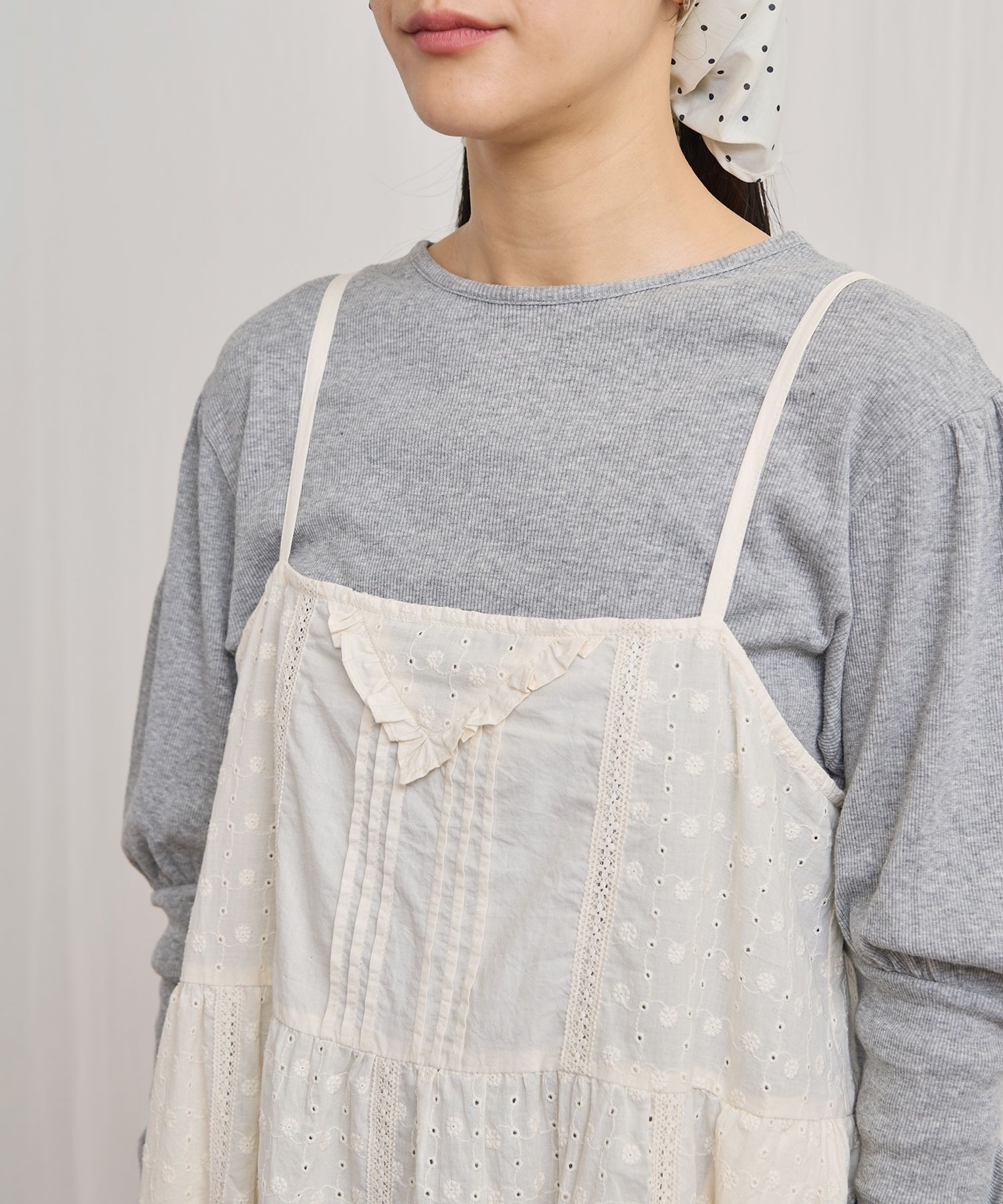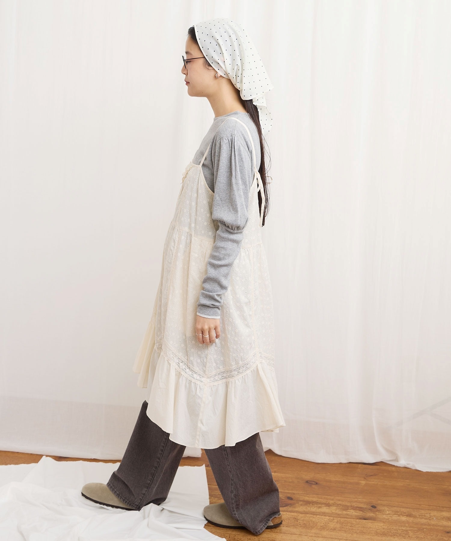 たくさんのレースと切り替えを入れた贅沢なワンピースです。
