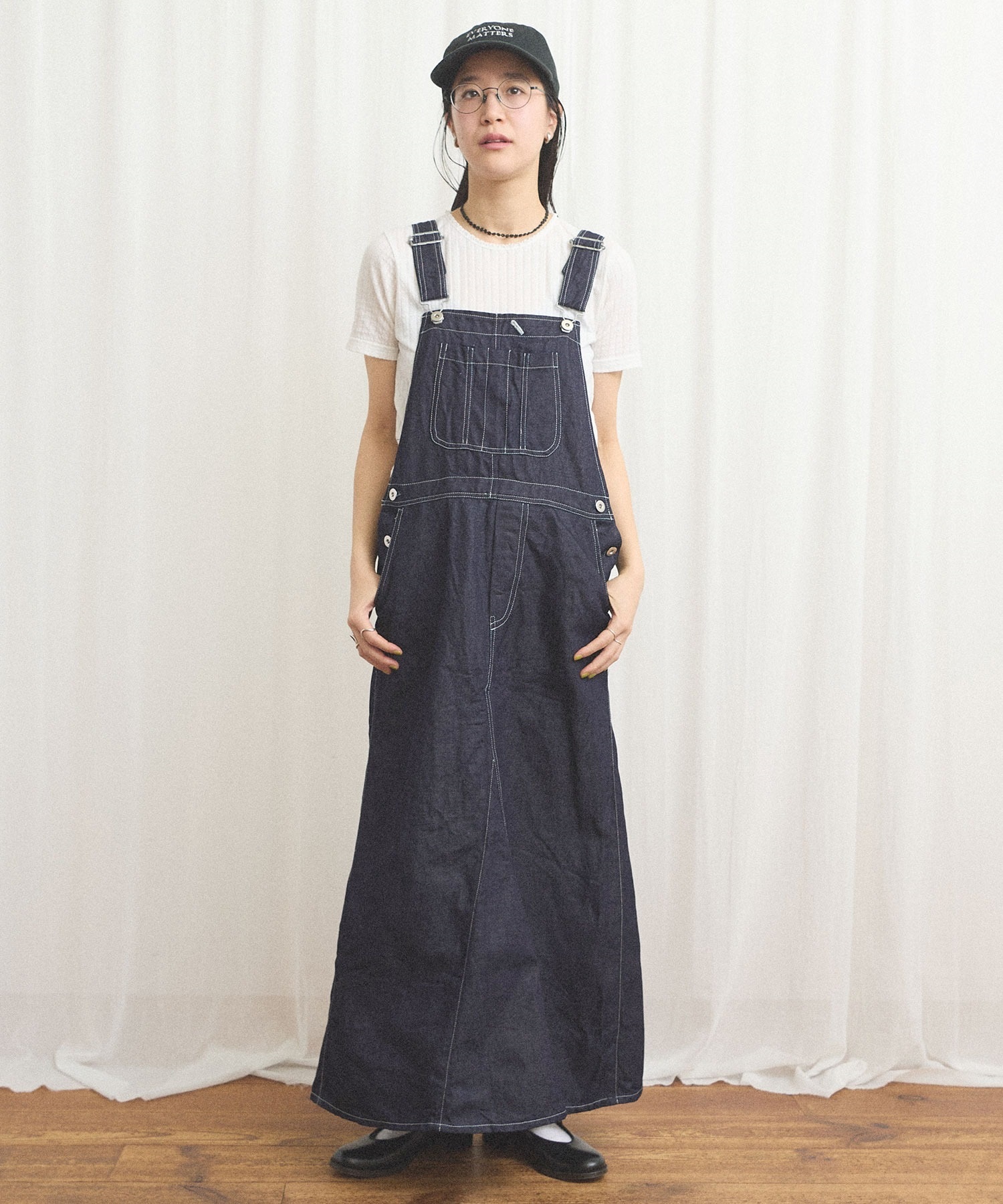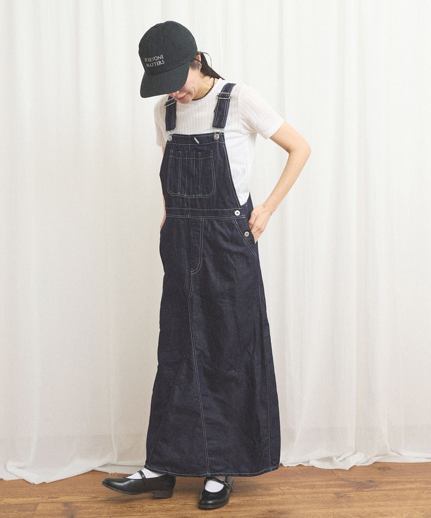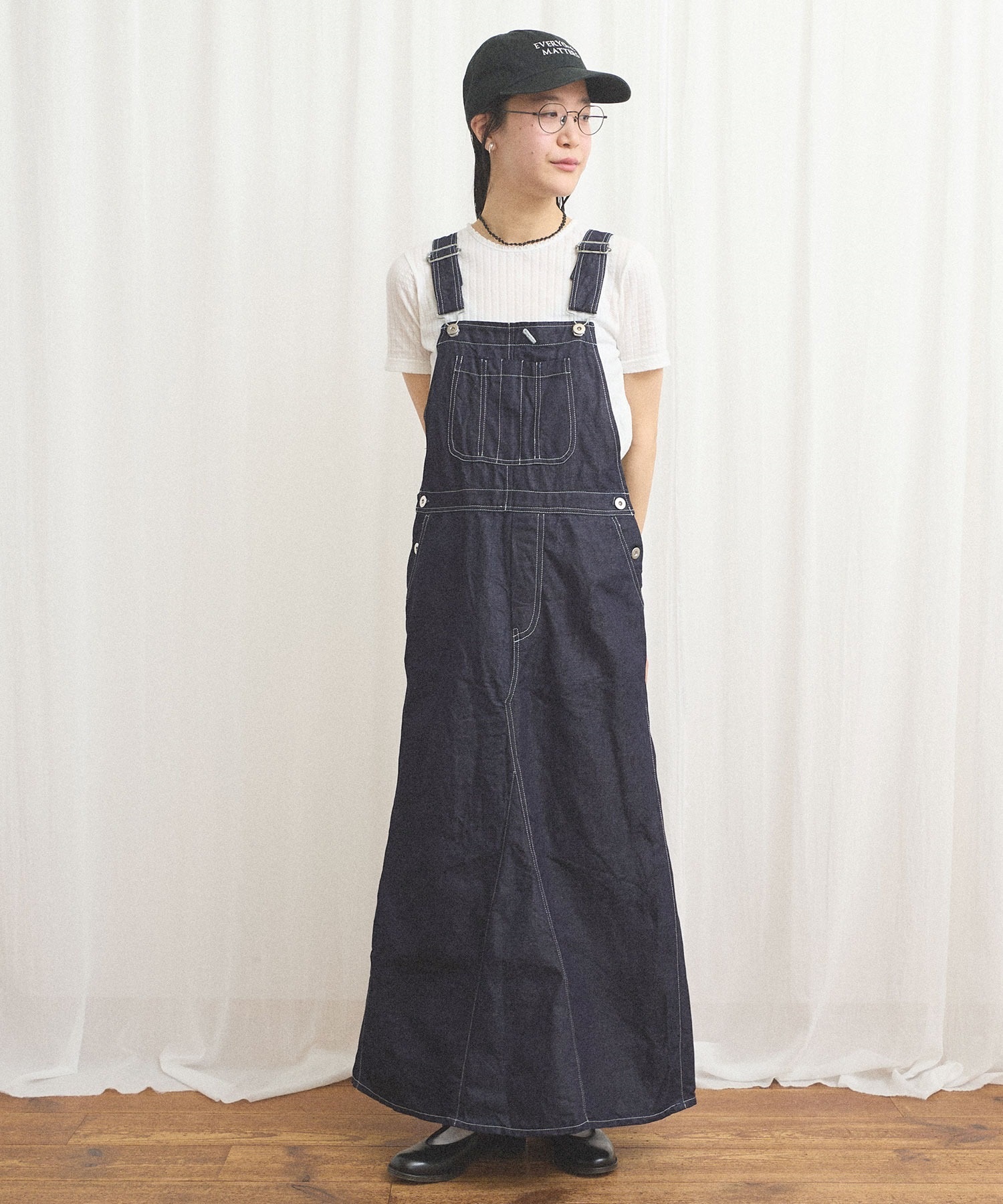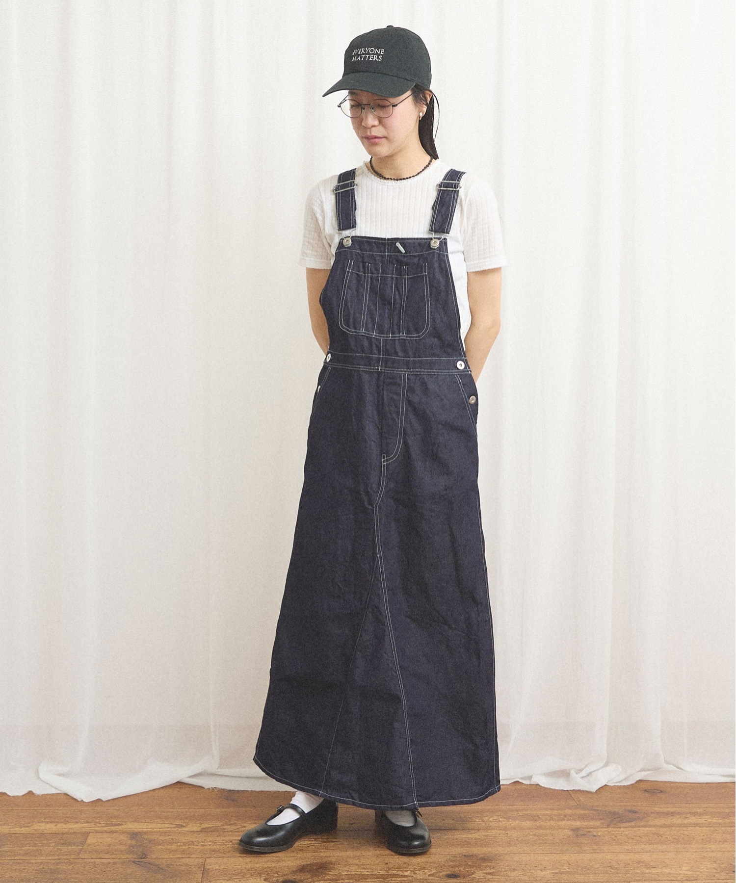 ばさりとした質感を感じられるコットンリネンデニムを使ったジャンパースカート。