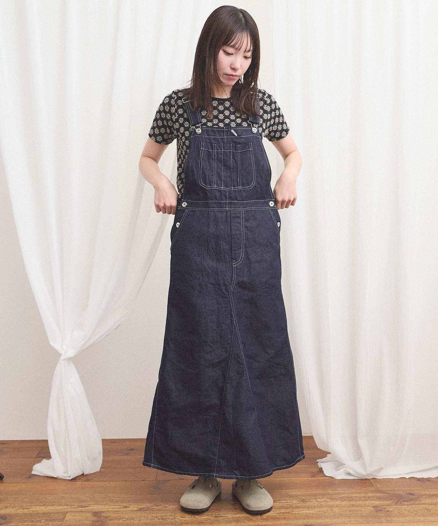 オーバーオールをリメイクしたようなデザインにしています。