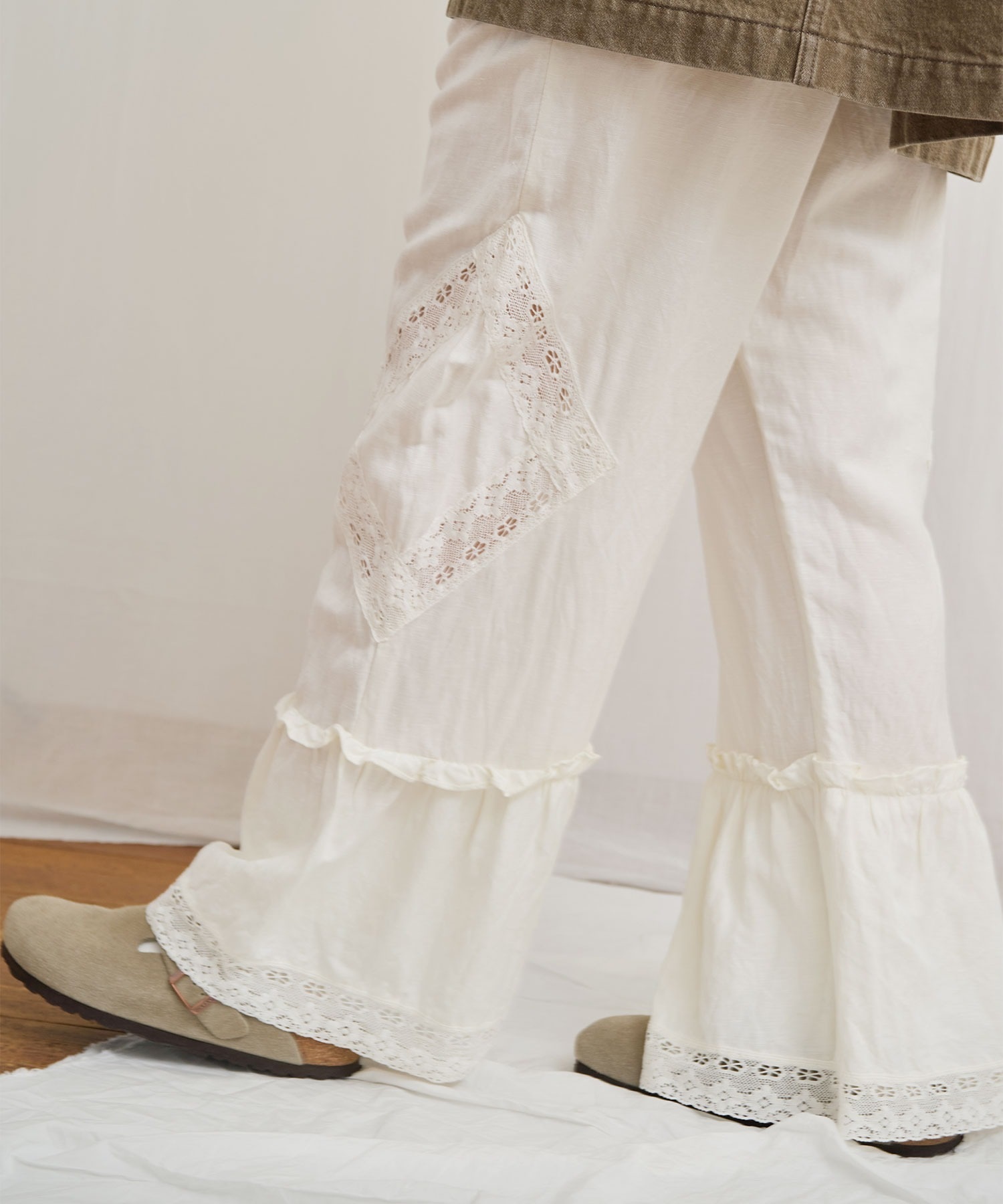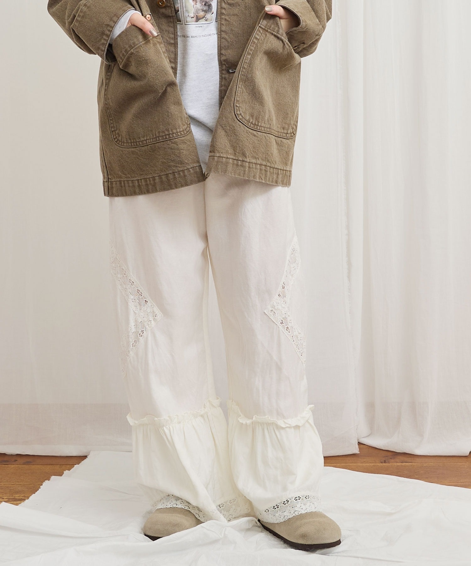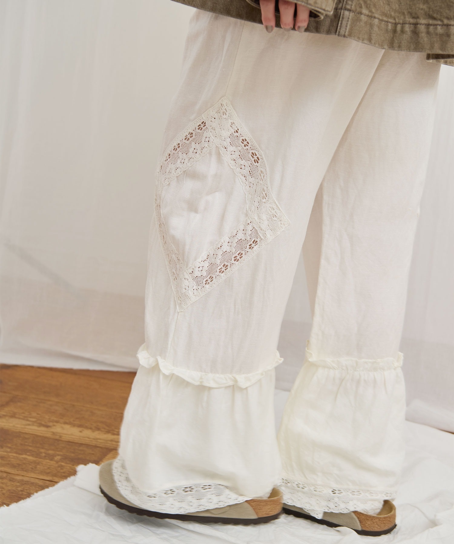 どこか懐かしさを感じるくたっとしたリネンとレースの組み合わせ。