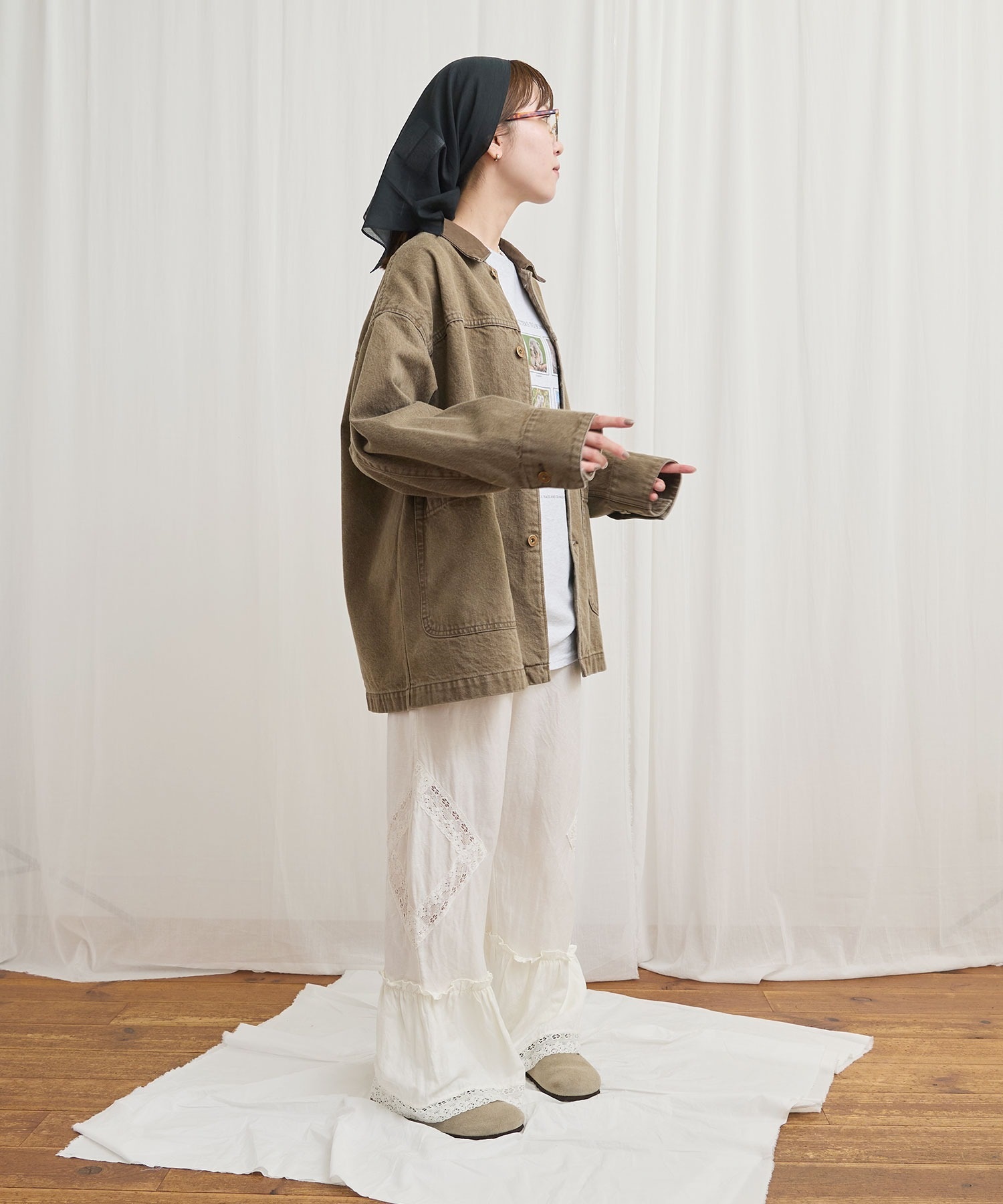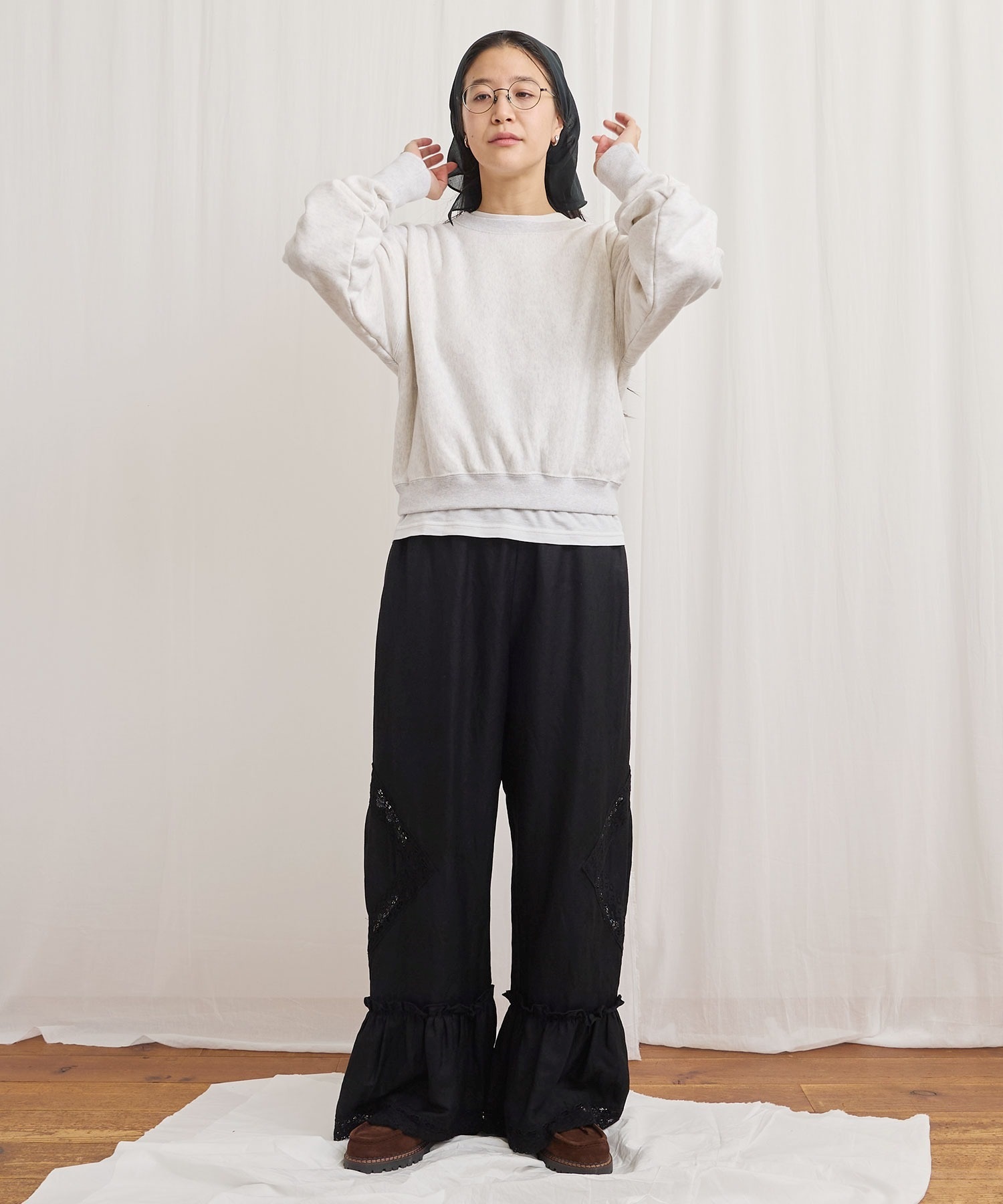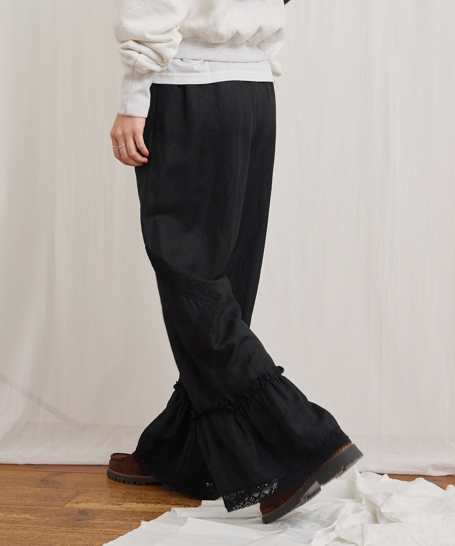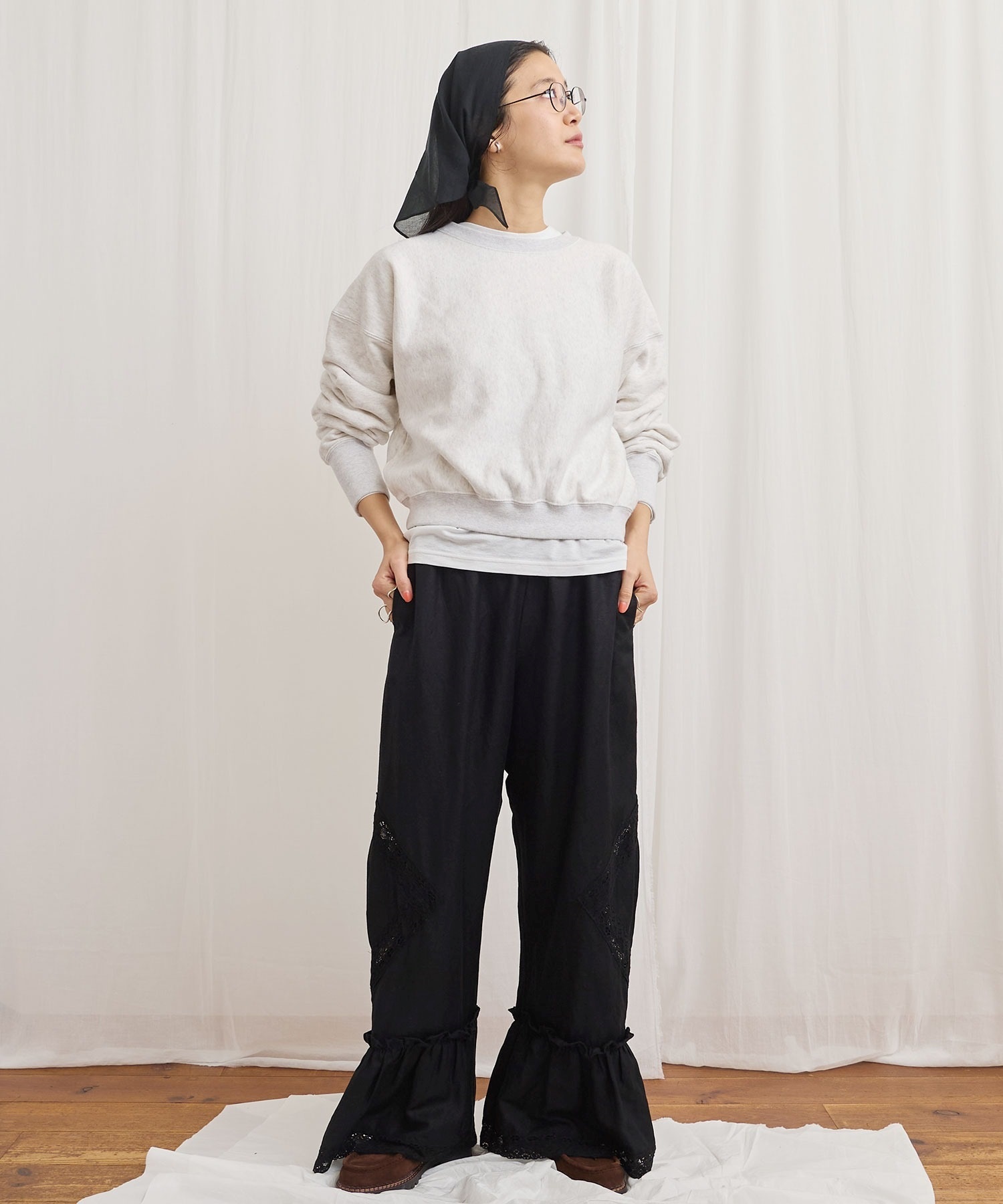 どこか懐かしさを感じるくたっとしたリネンとレースの組み合わせ。