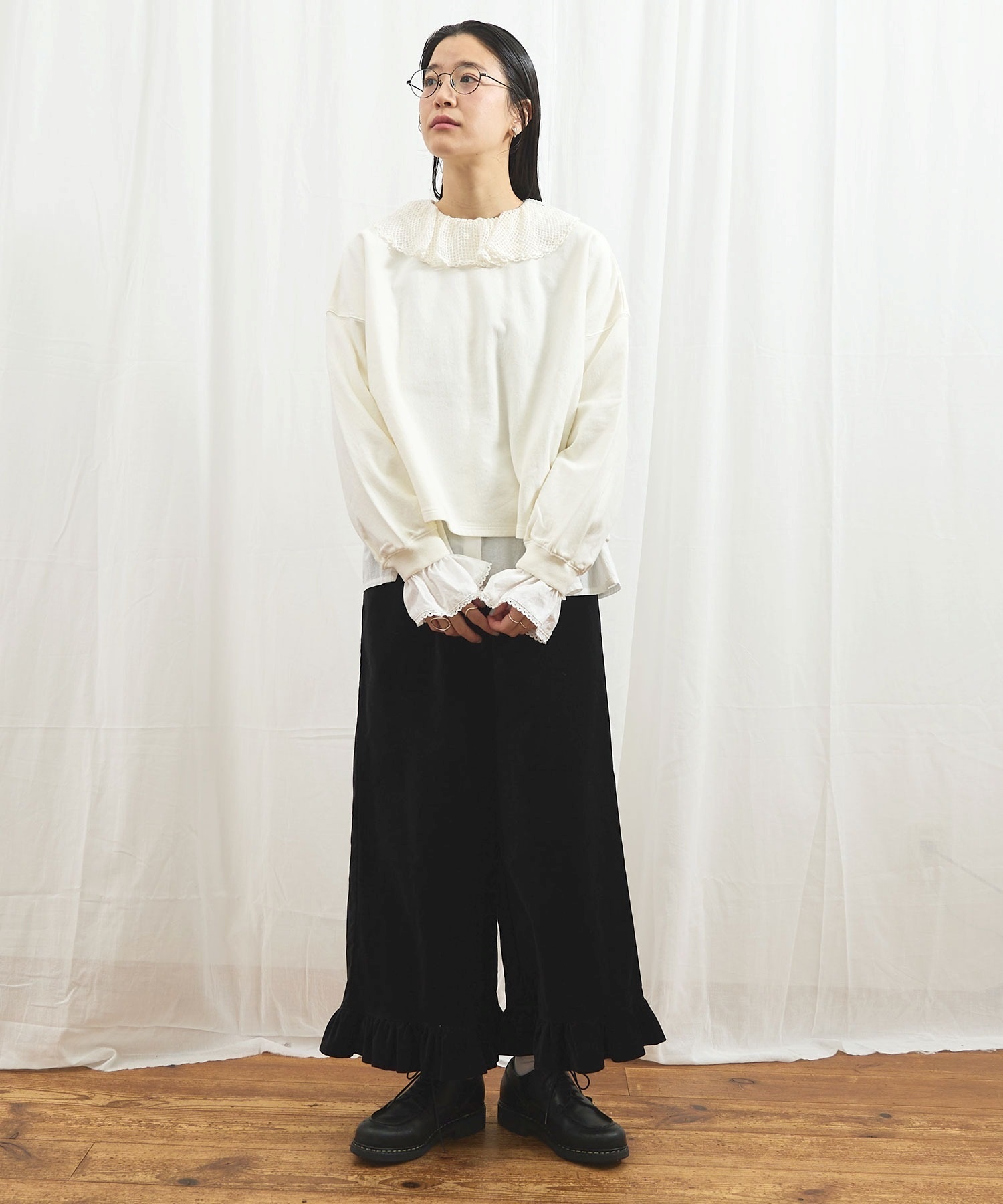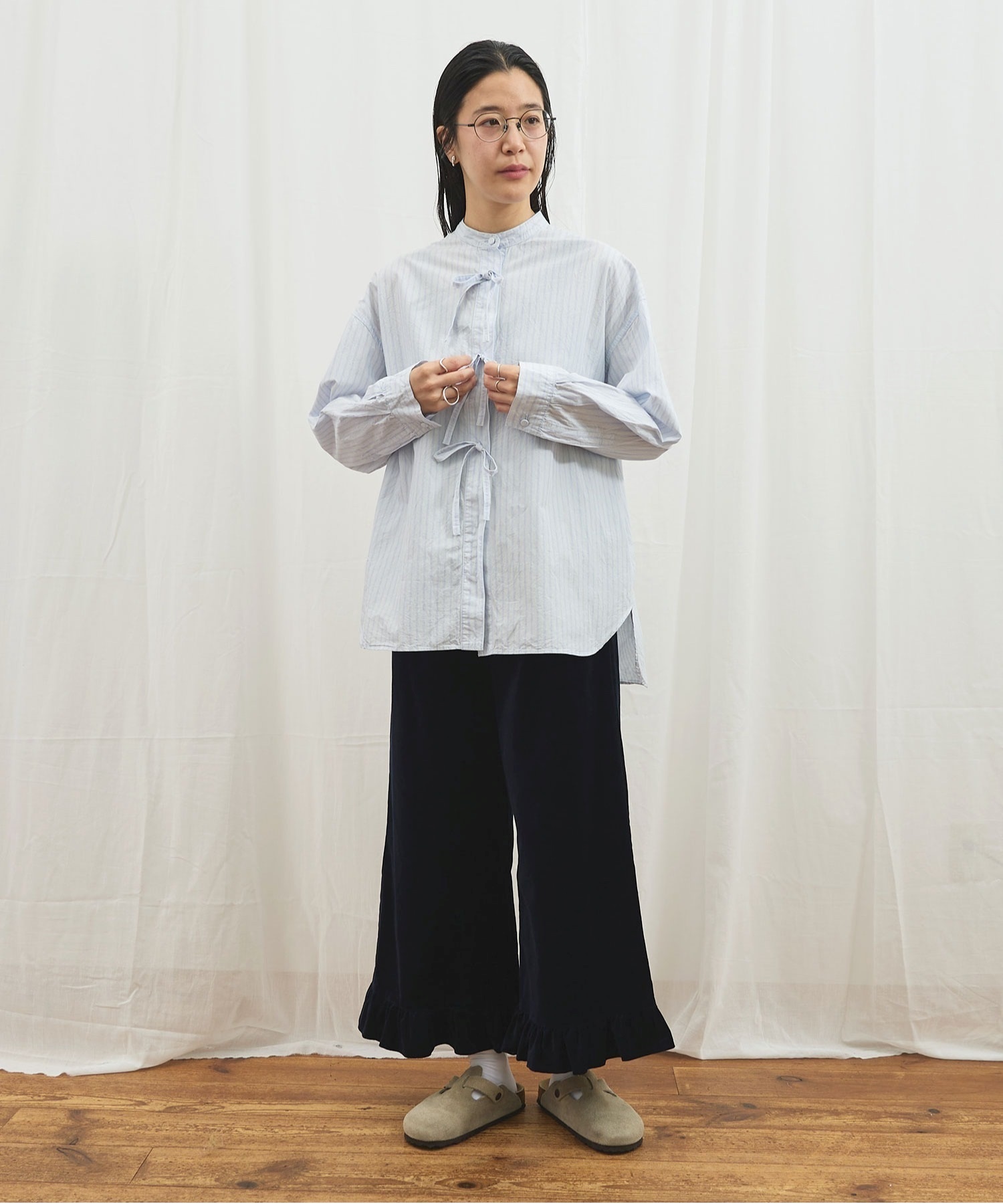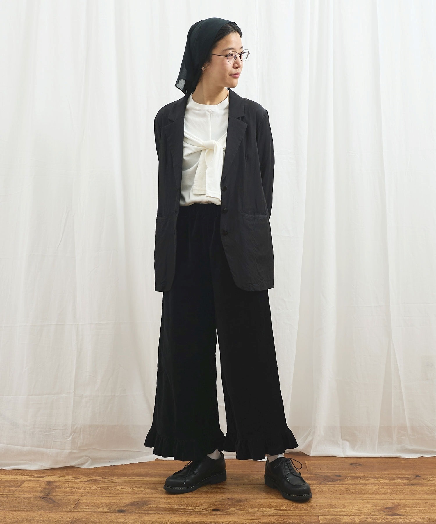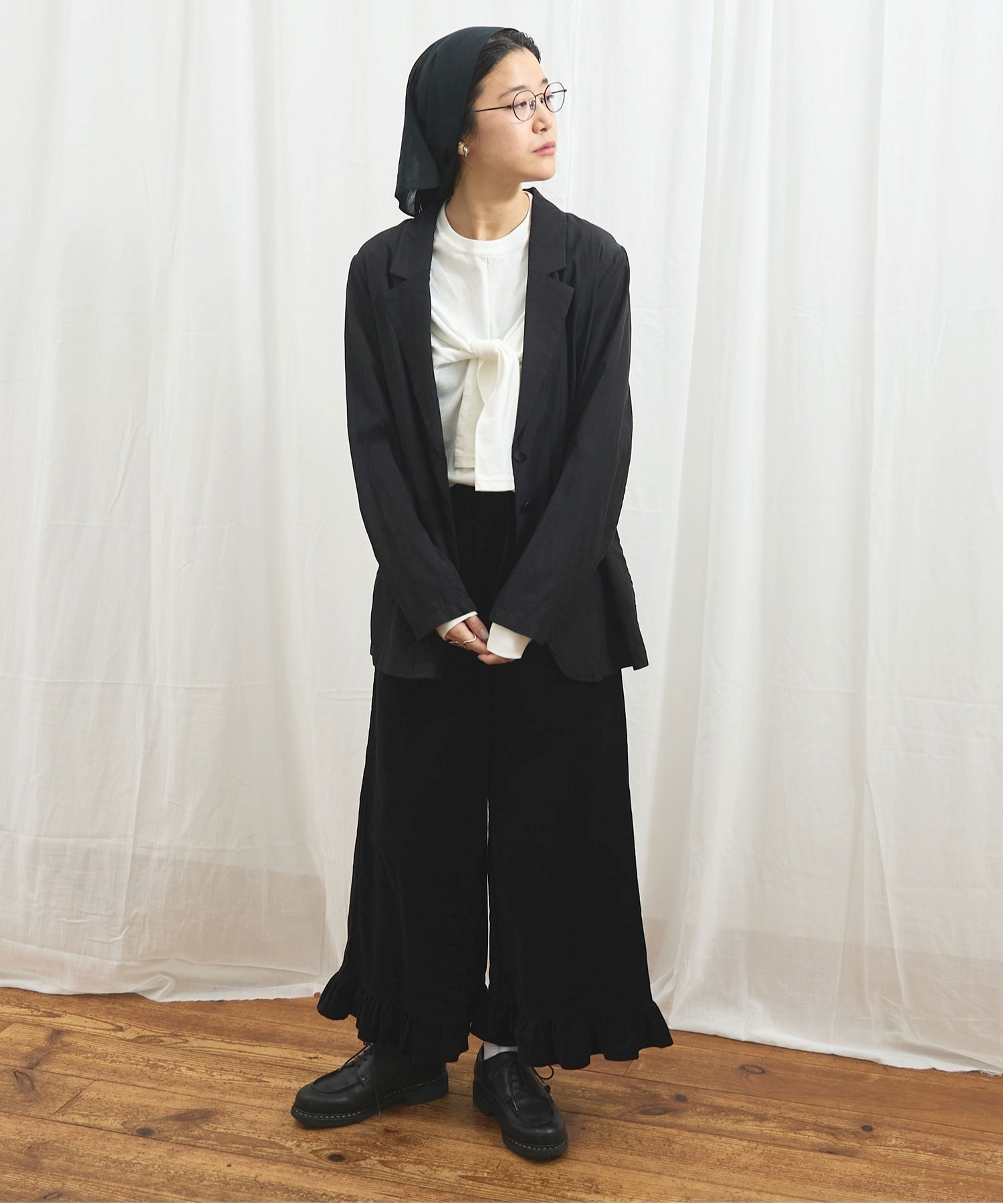 ベストとのセットアップはもちろんカジュアルなトップスとの合わせも品よくまとまります。