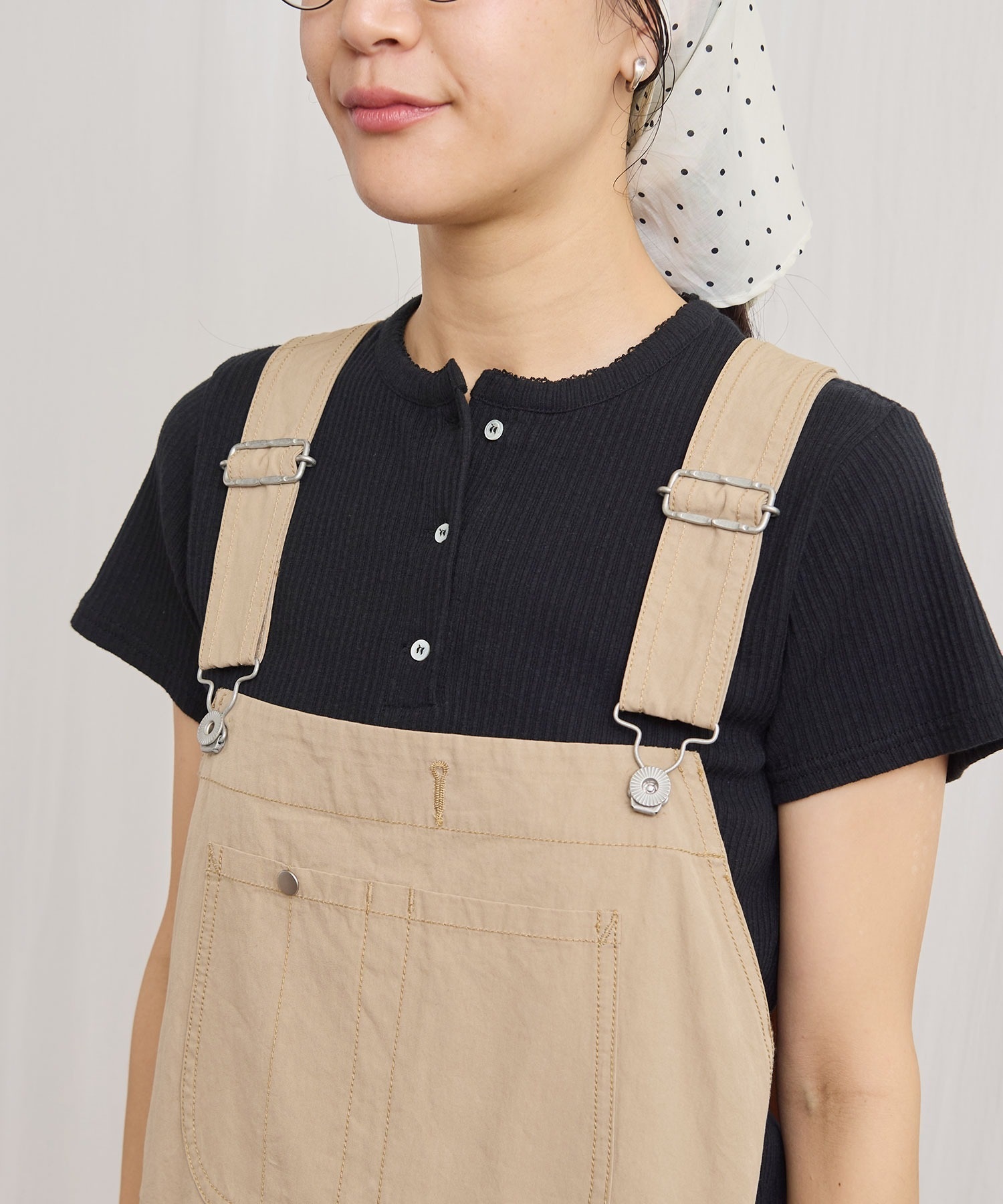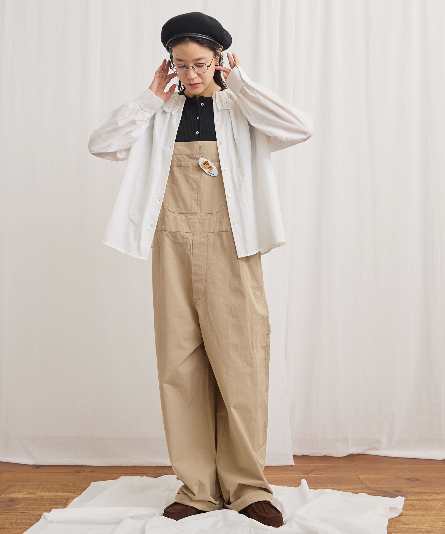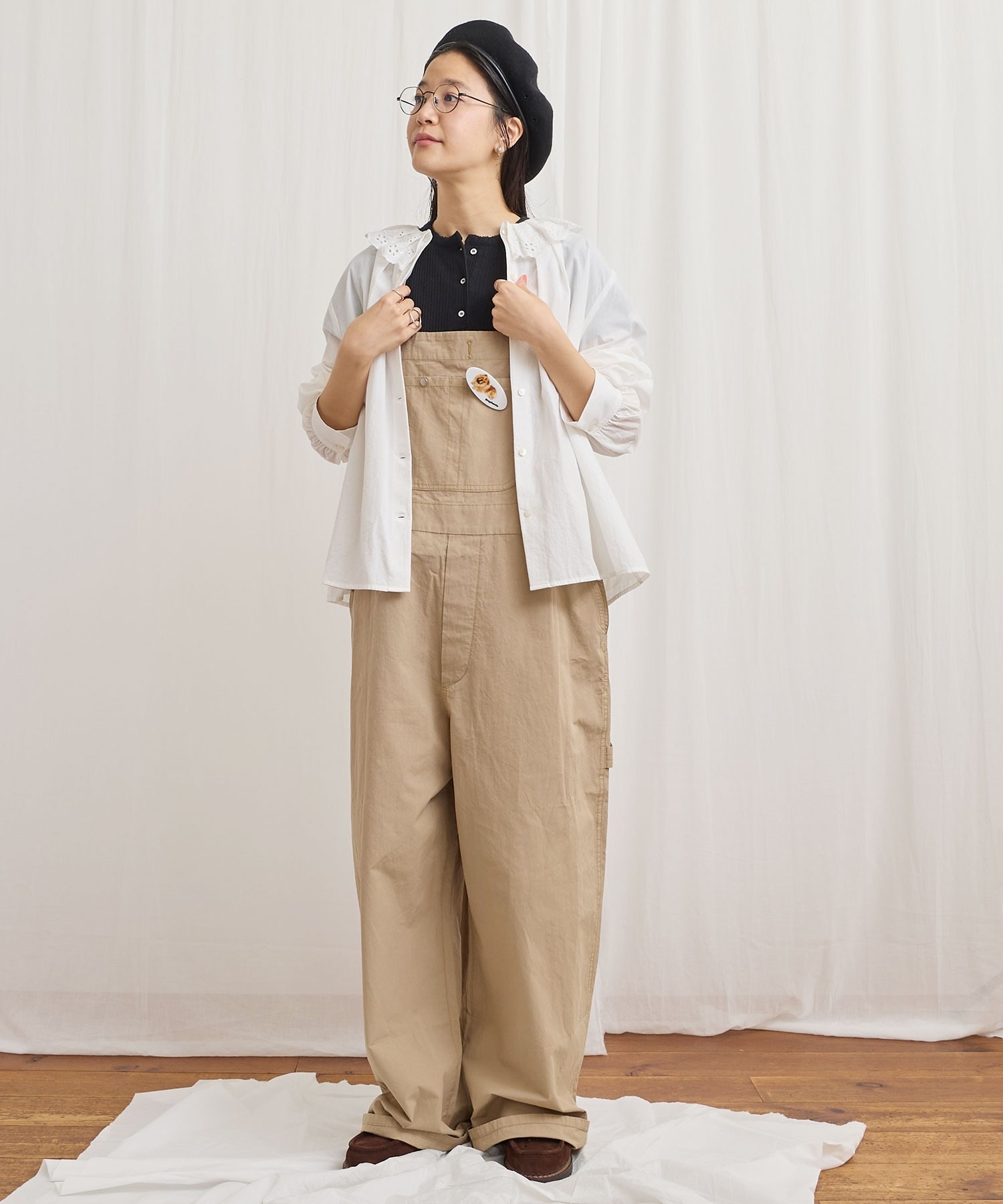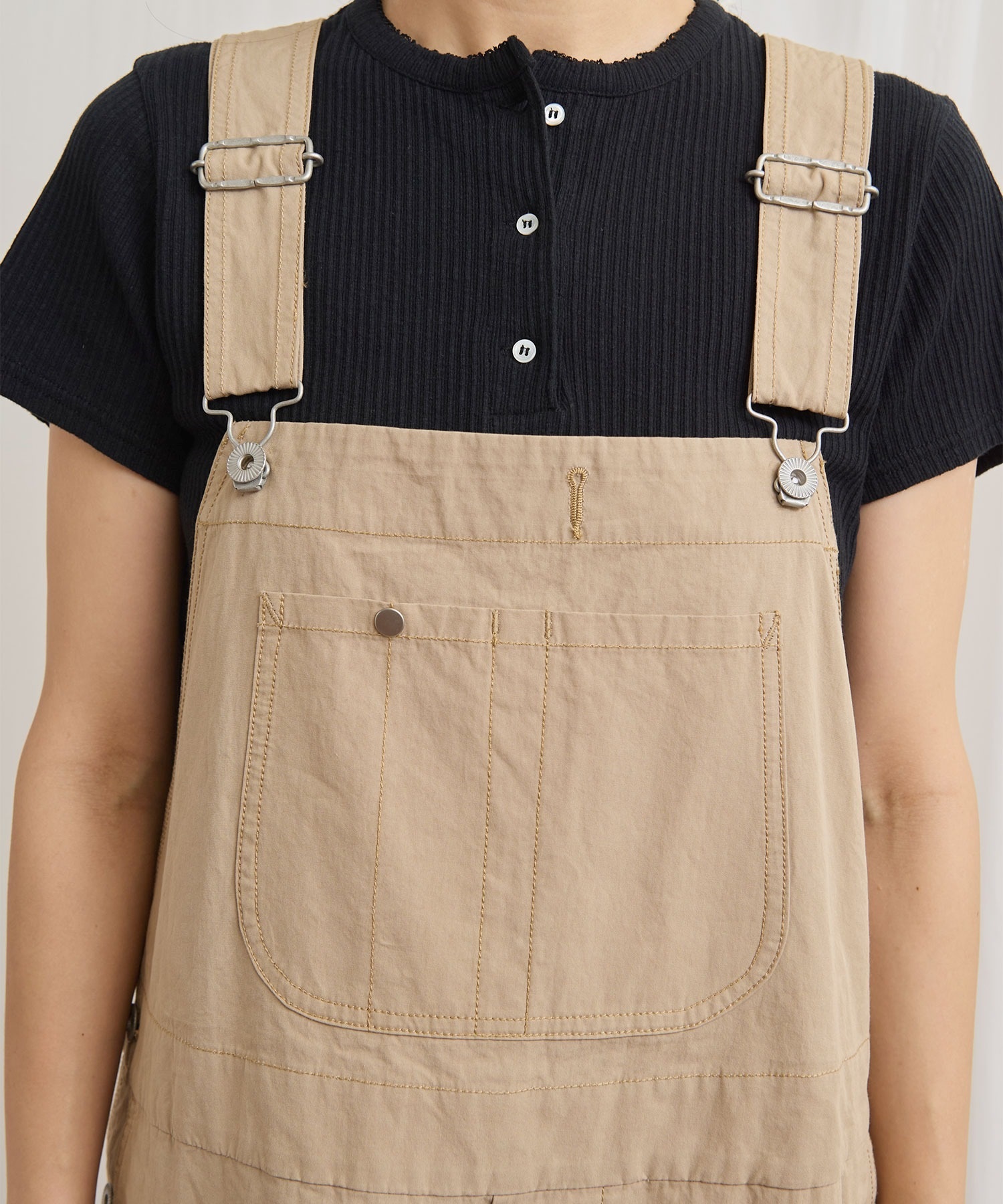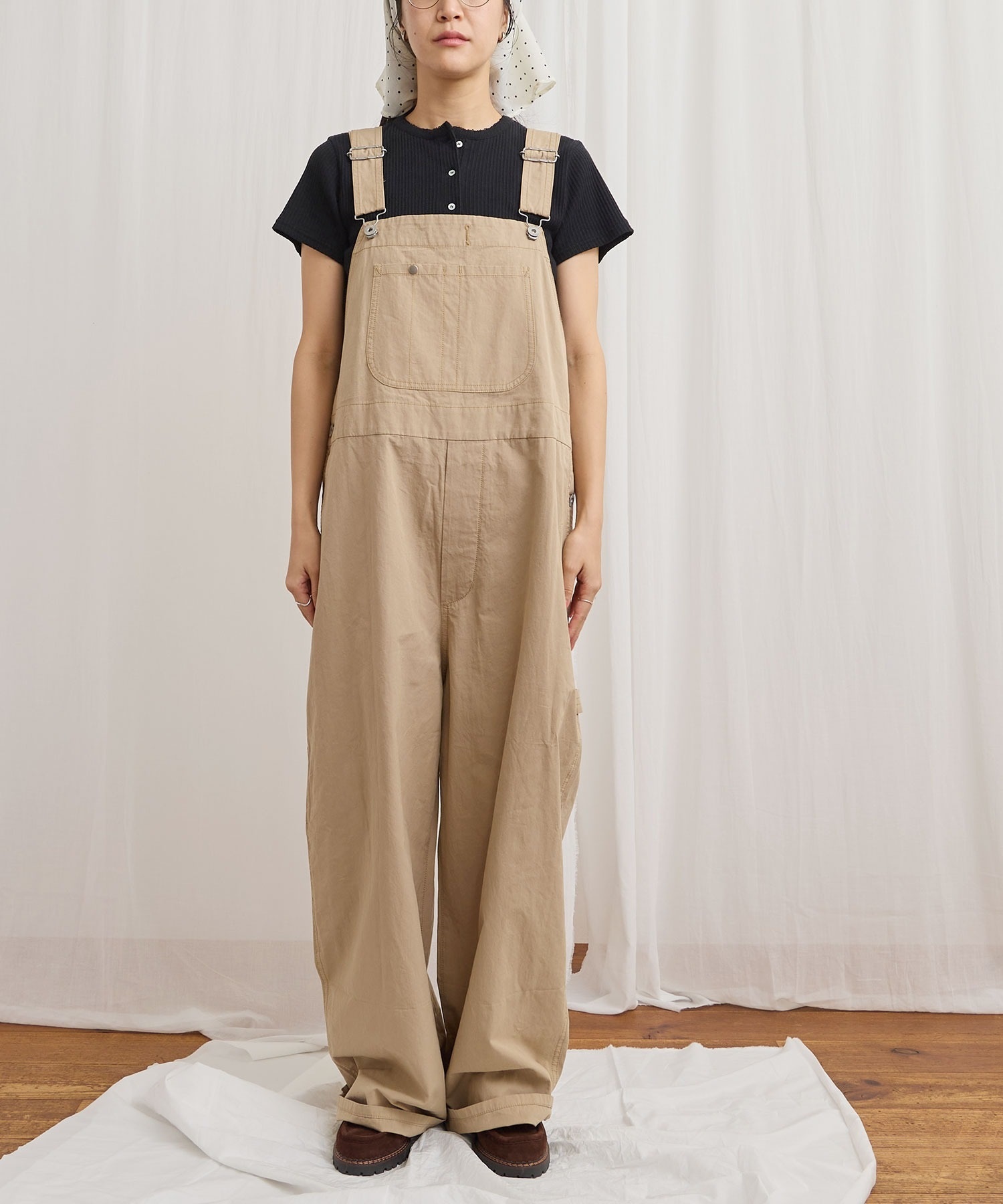 高密度な綿素材で仕立てたビッグサイズのオーバーオール。