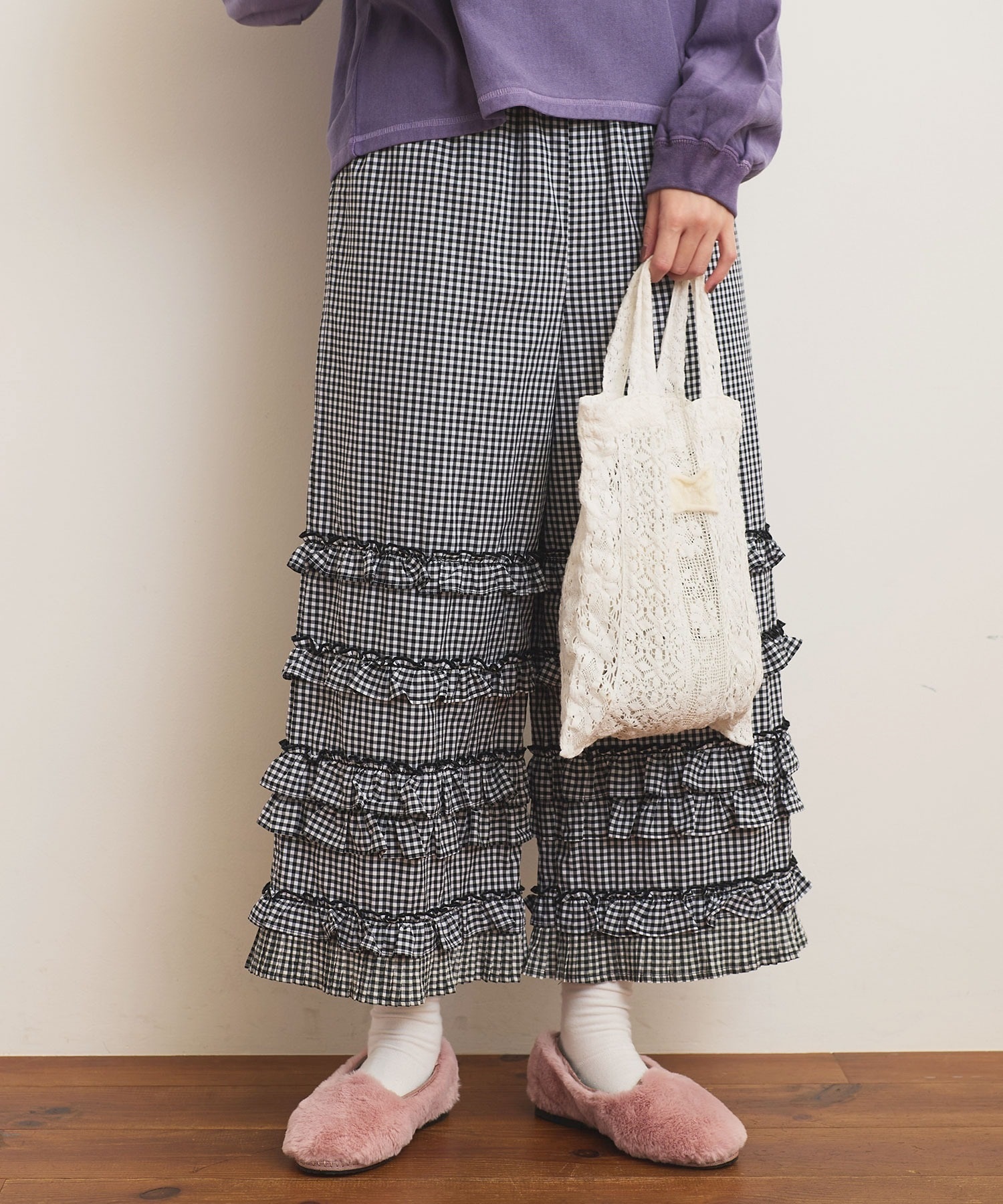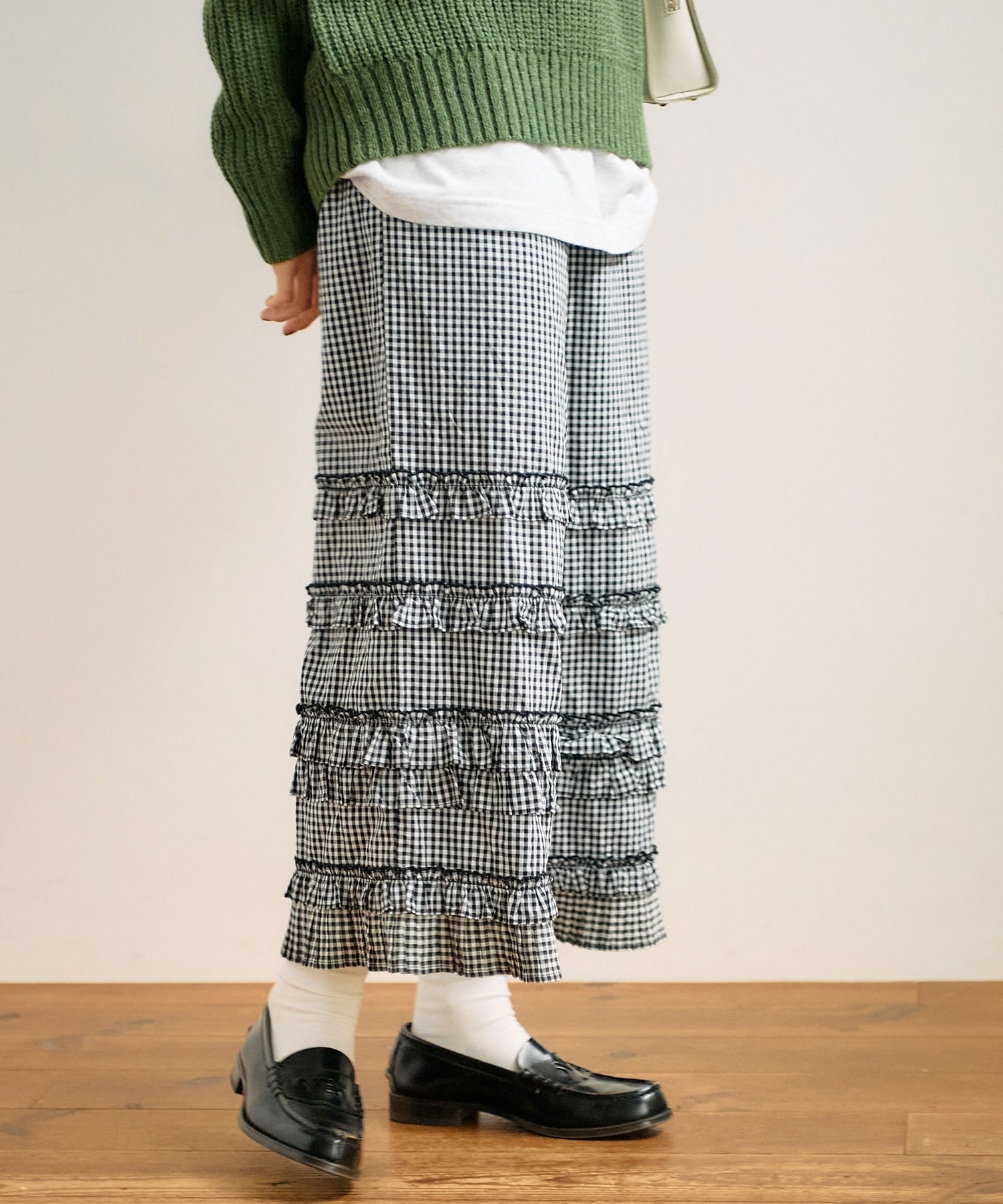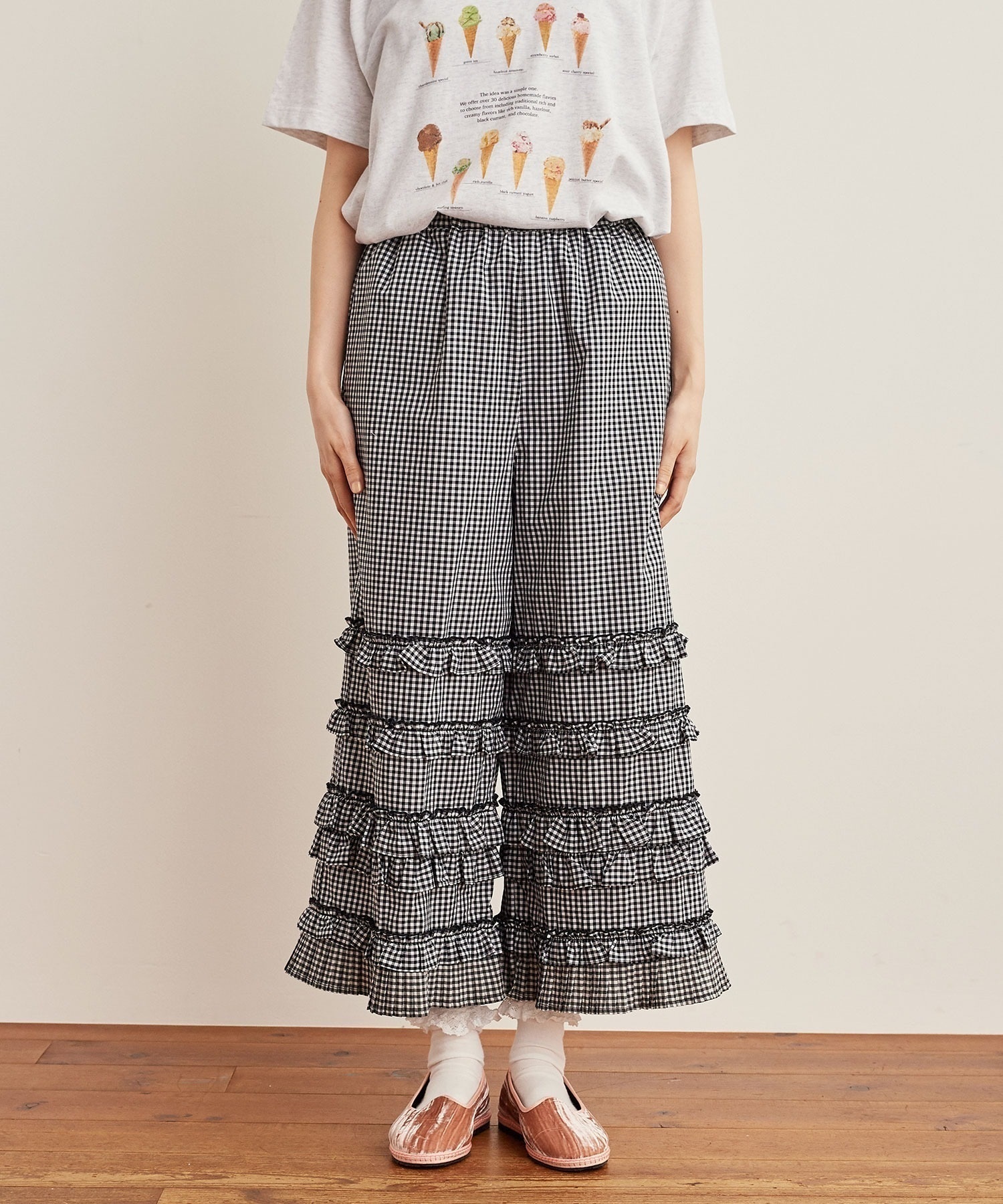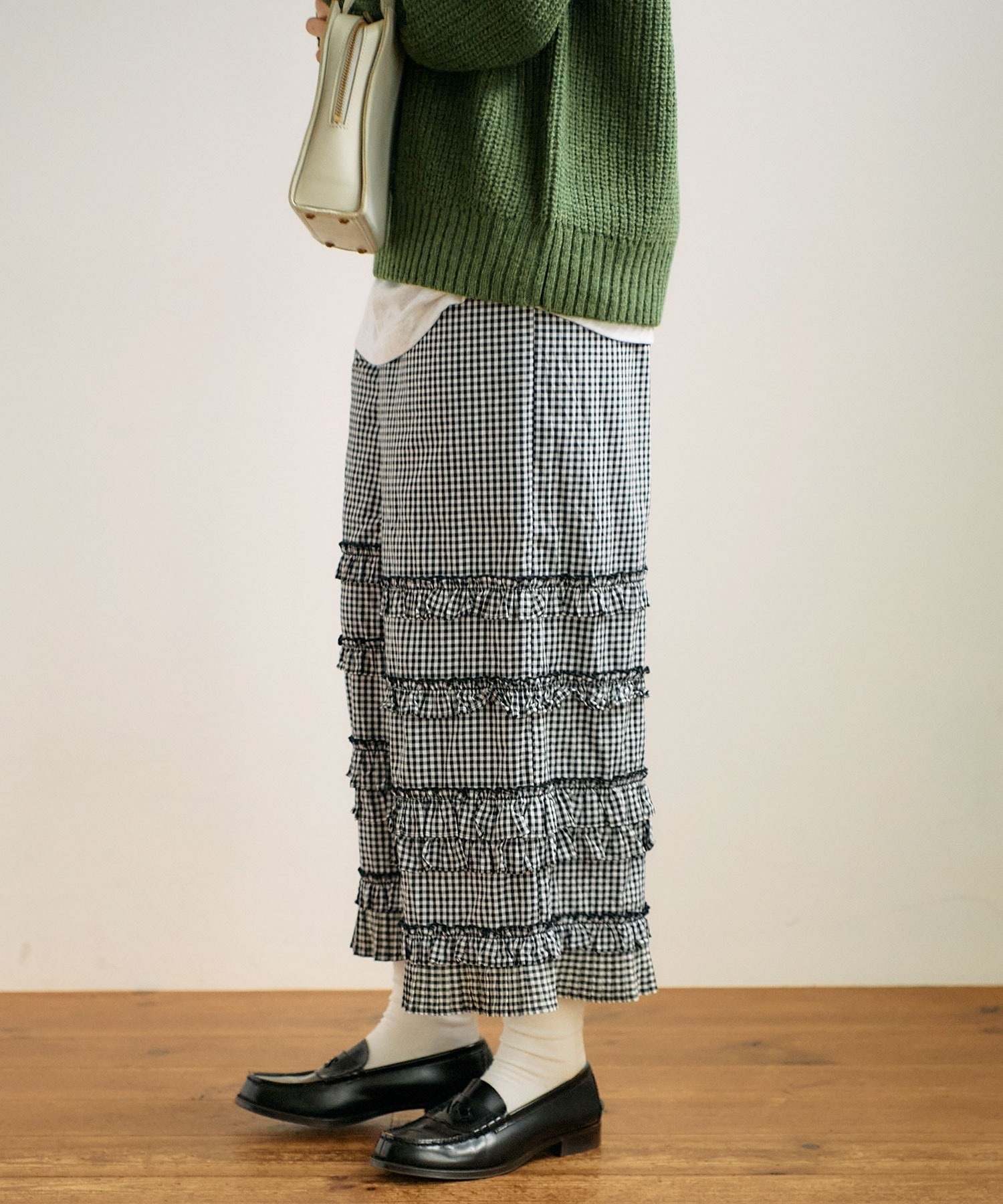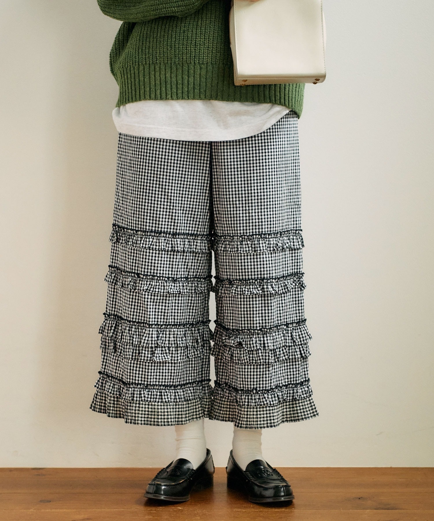 春夏の装いに合わせやすい、ギンガムチェックのDECOパンツ。
