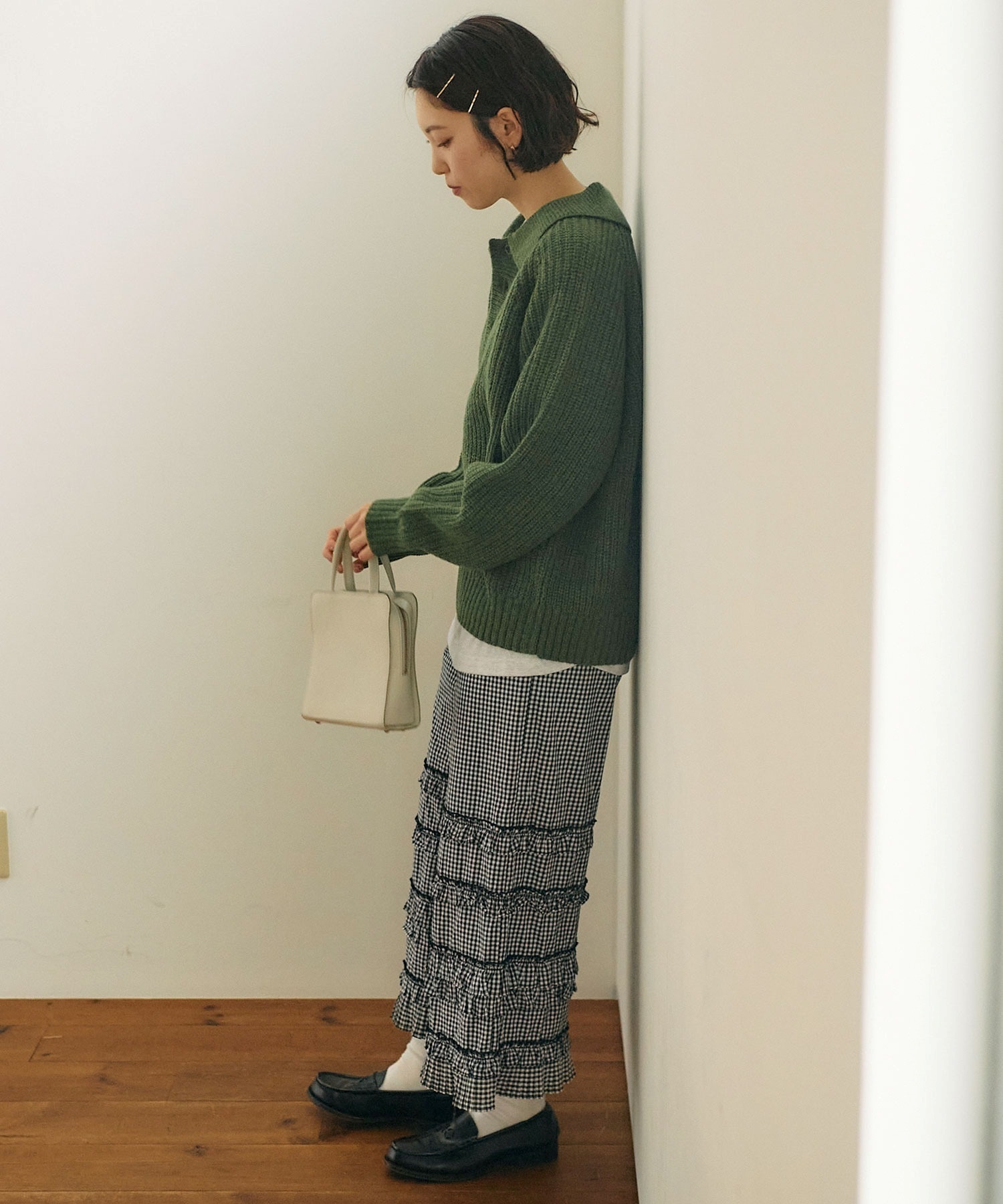 足元が見える着丈なので様々なトップスに合わせやすいシルエットです。