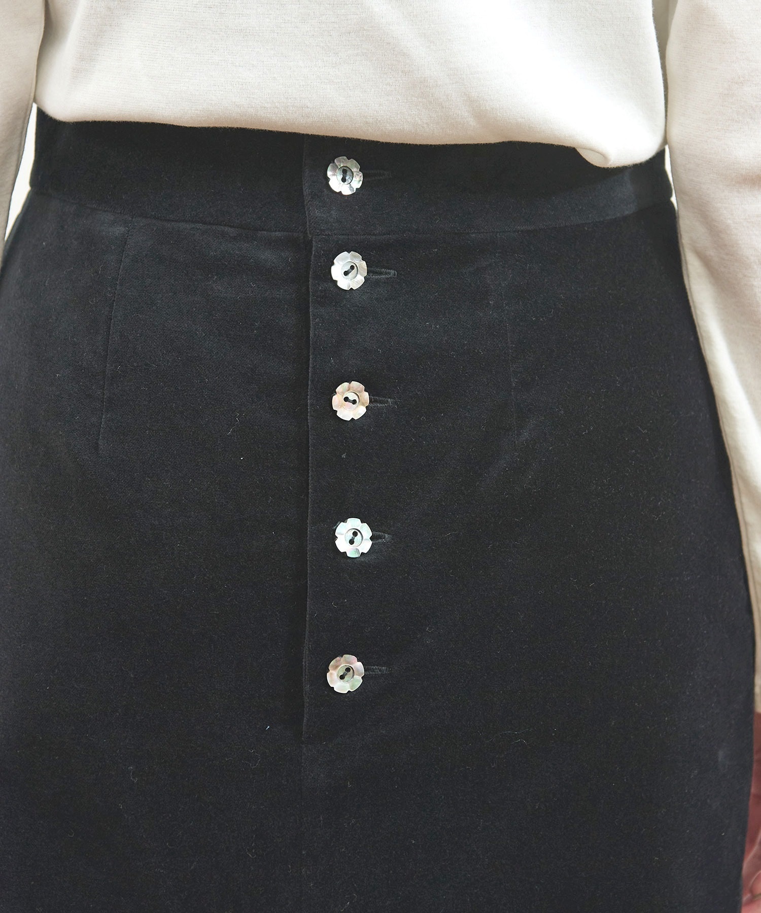 ポイントはセンターバックの花型のボタン。控えめに光るボタンが少女のような表情を見せてくれます。