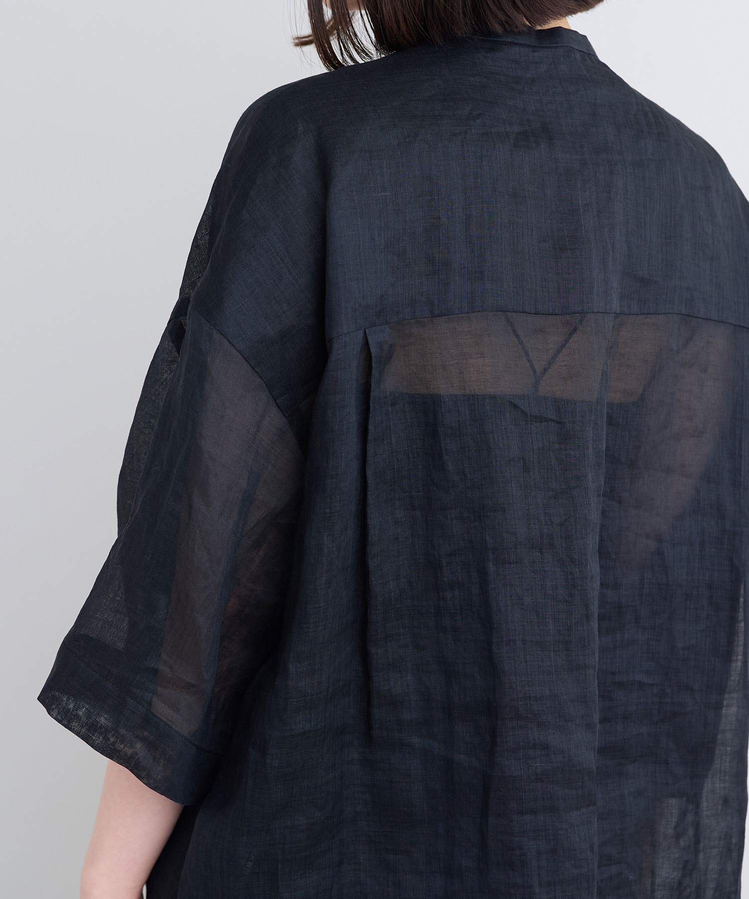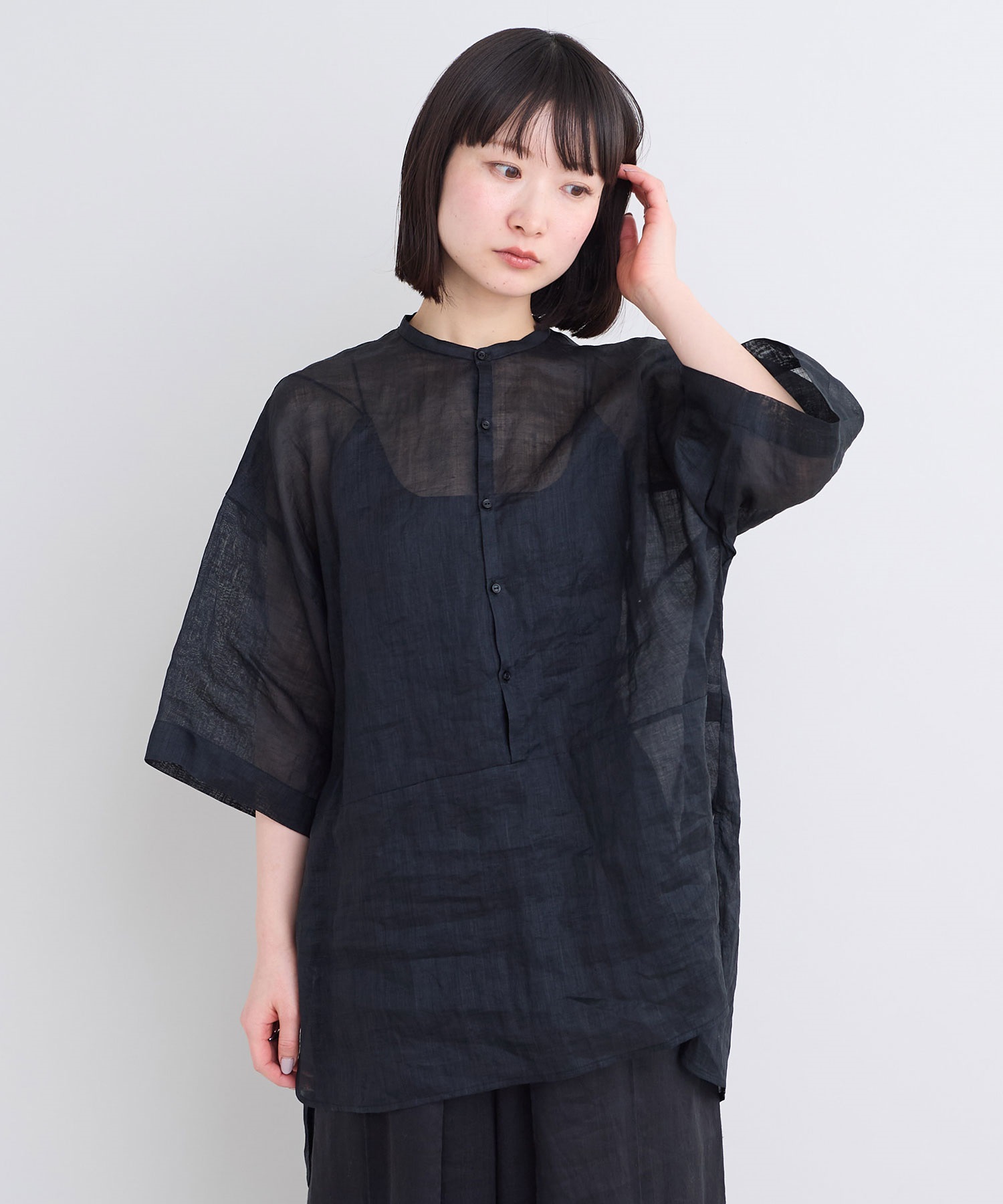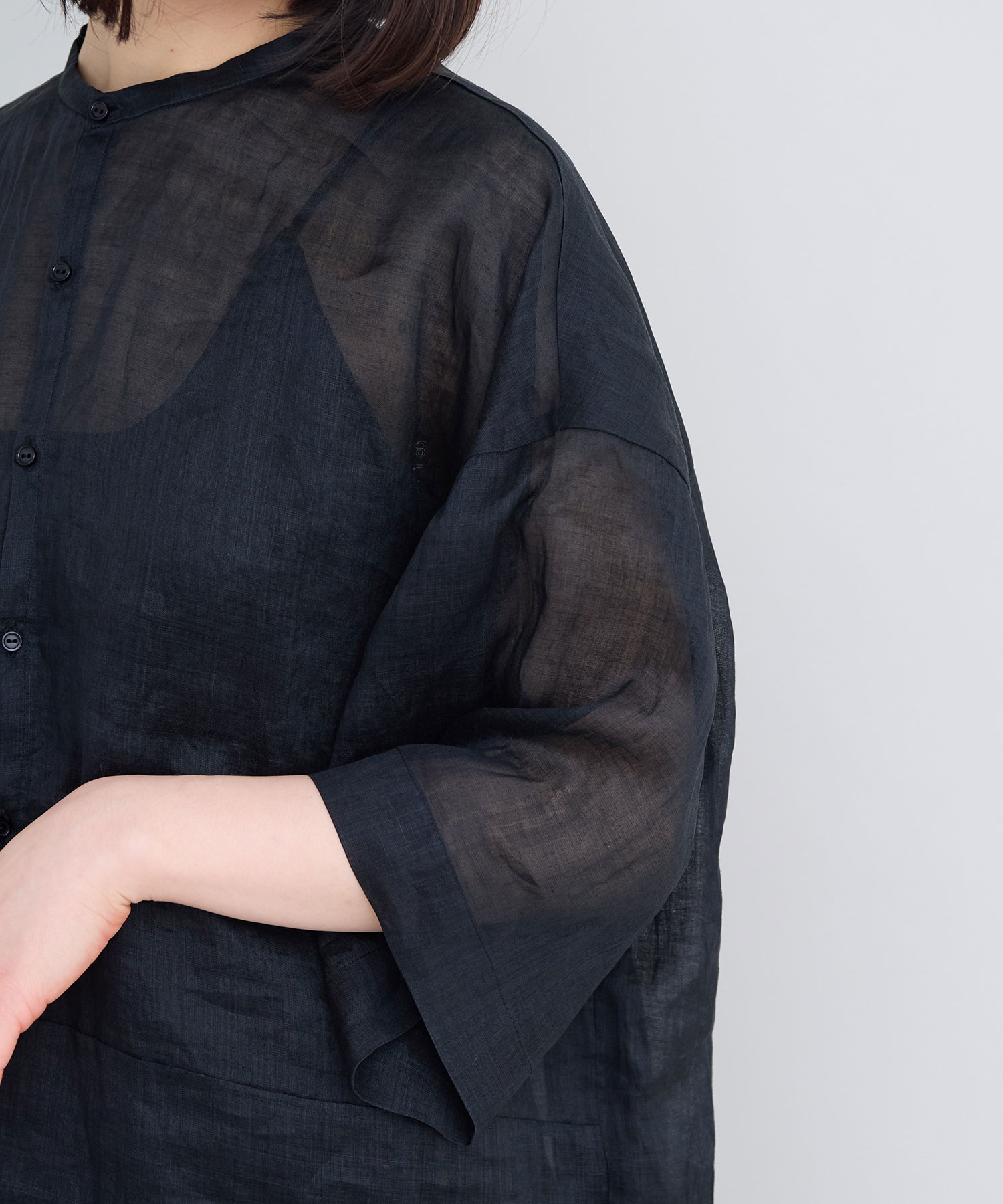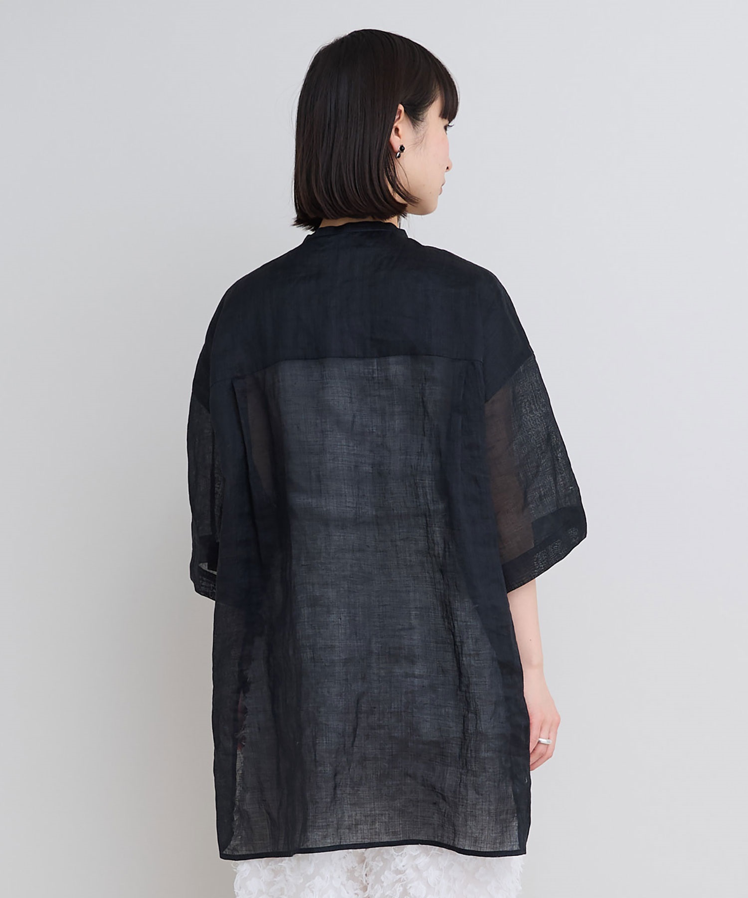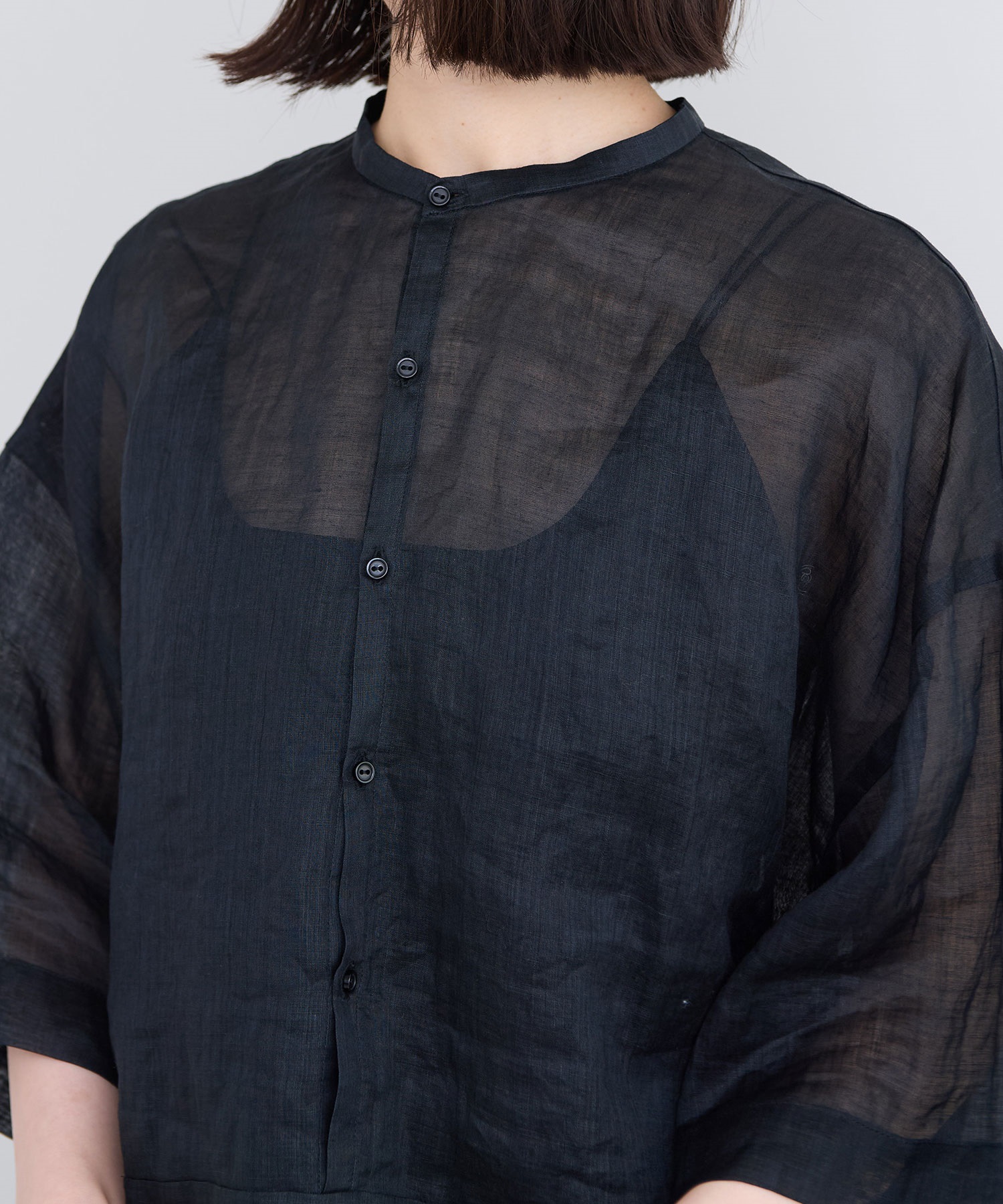 ハリ感と透け感を生かしたジャケットライクなヘンリーネックシャツ。