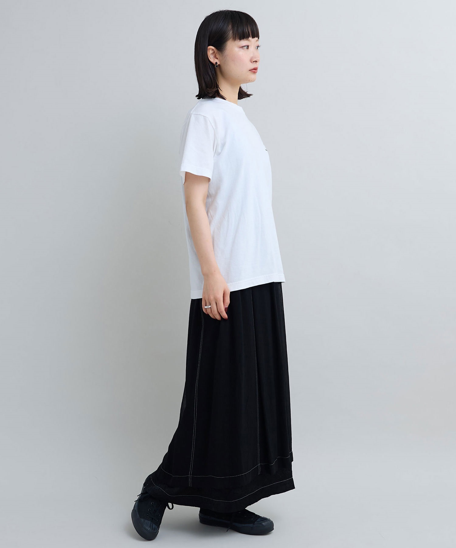 この製品に使用されているプリントは、使用を繰り返すことにより、もまれたり擦られたりすると、顔料が徐々に白化しむら状の部分が現れます。使用により他の衣類等に色移りする恐れもありますのでご注意ください。また、一枚一枚の色の出方、風合い等も微妙に違いますが、他の製品では味わえない雰囲気をお楽しみ下さい。