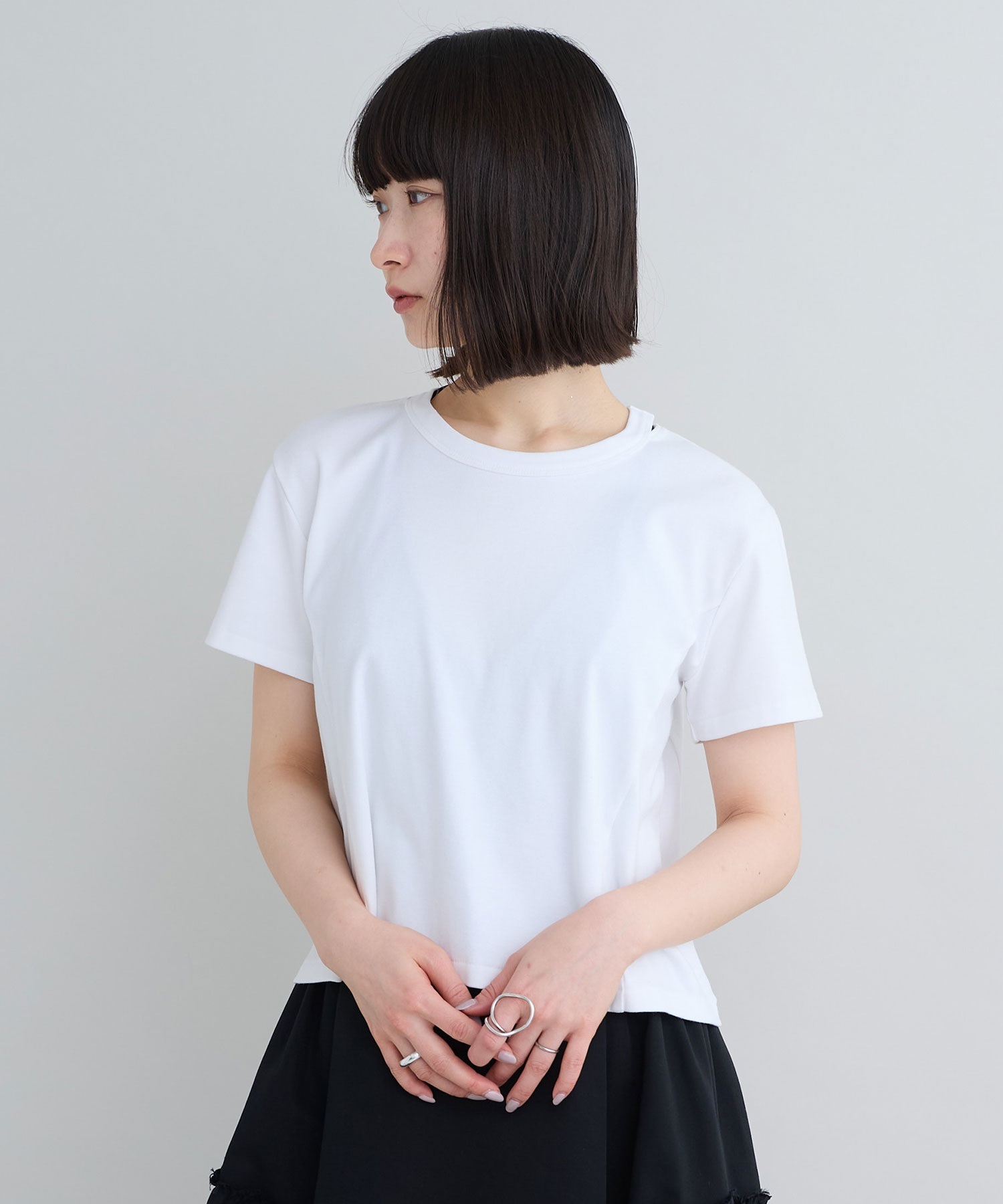 シロでも透けにくく、安心感のあるTシャツです。