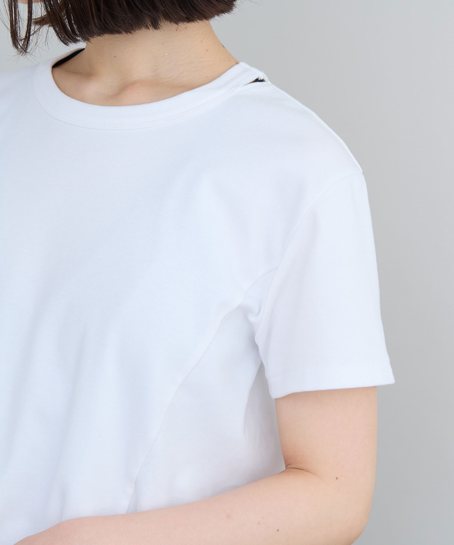 衿のサイドスリットデザインで肌がやや覗く抜け感をプラスしています。