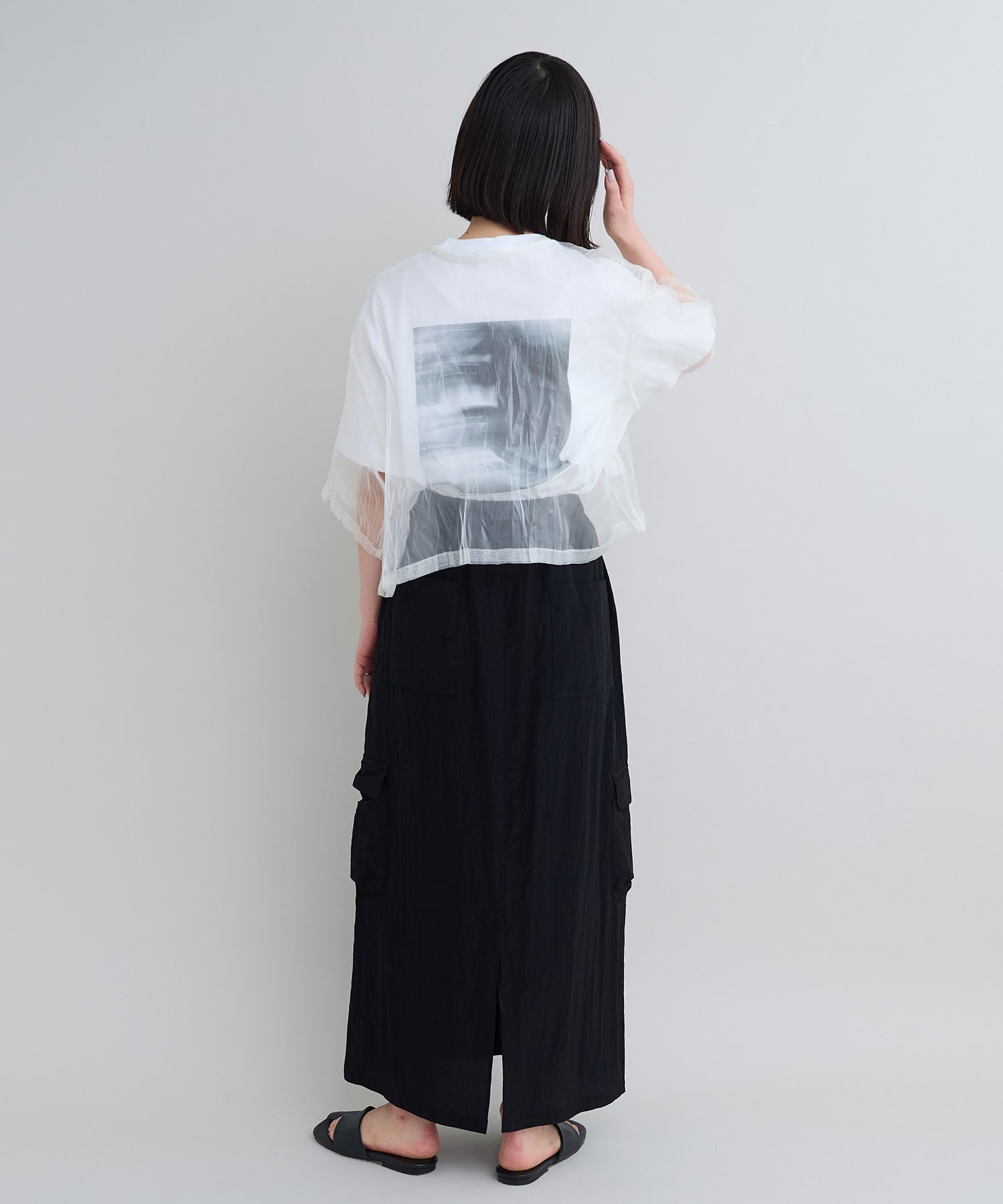 フロントにウェーブロゴ、バックにフォトプリントを施したTシャツ。