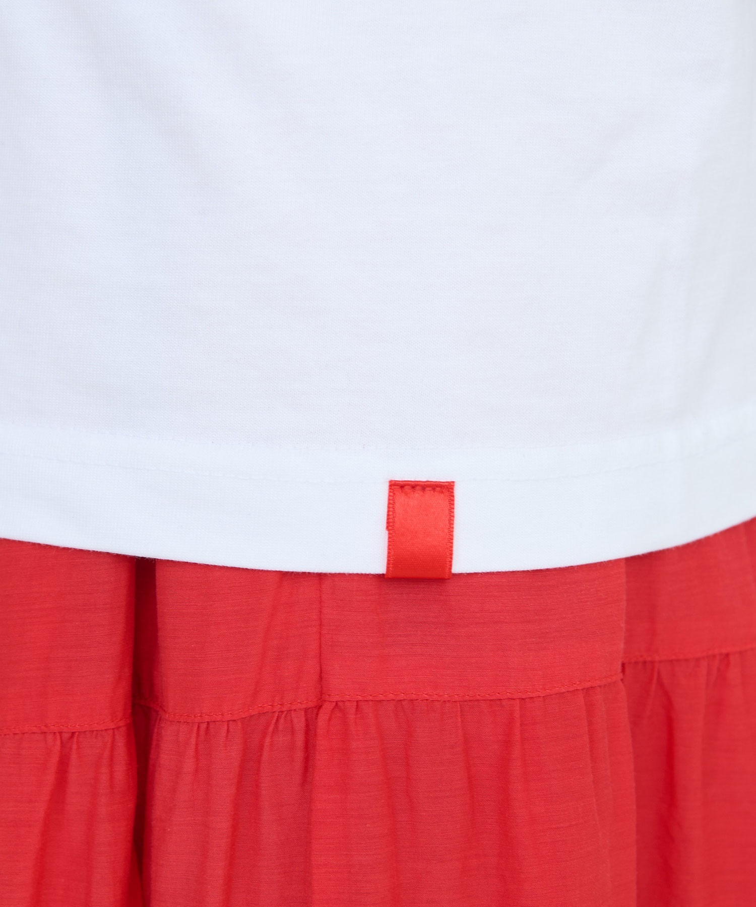 裾にはプリントと同色のタブを付けてさりげなくポイントにしました。