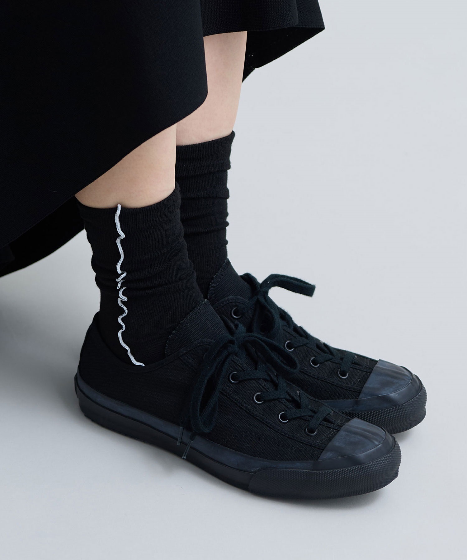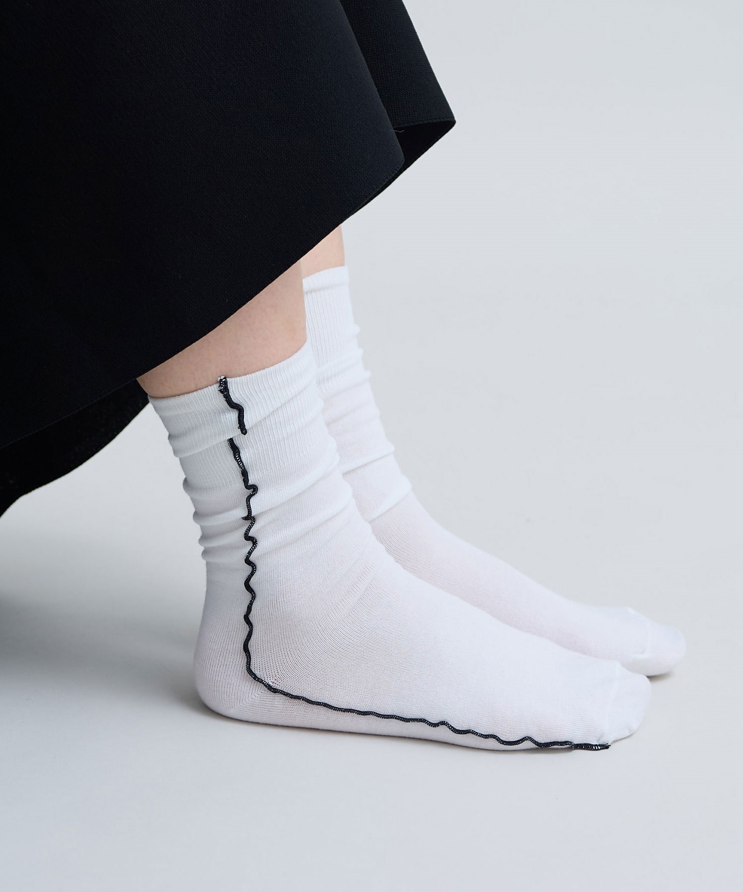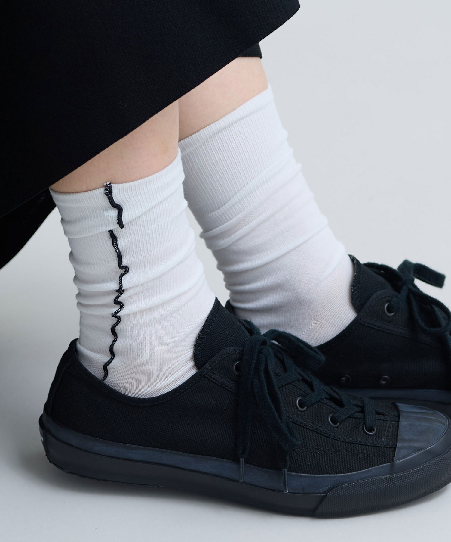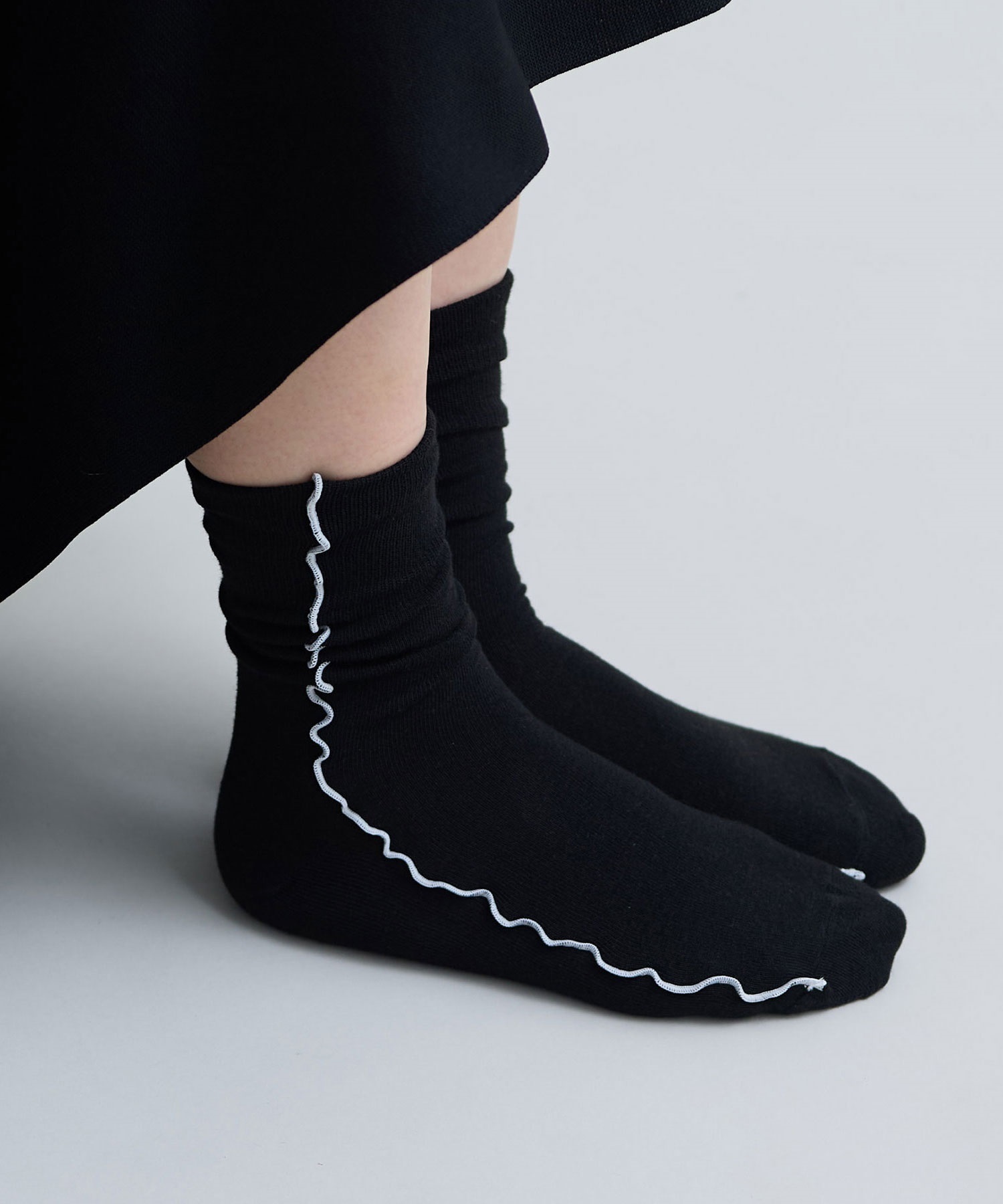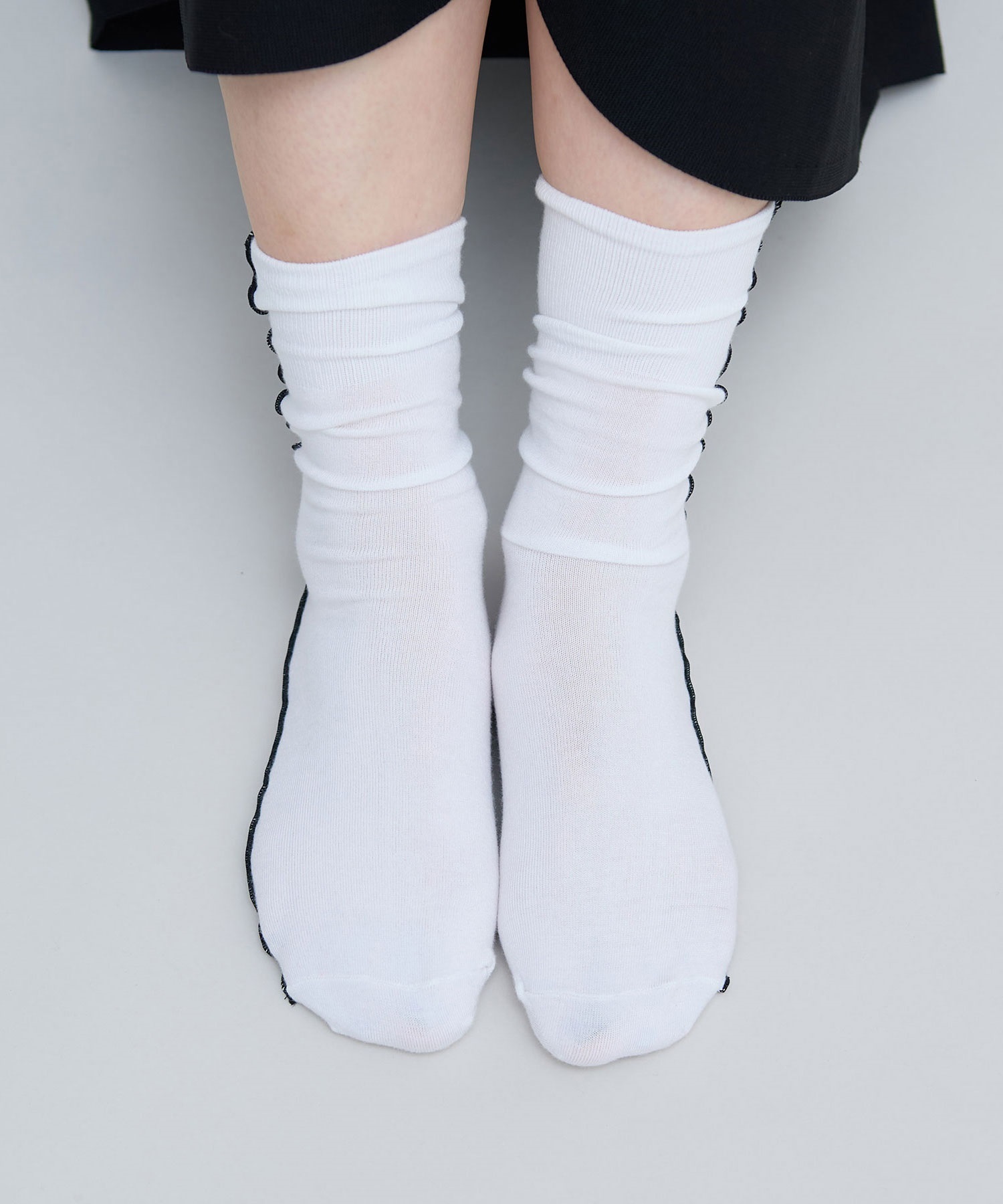 綿ポリエステル素材で薄すぎず、厚すぎない生地感でシーズンレスに穿ける靴下です。