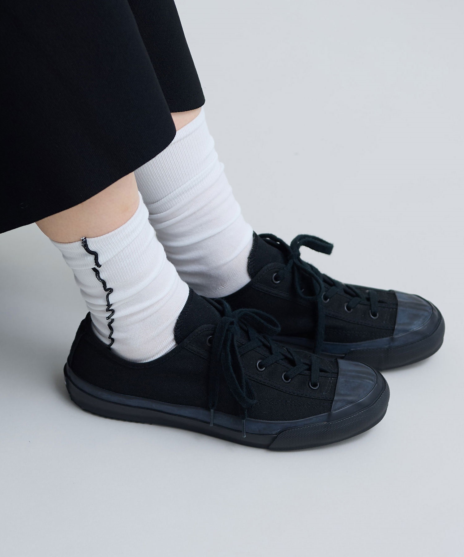 コーディネートを邪魔せず、足元からちらっと見えるサイドラインがかわいらしい、ワンポイントアイテムです。