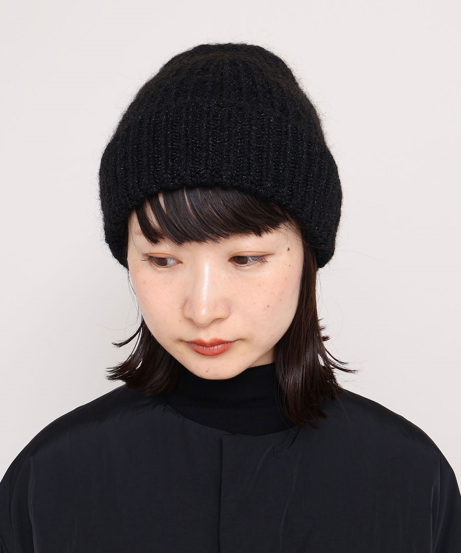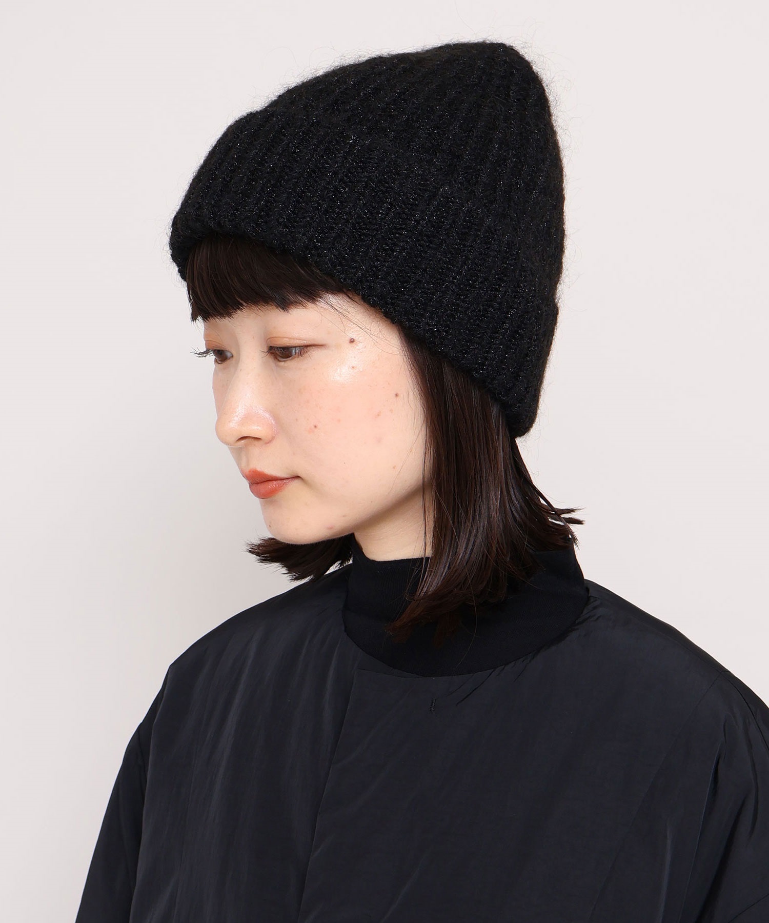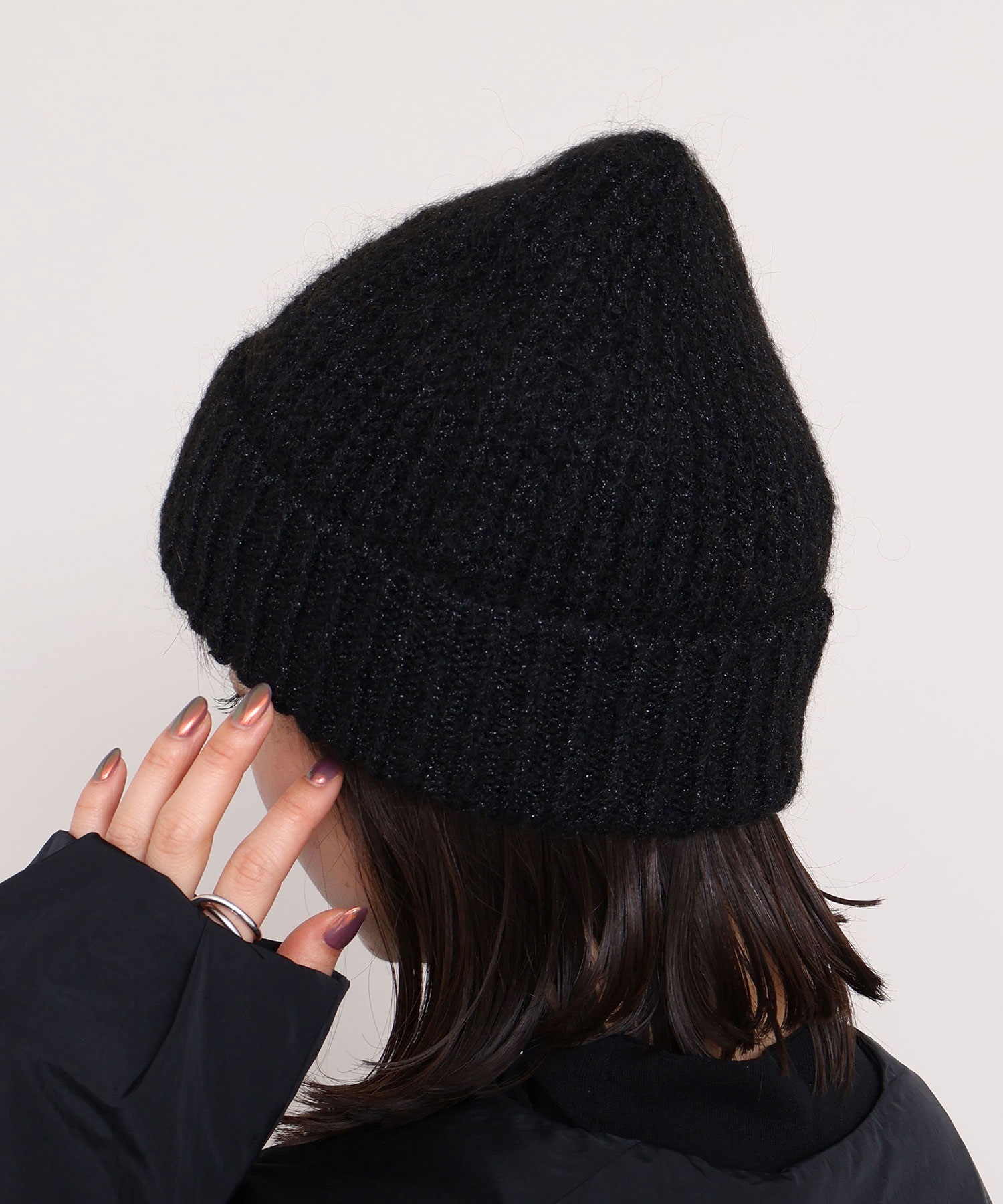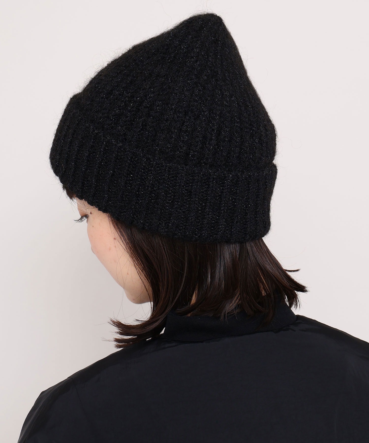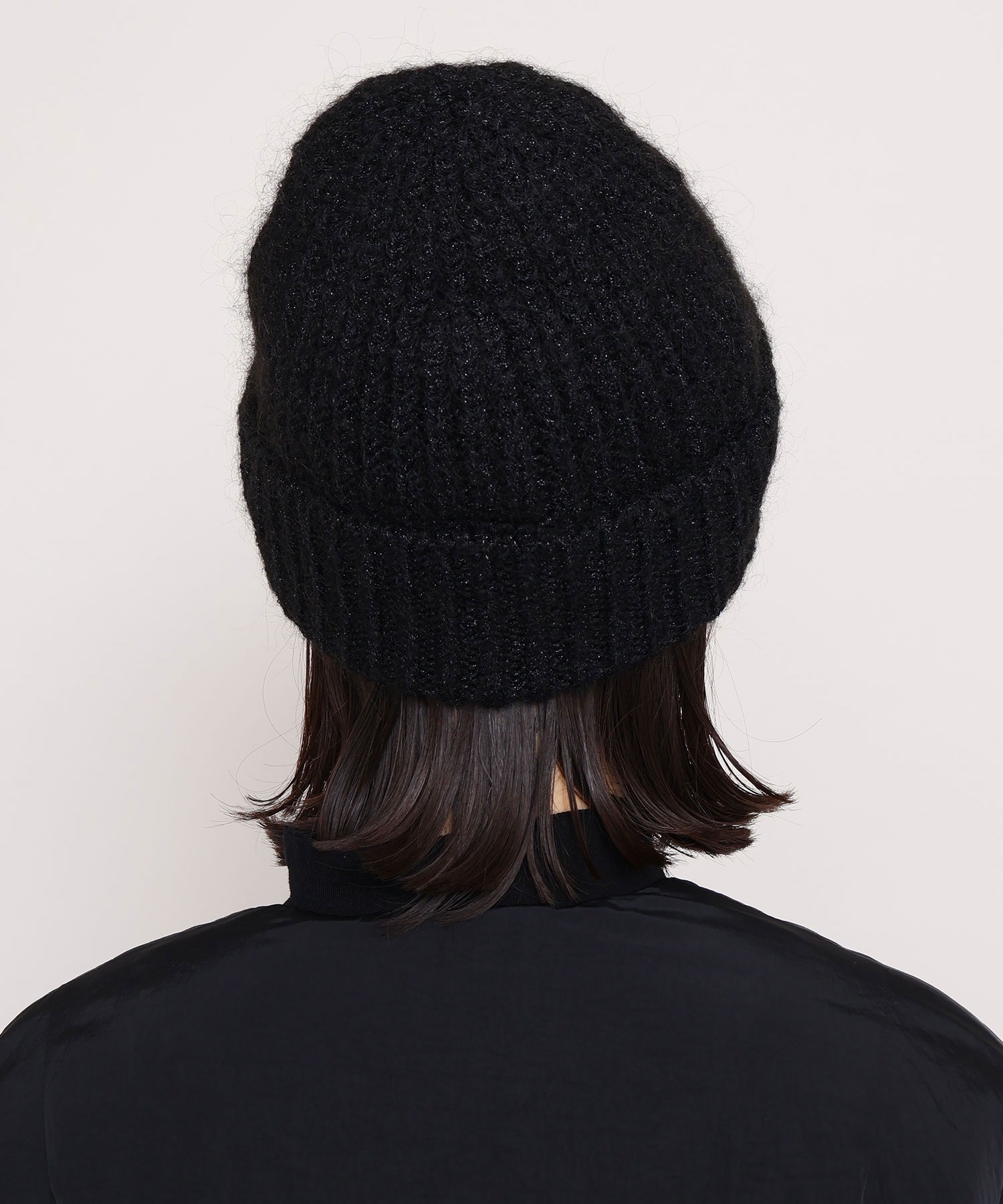 ラメ糸を織り交ぜているのでほのかにキラキラと輝く質感がきれいなニット帽です。