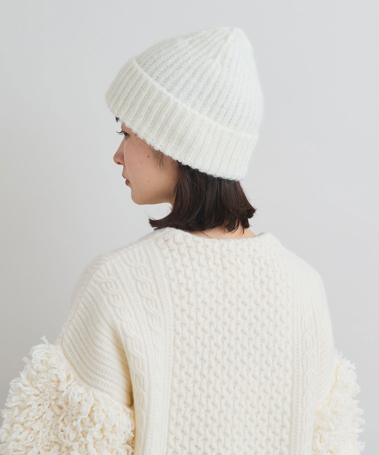 ナイロンのライト感とモヘアのヘアリー感がマッチしたオリジナル糸を使用しています。