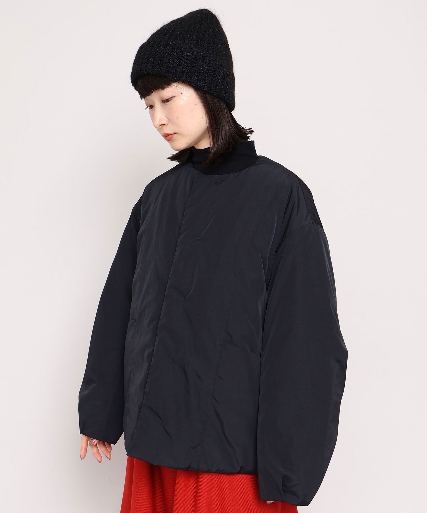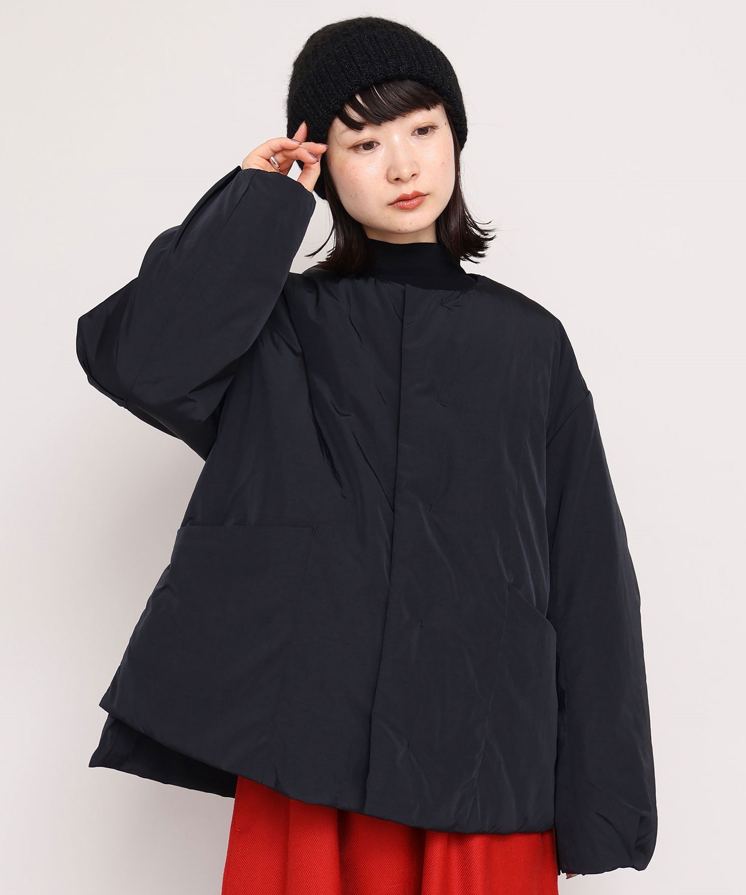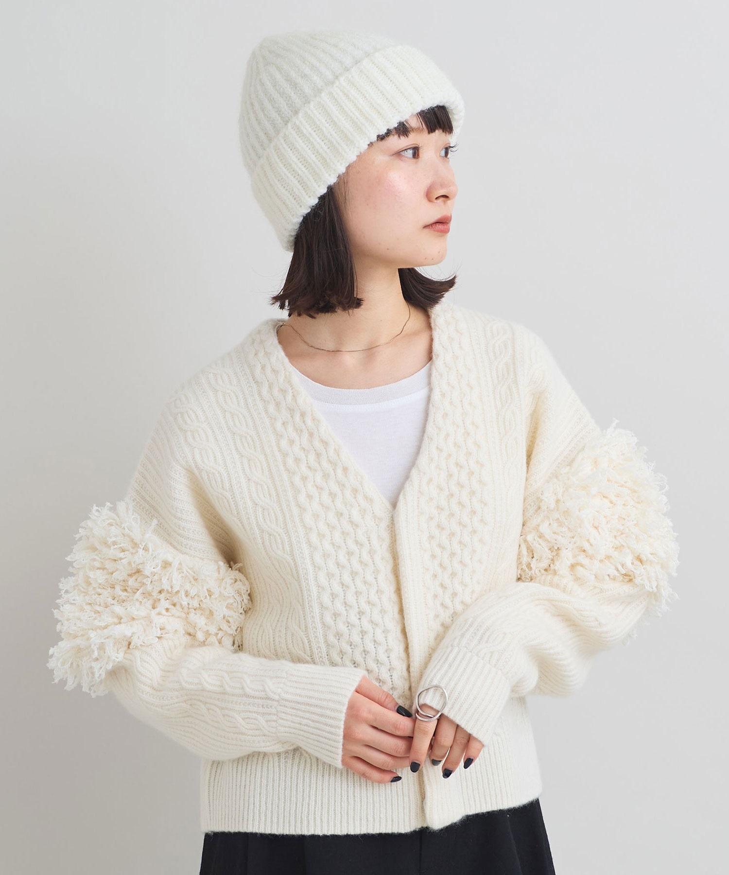 ・この製品に使用しております素材はモヘヤが含まれているため、素材の特性上こすられたりした場合、毛が抜けて他のものに付着する事がありますのでご注意ください。また、伸縮性の強い素材を使用しているため、着用を重ねると伸びてくる可能性があります。あらかじめご了承下さい。