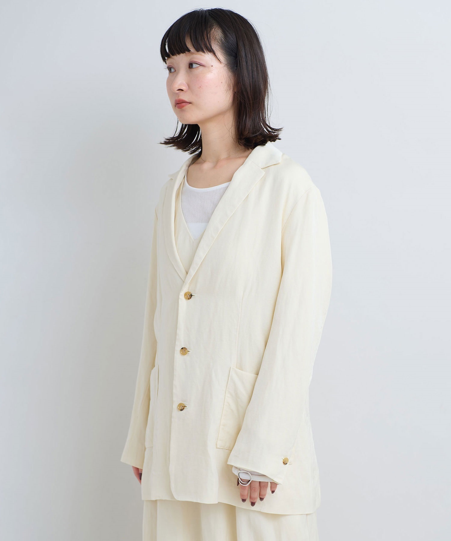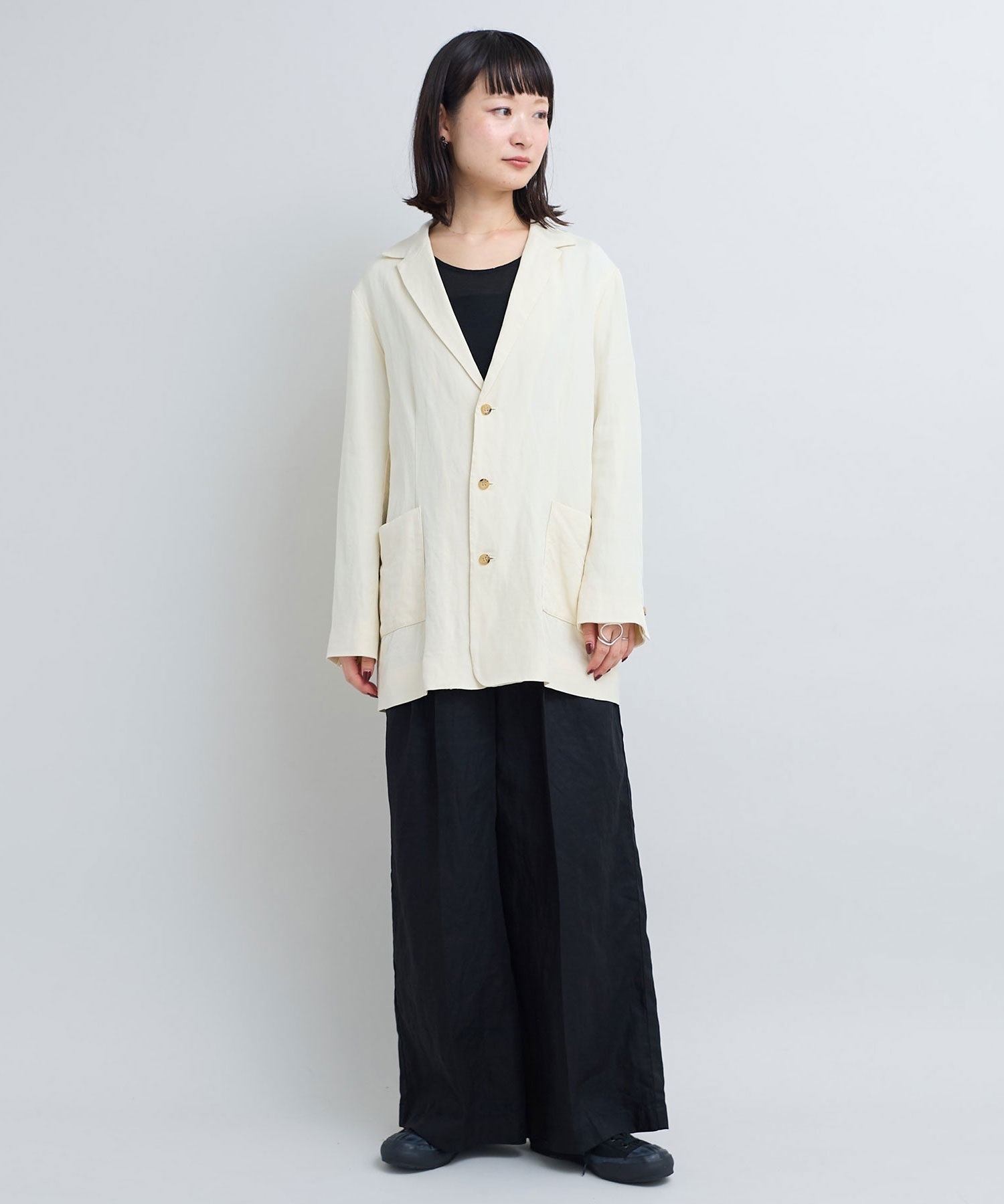 麻が混ざっていることでほど良いルーズさが加わり、独特の抜け感が魅力的な1着。