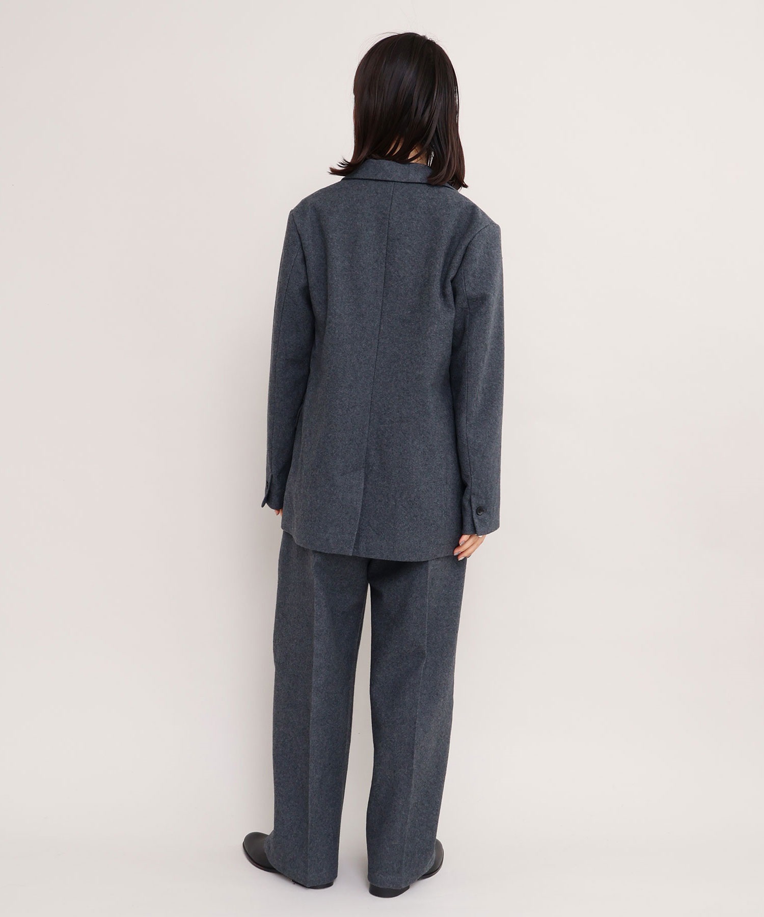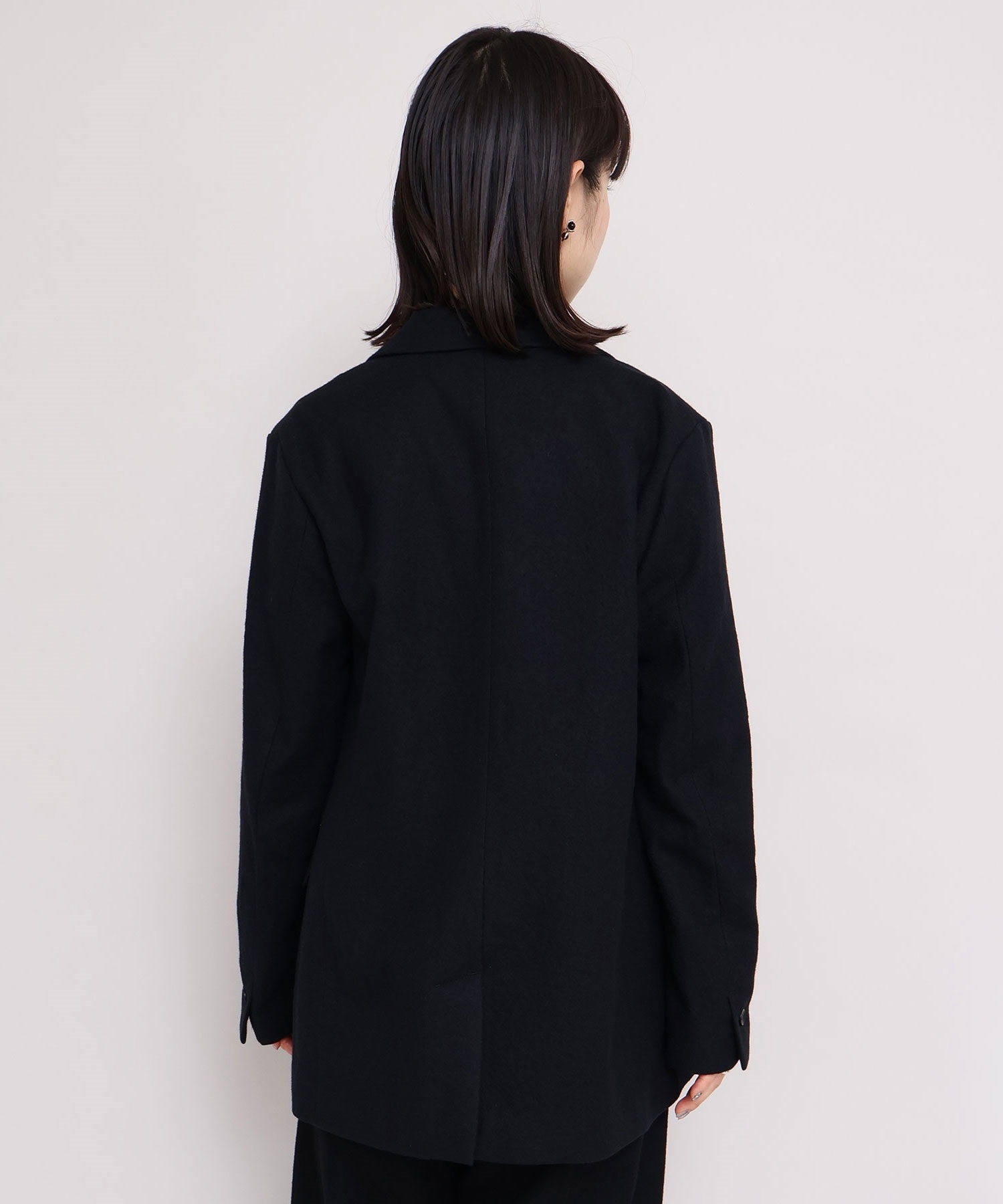 強縮をかけてぎゅっと縮絨させ、目を詰まらせることで表面感と肉厚感が加わったウール素材を使用したジャケット。
