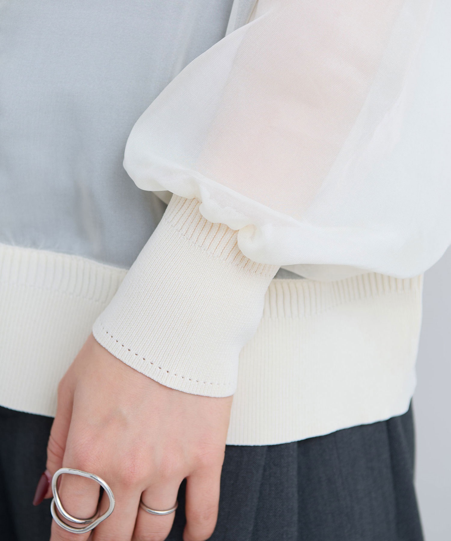 リブにはフィット感を与えることでふんわりとした袖に。