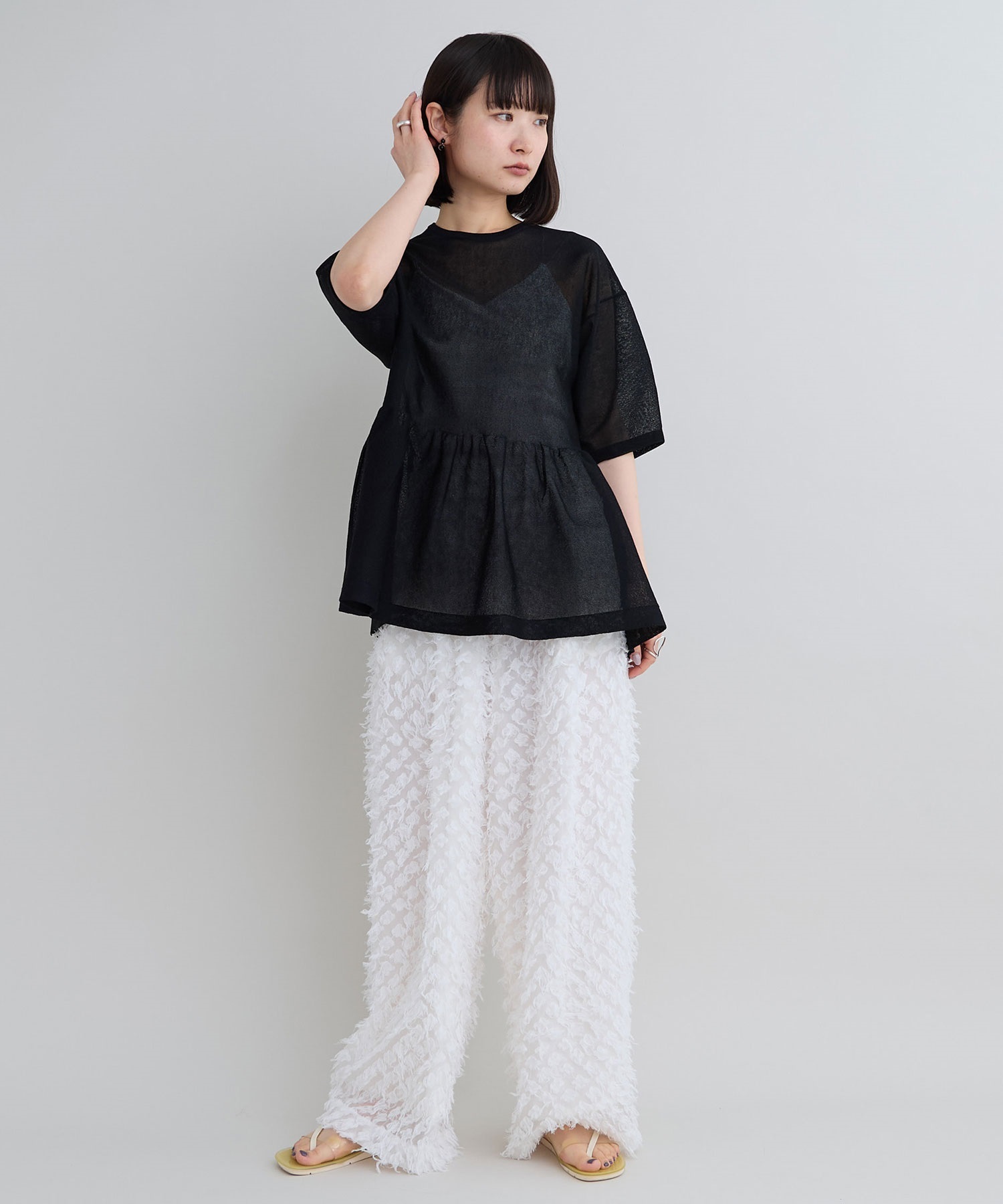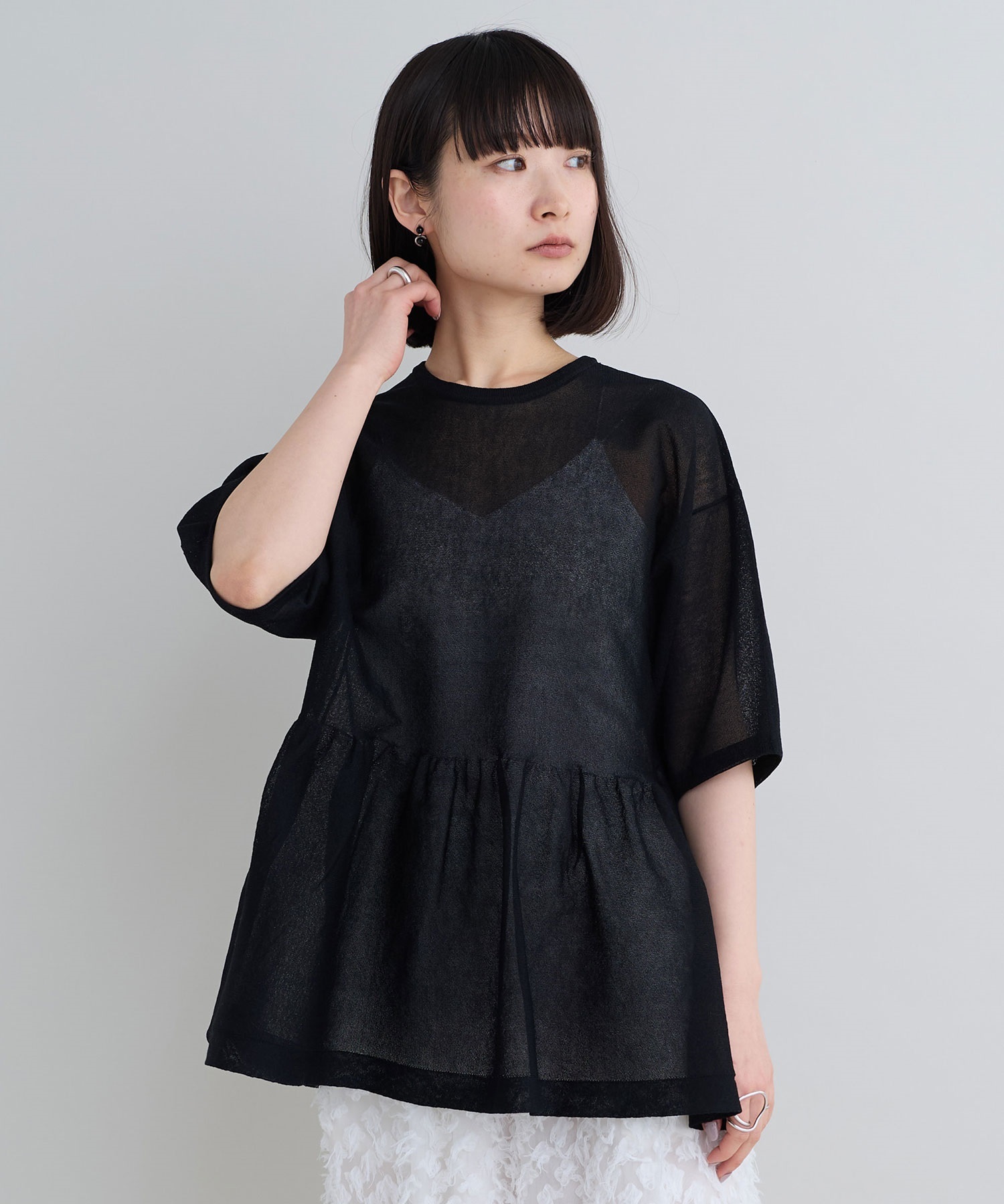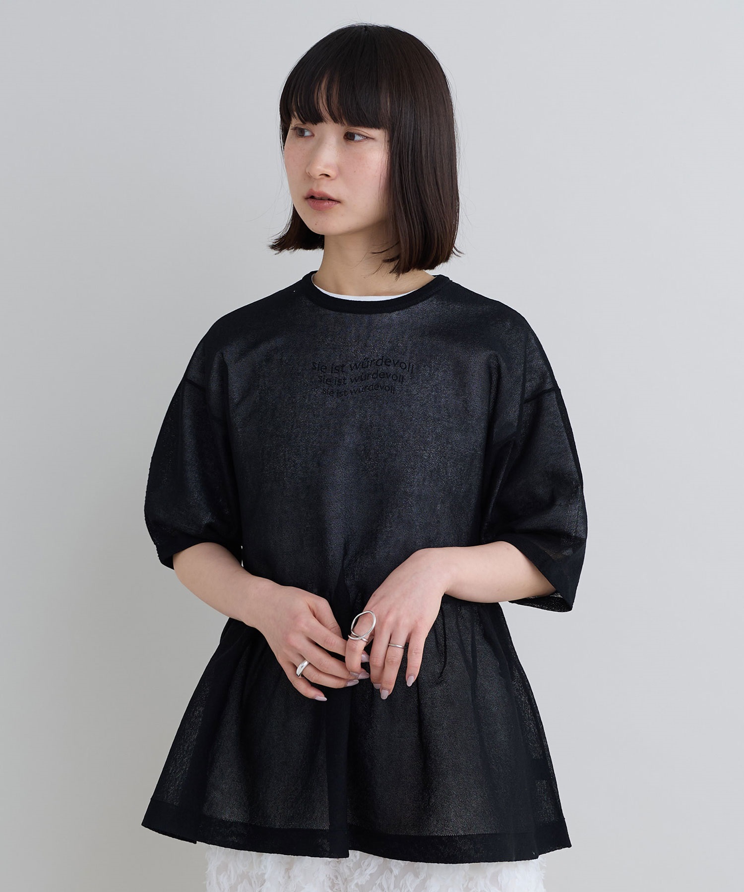 透け感があるのでロゴTなどをレイヤードしたコーディネートもおすすめです。