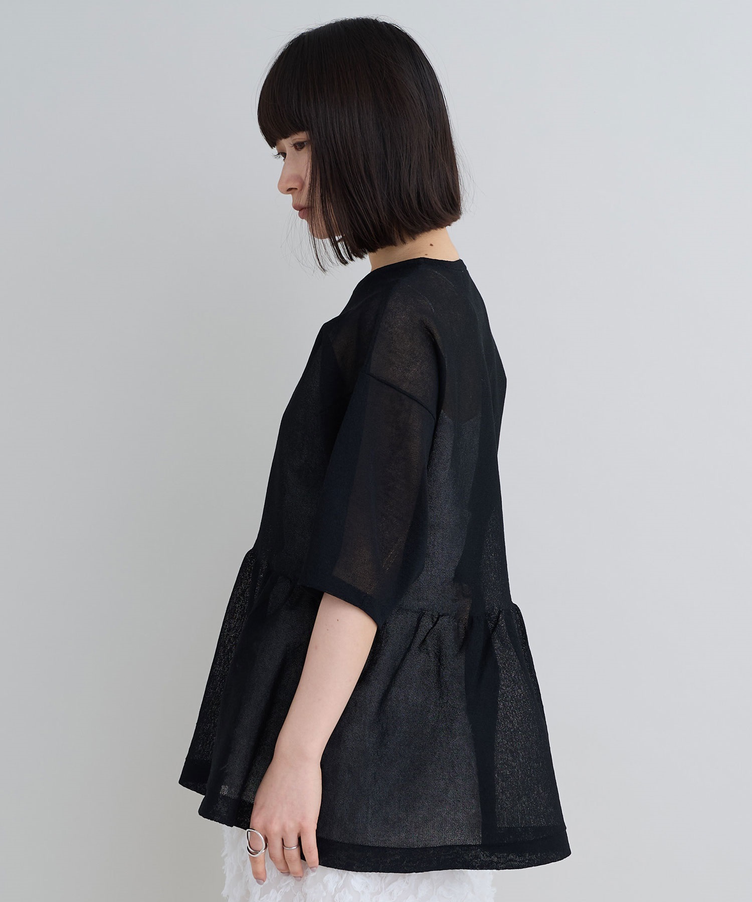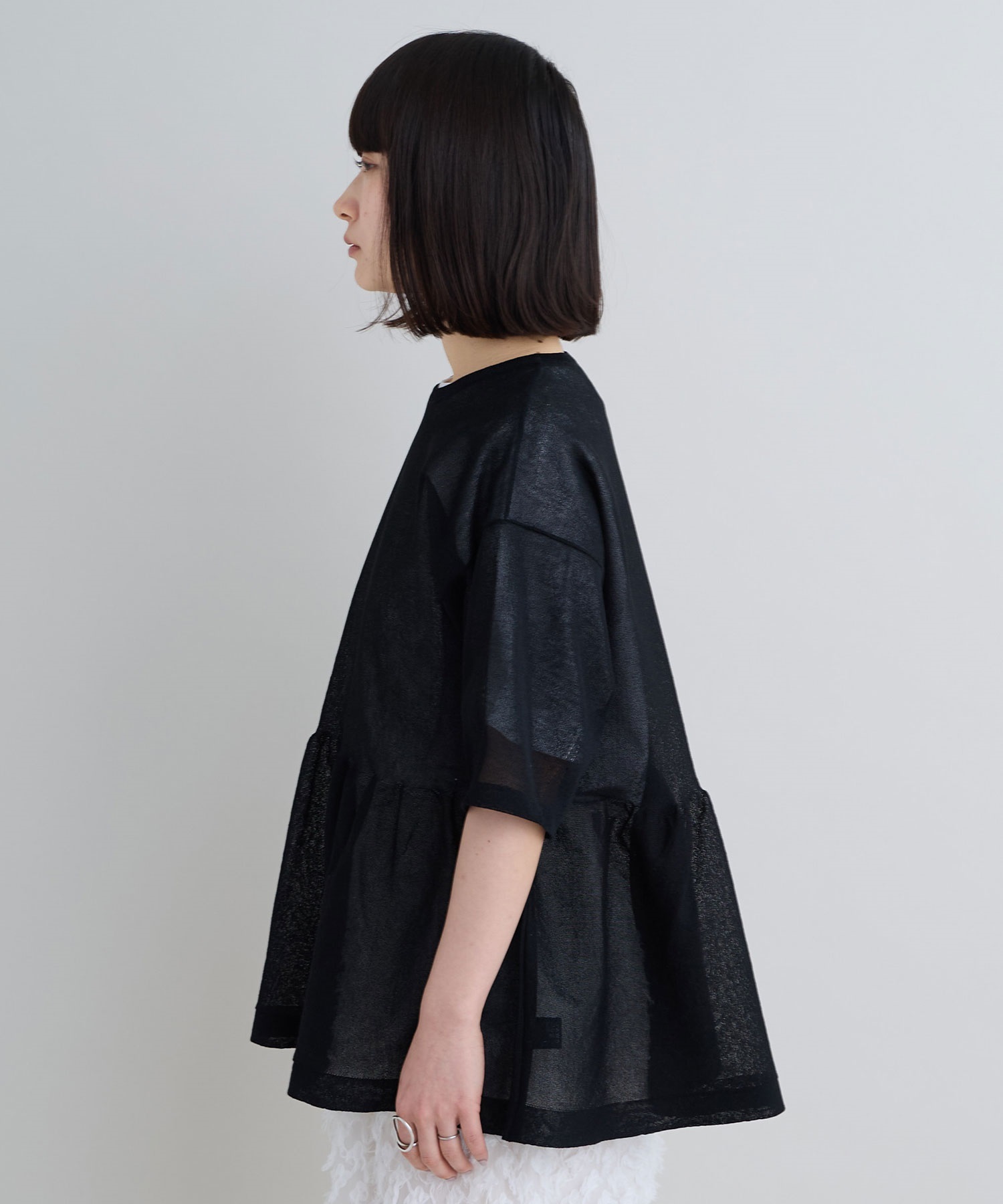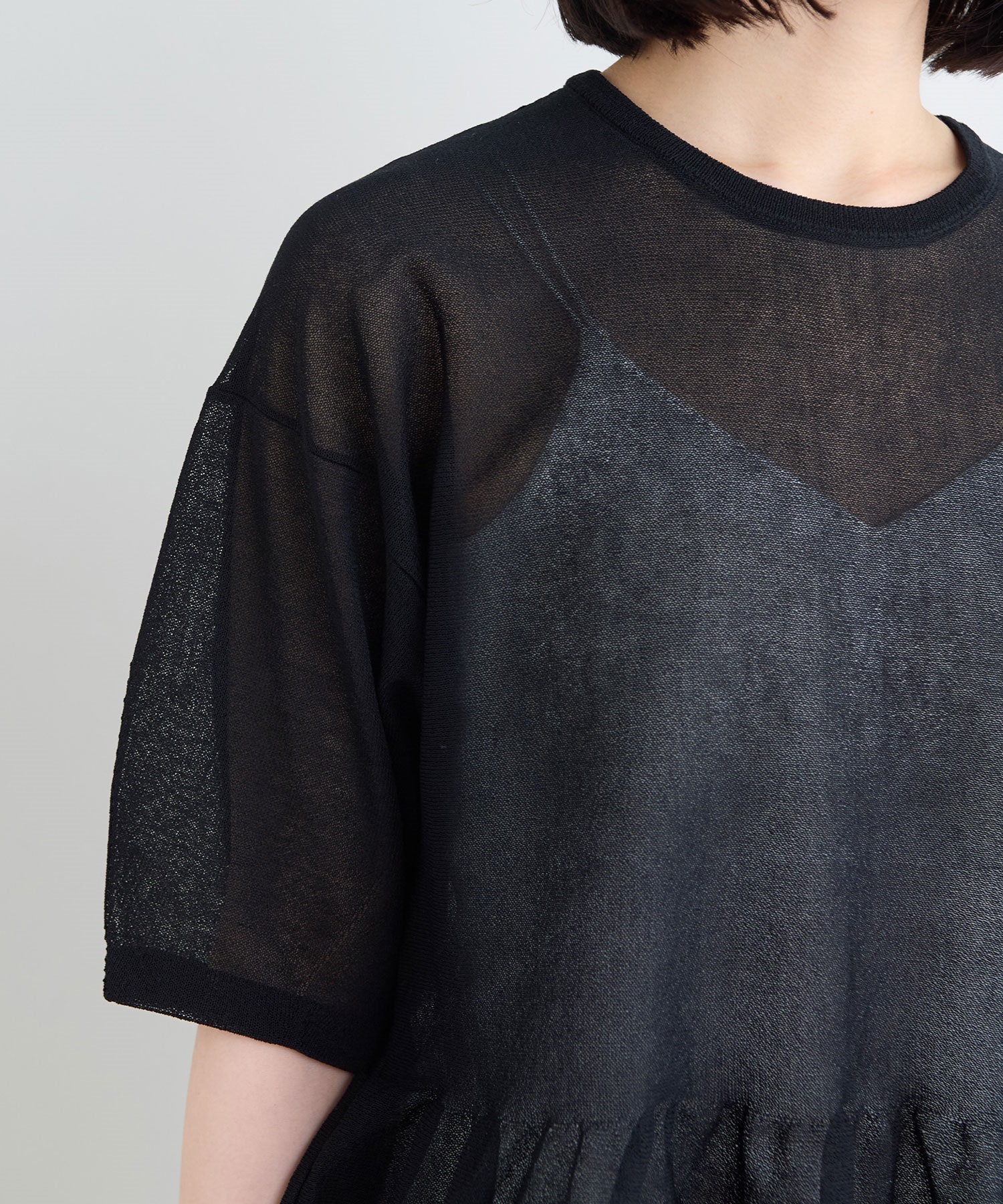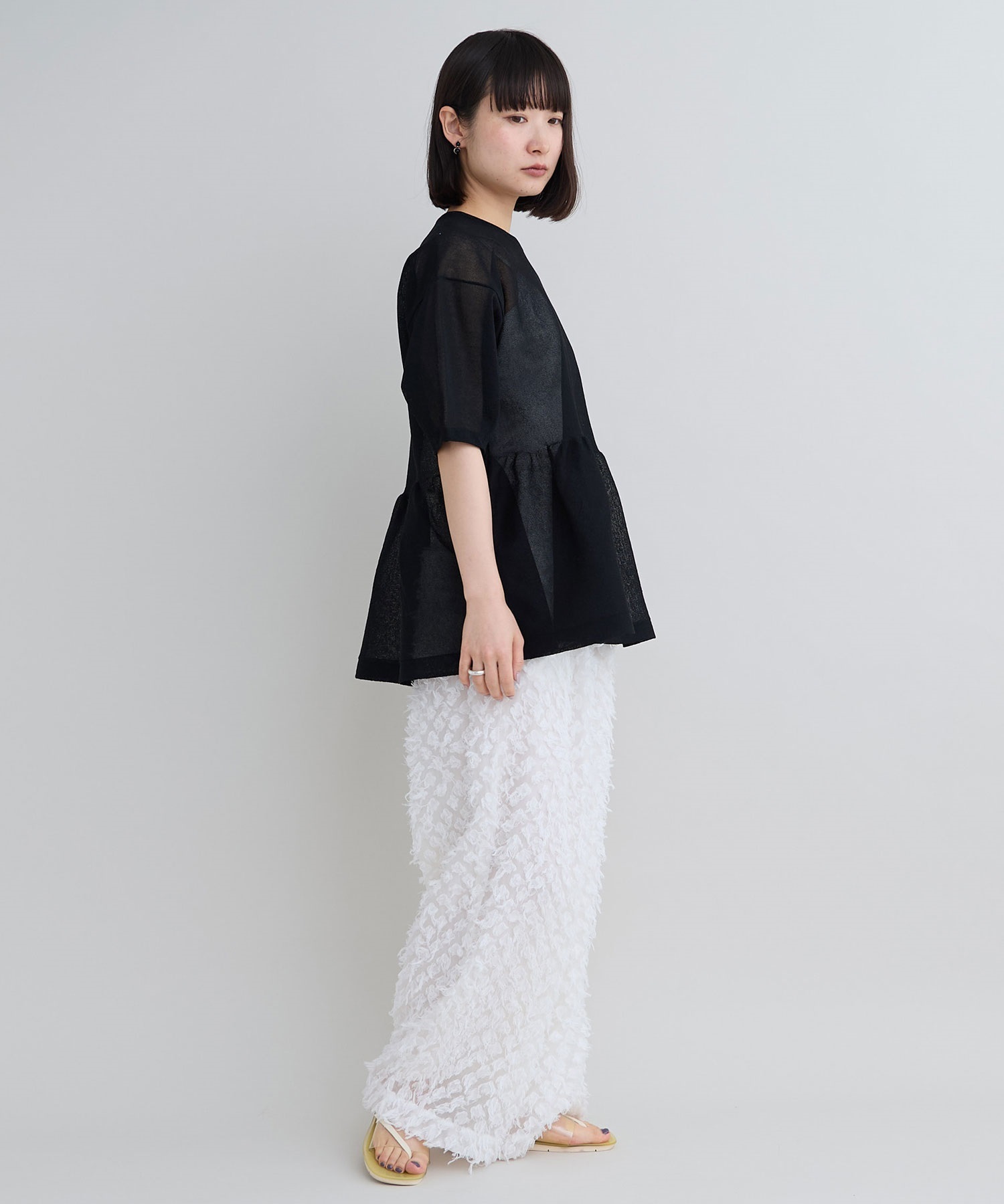 透け感があるのでロゴTなどをレイヤードしたコーディネートもおすすめです。