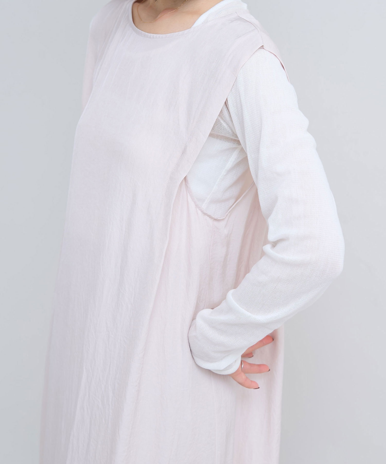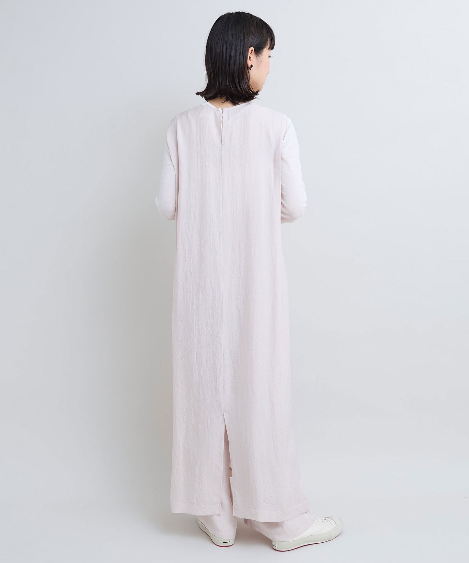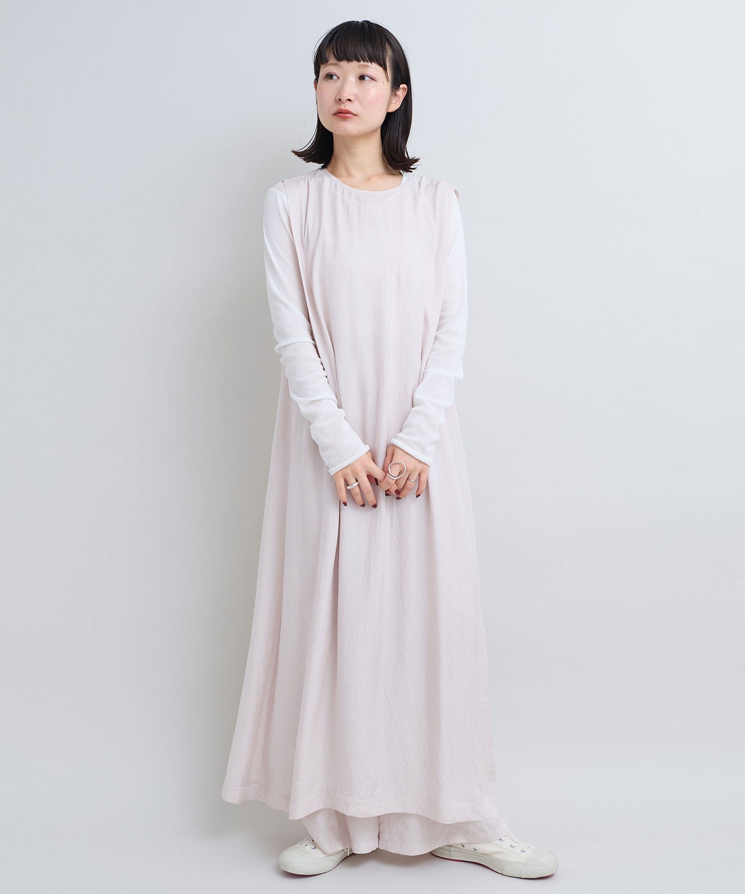 素材の落ち感とマットな質感を生かした、シンプルで着回しやすいノースリワンピース。