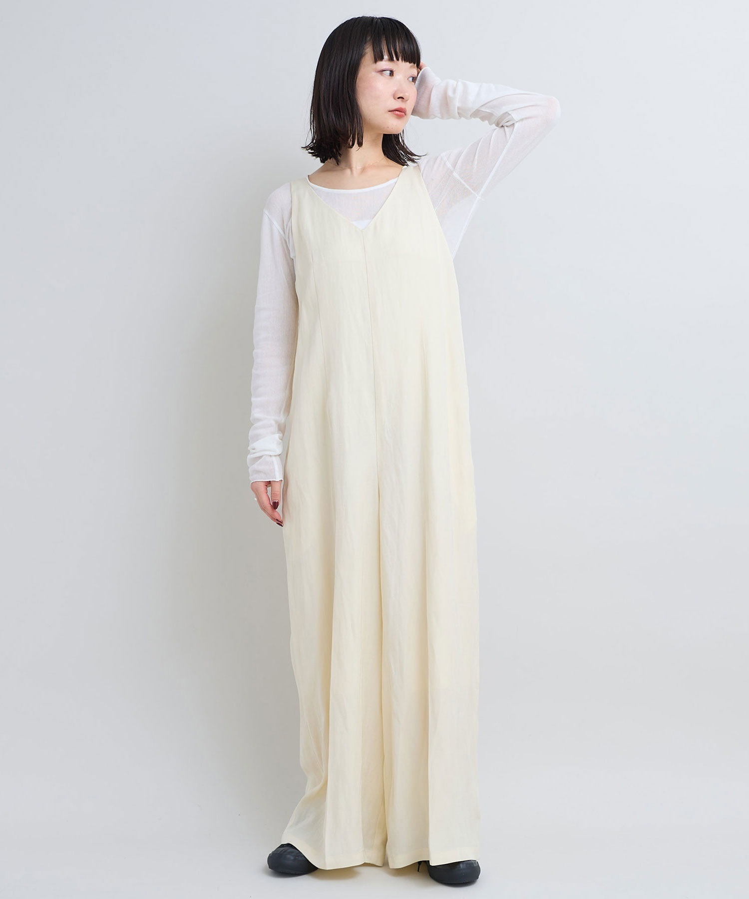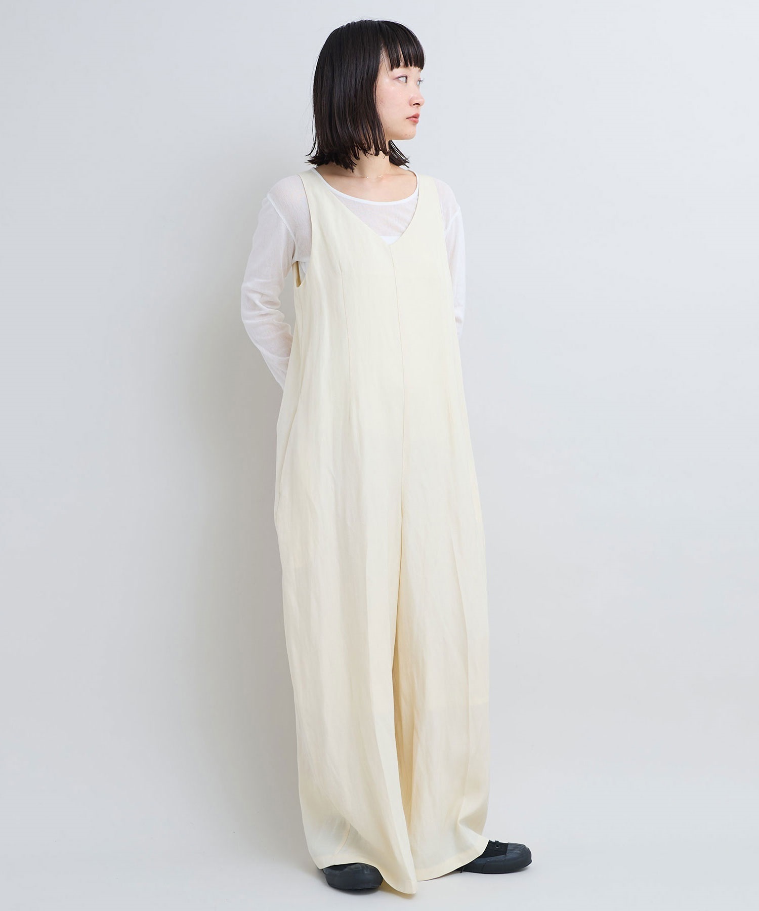 【予約販売】フィラメントヴィスコースリネンツイル Vネックサロペット