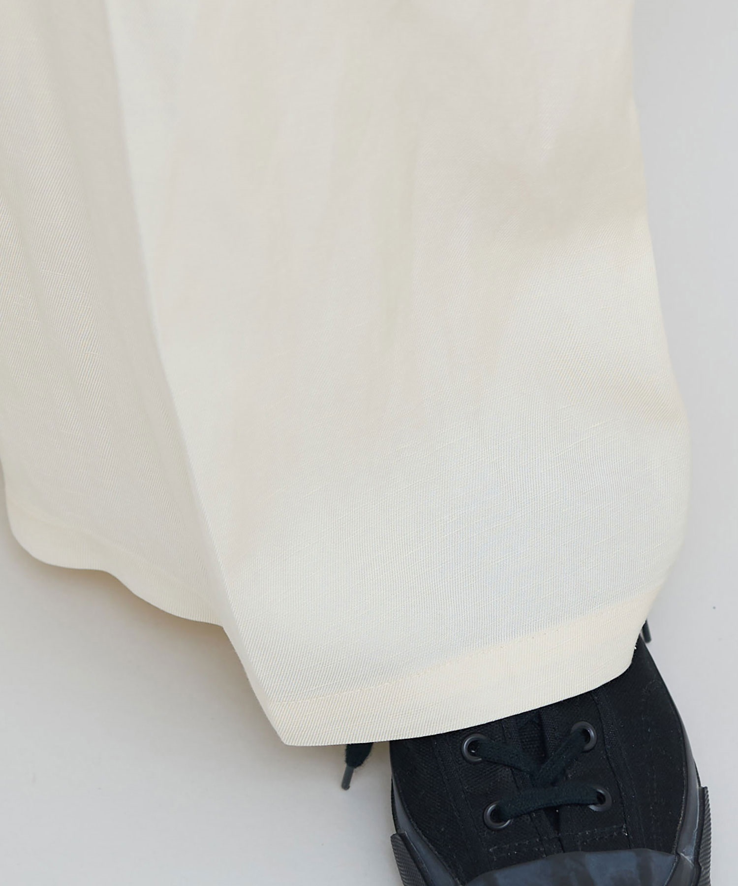 ・亜麻の特性上シワになり易く又、糸ムラ(ネップ、スラブ)は、麻の素朴さを生かしたものです。又、汗や雨等でぬれた時や強くこすられた場合摩擦により色落ちし、他の衣料に移染することがあります。お洗濯の際は、ドライクリーニングでお願いします。