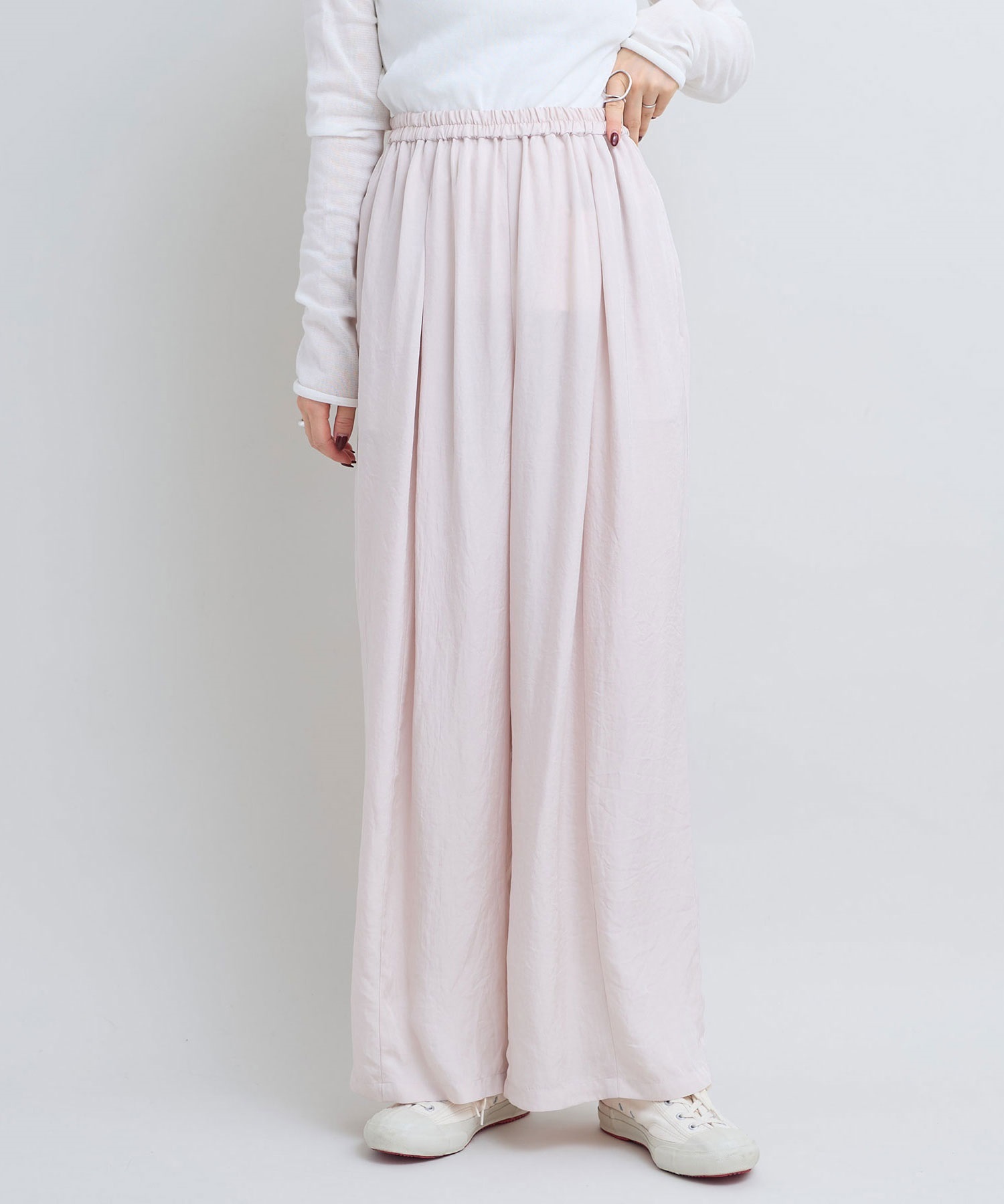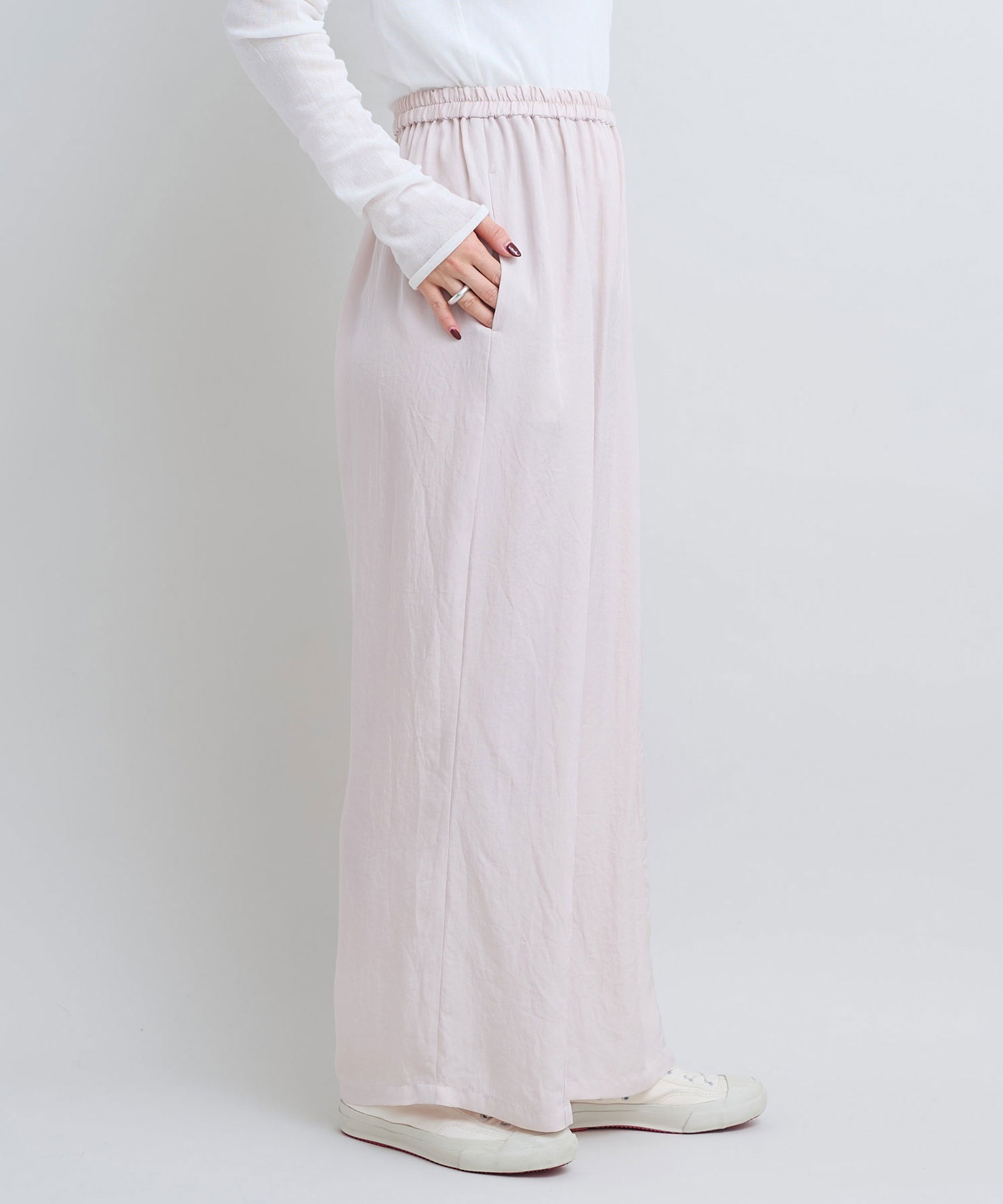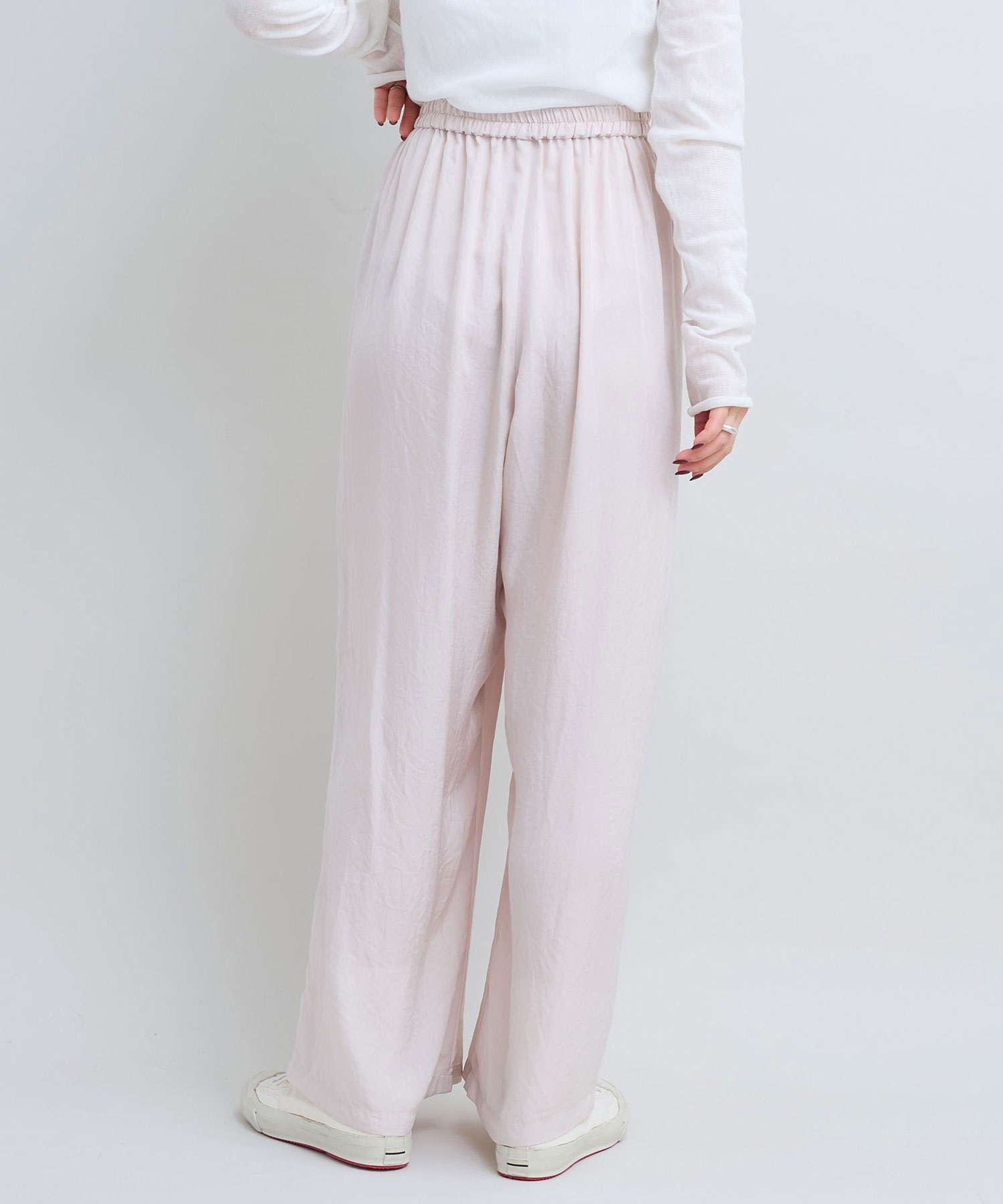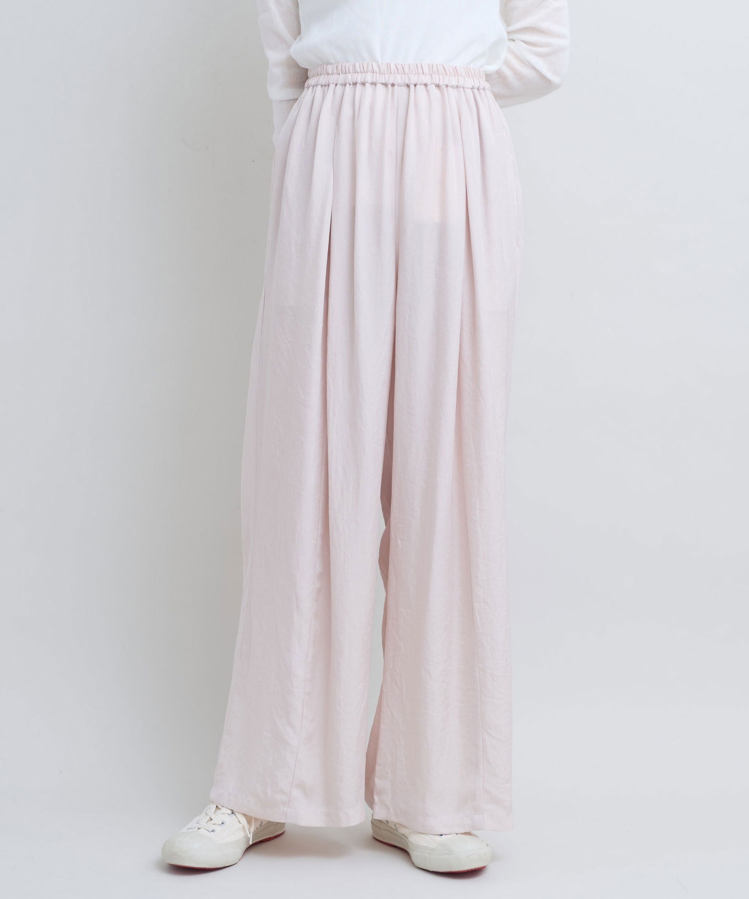 ウエストオールゴムでリラックスして穿けるデザインのイージーパンツ。