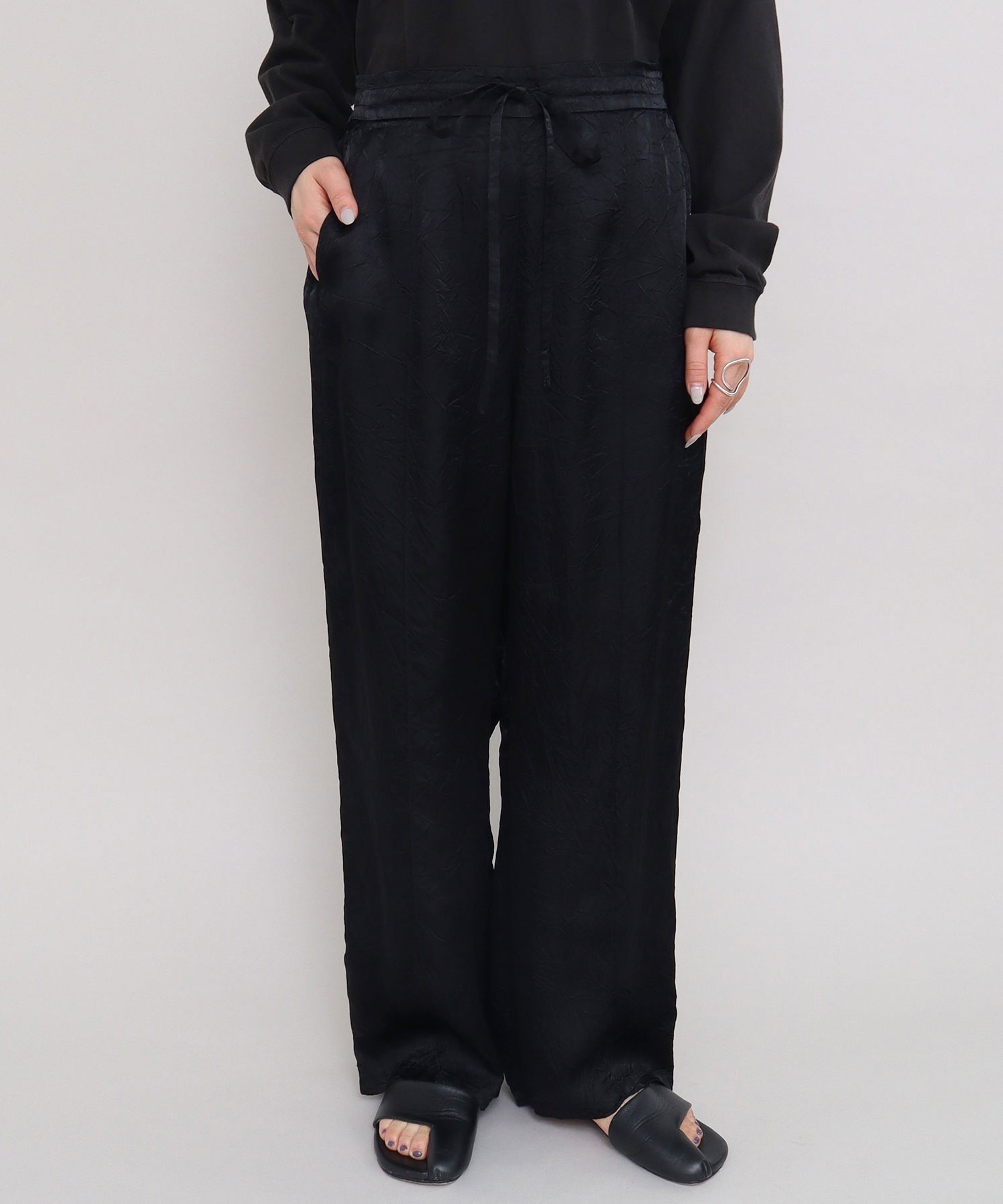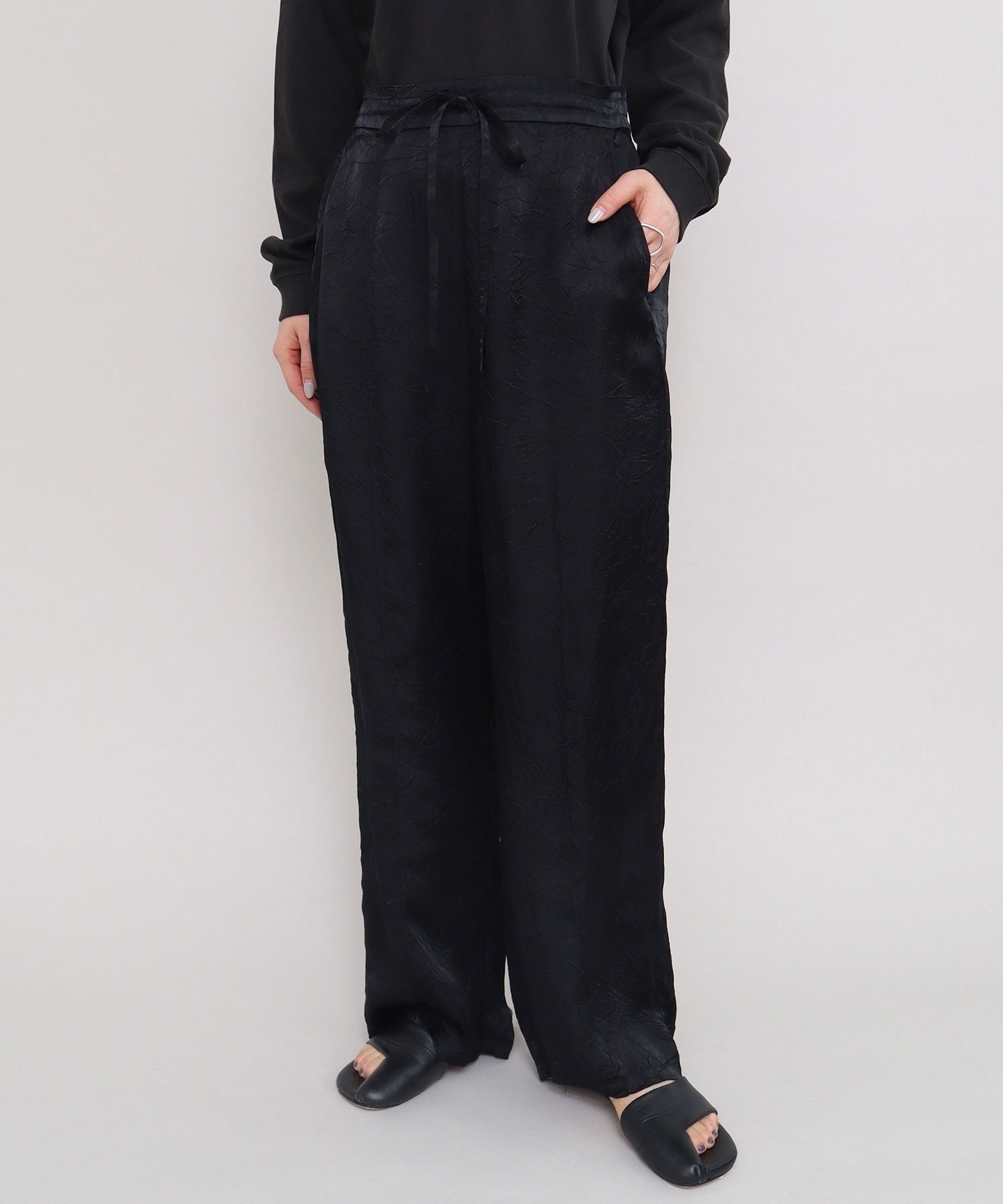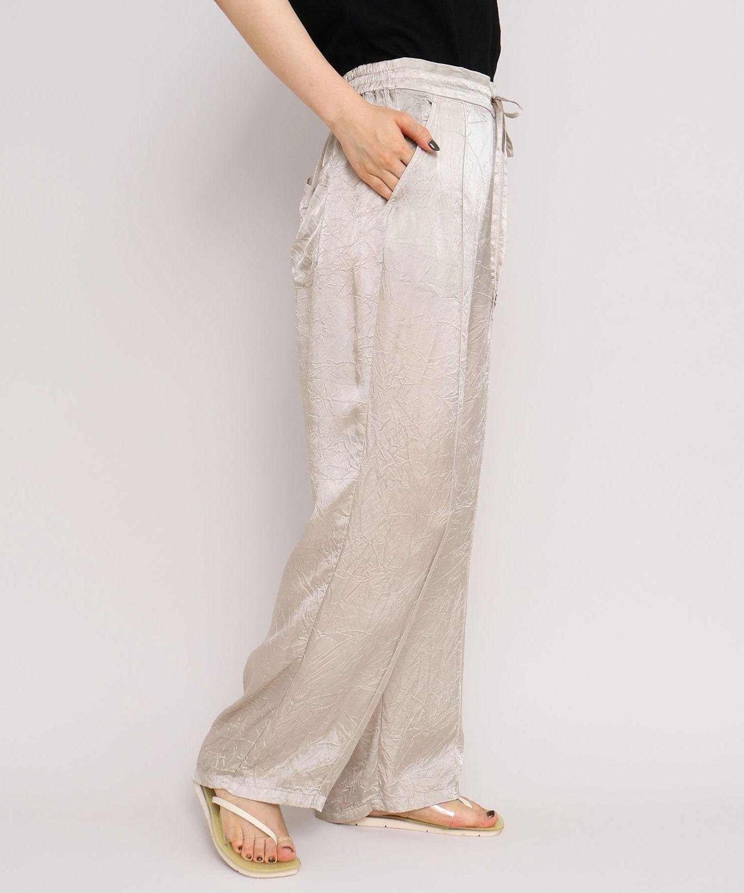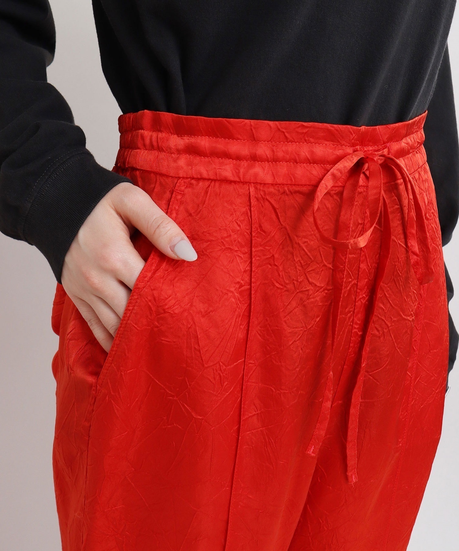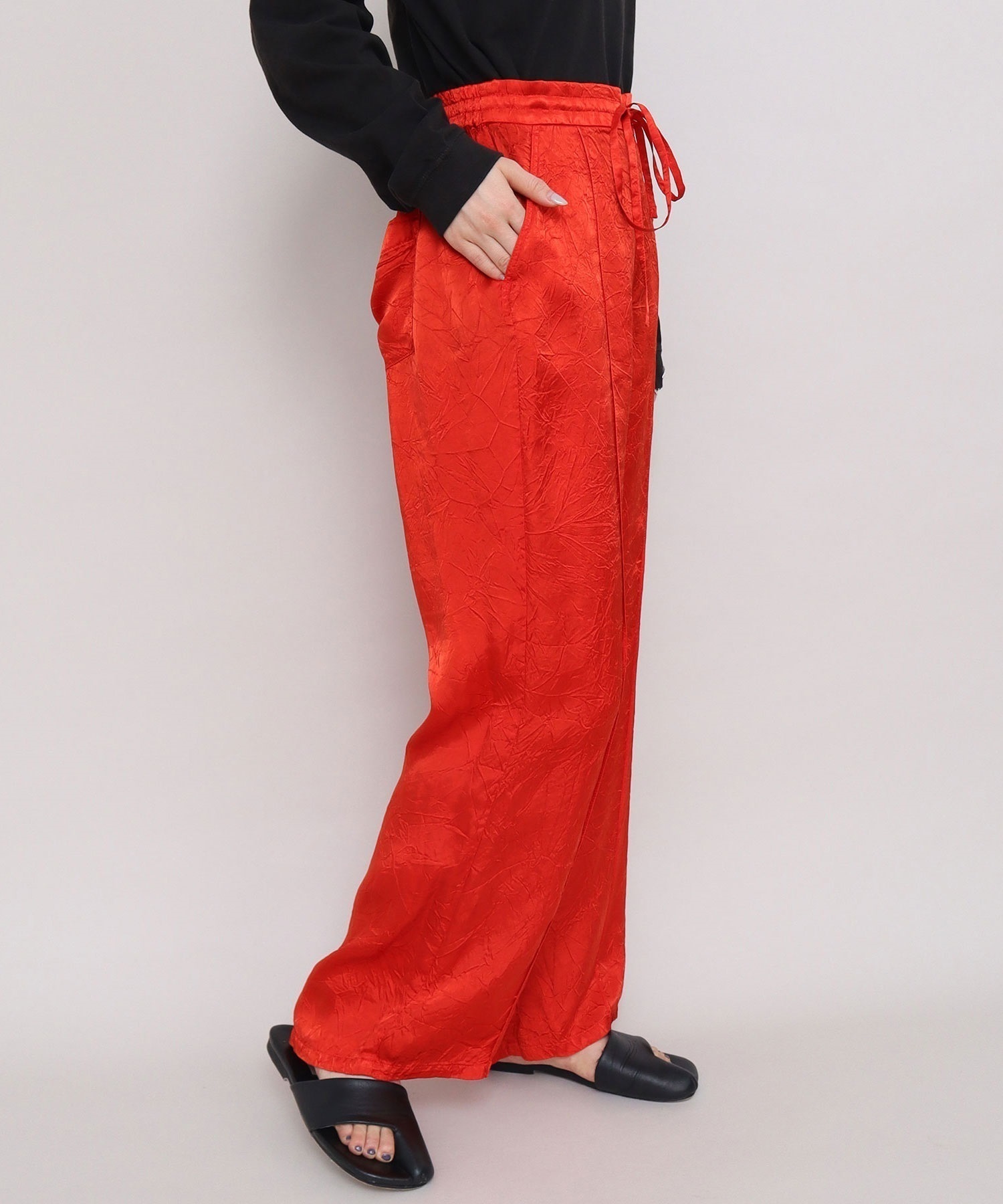 iki定番のキュプラシワサテンパンツが2025 SSからリニューアル。